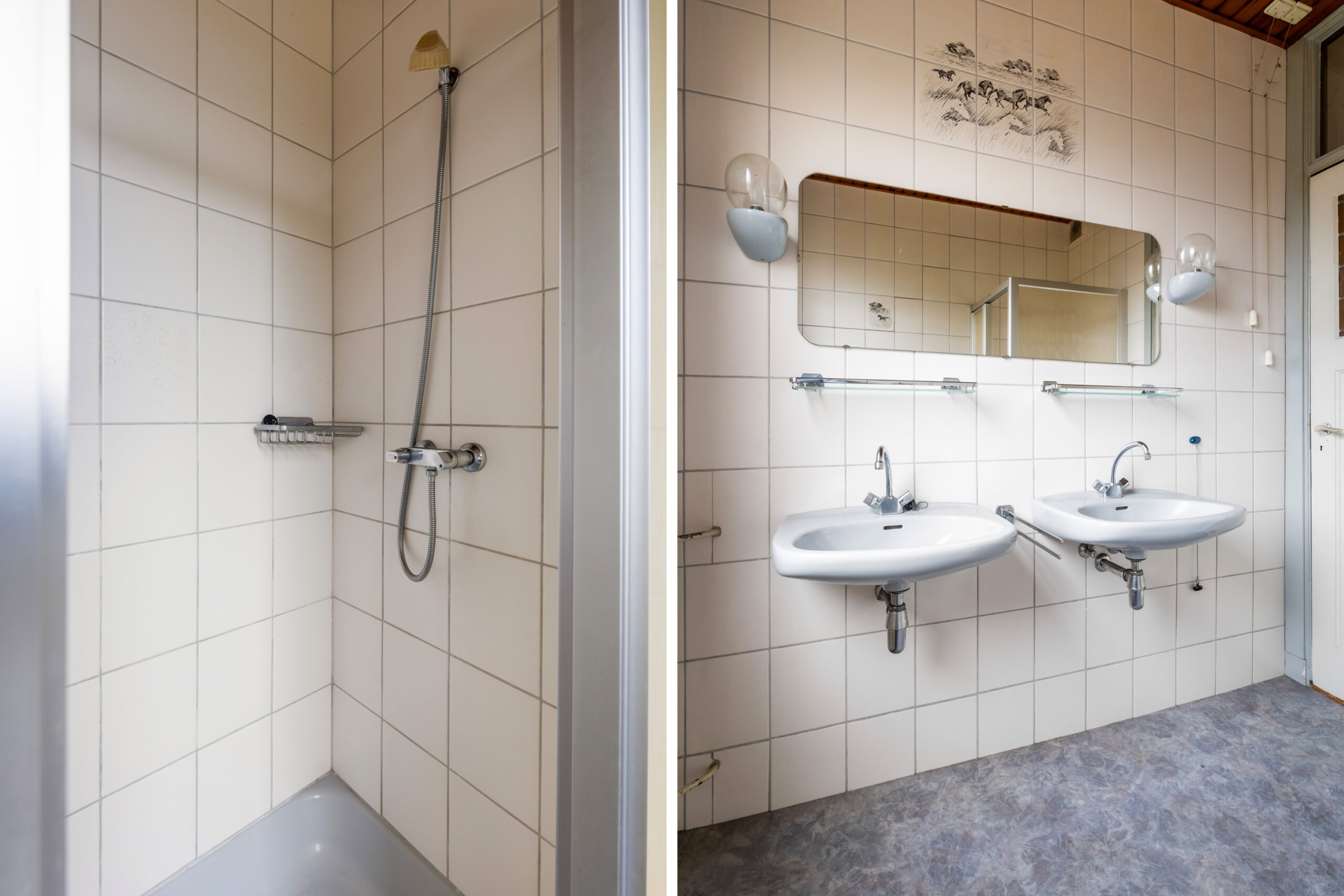 - Badkamervoorzieningen Douche, dubbele wastafel