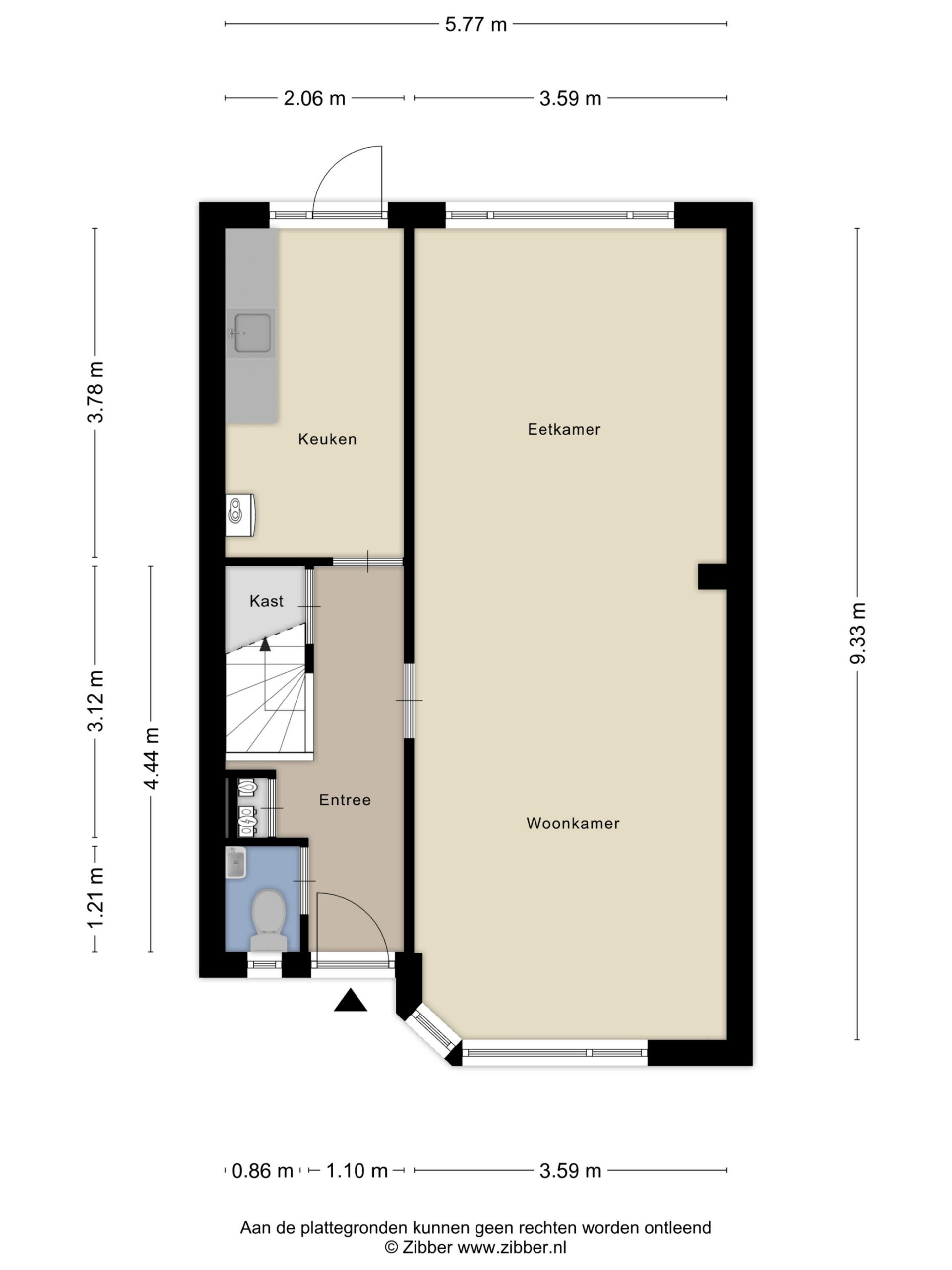- Lichte woon/-eetkamer (ca. 9,33 x 3,59 m);