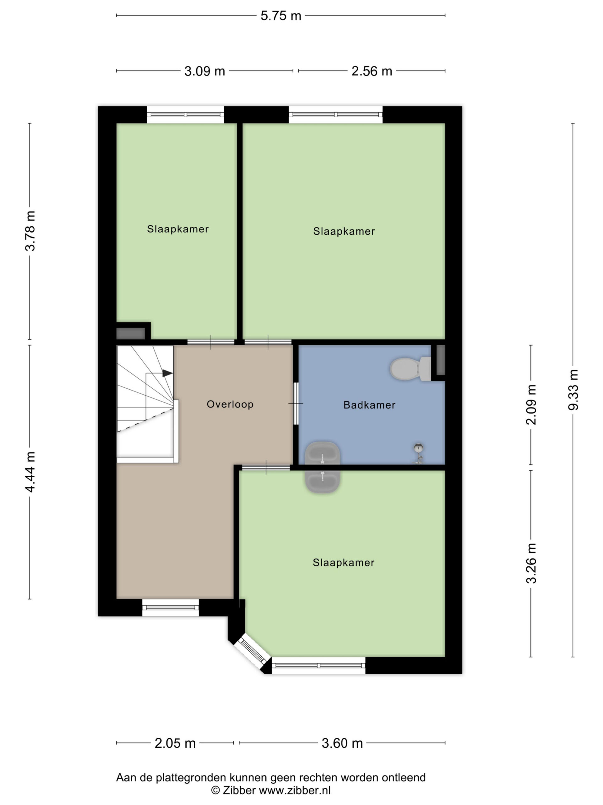 - Slaapkamer achterzijde (3,78 x 2,05 m);