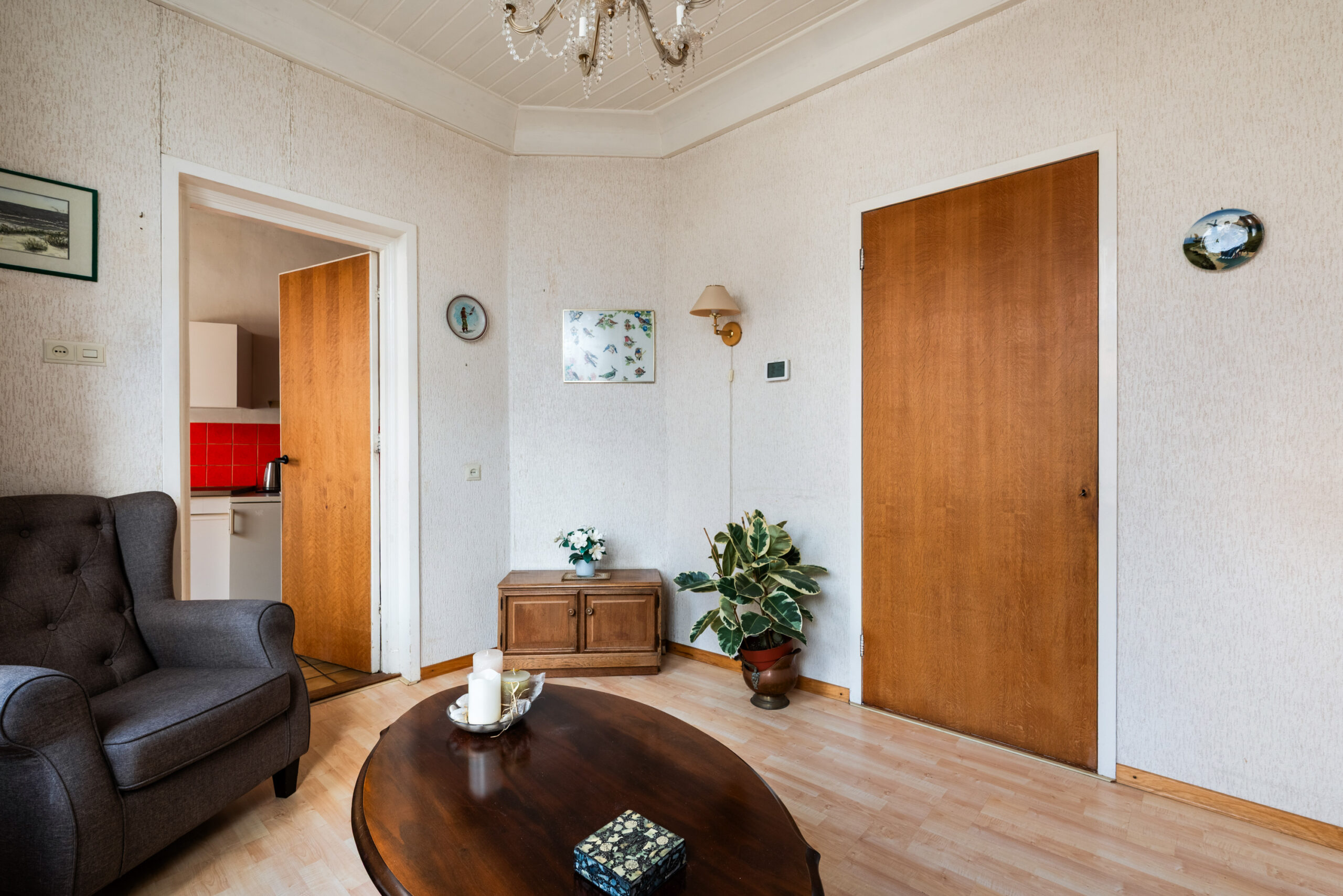 - Zitkamer met grote raampartij en toegang tot de keuken.