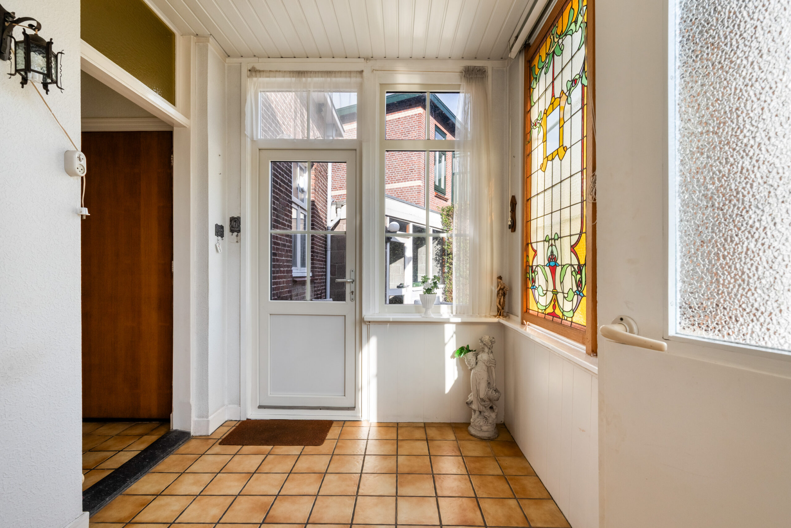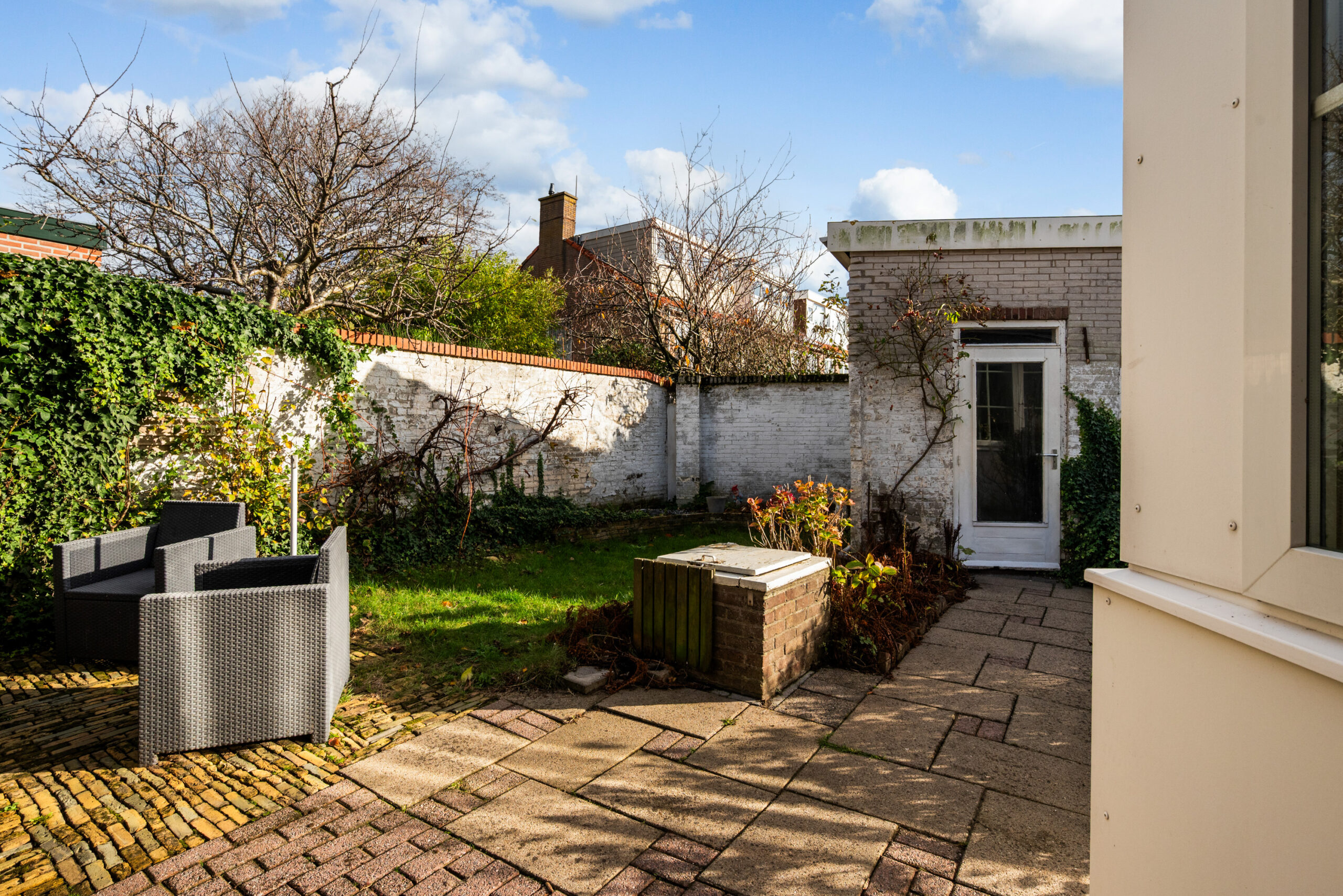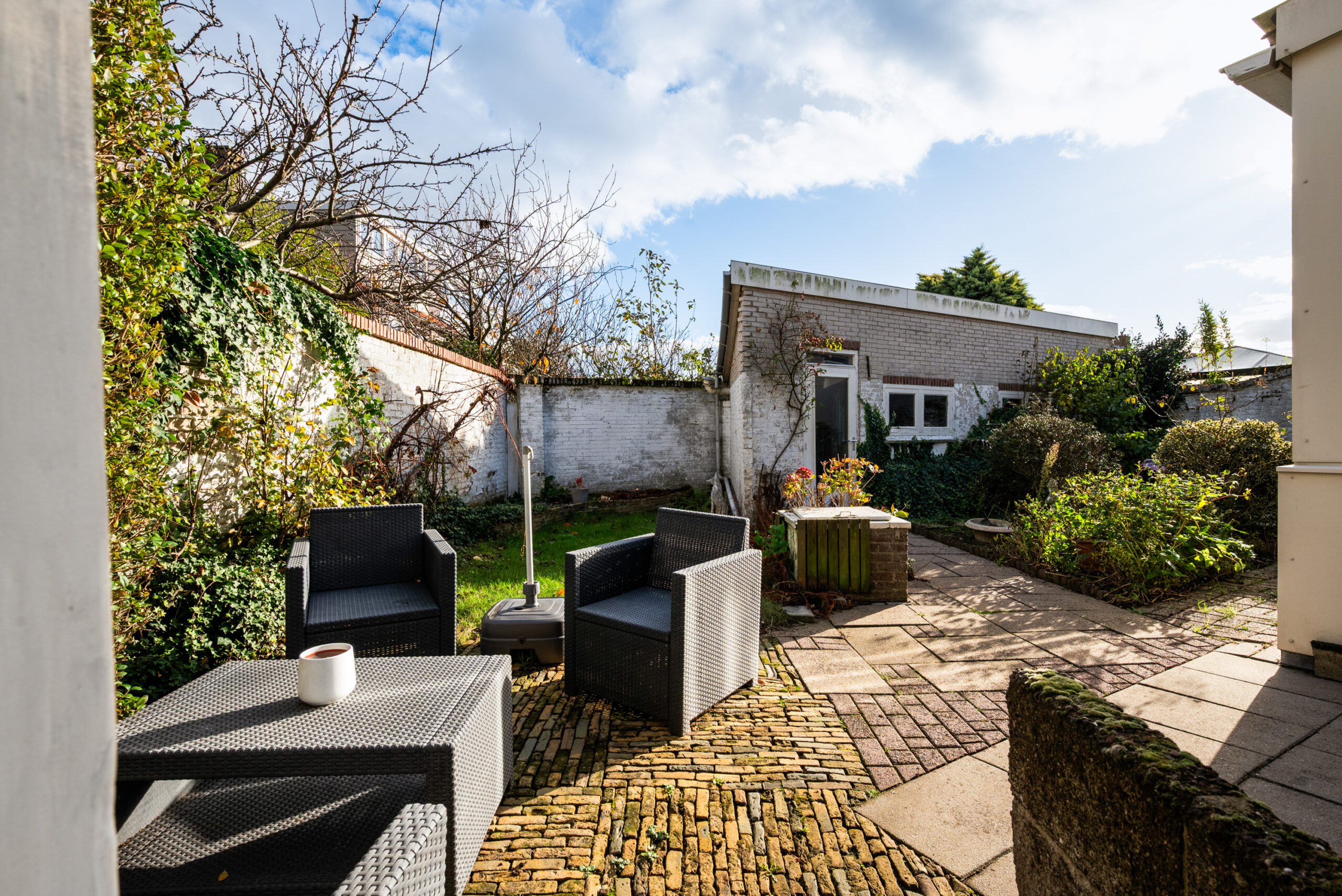 - De hal aan de achterzijde geeft toegang tot de fijne achtertuin, gelegen op het oosten voorzien van een vrijstaande stenen berging en toegang tot de garage.