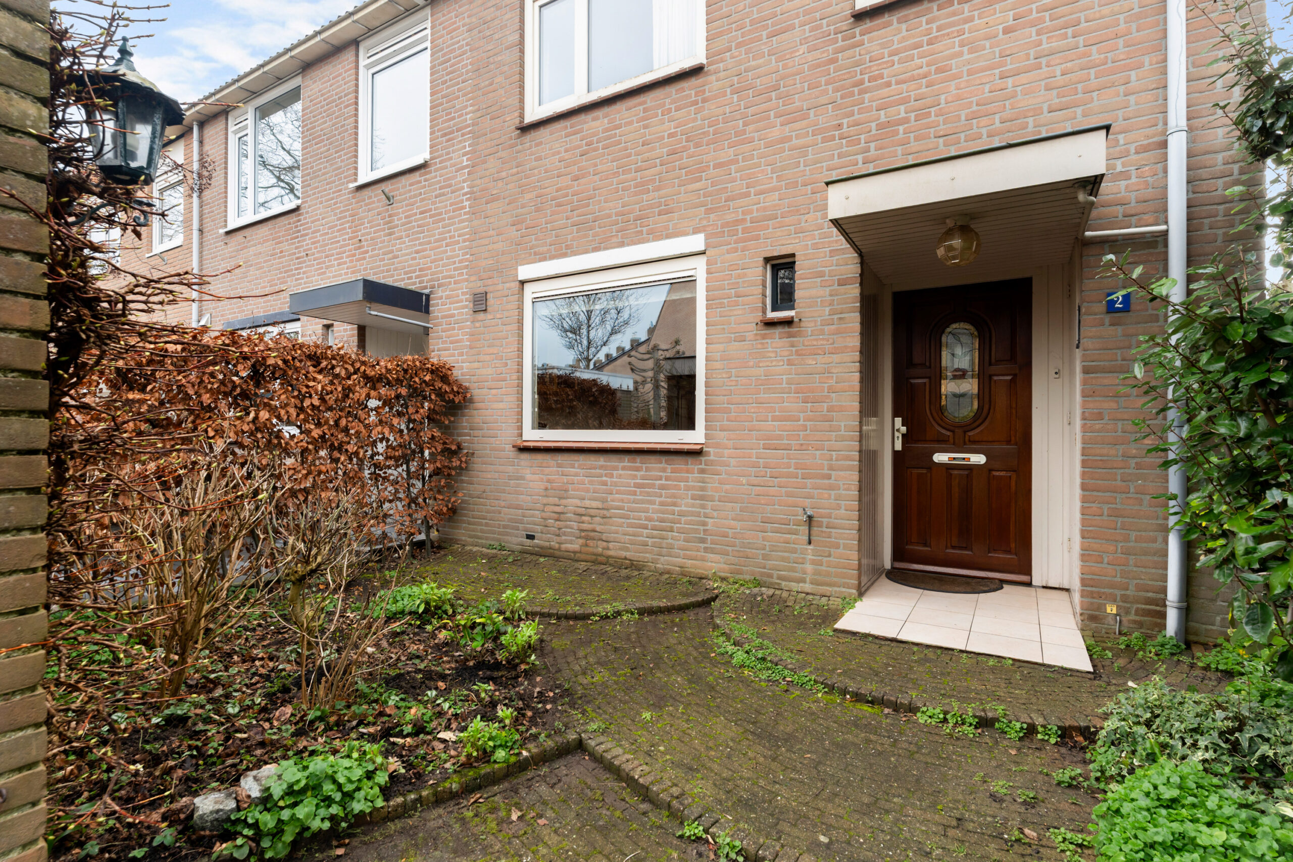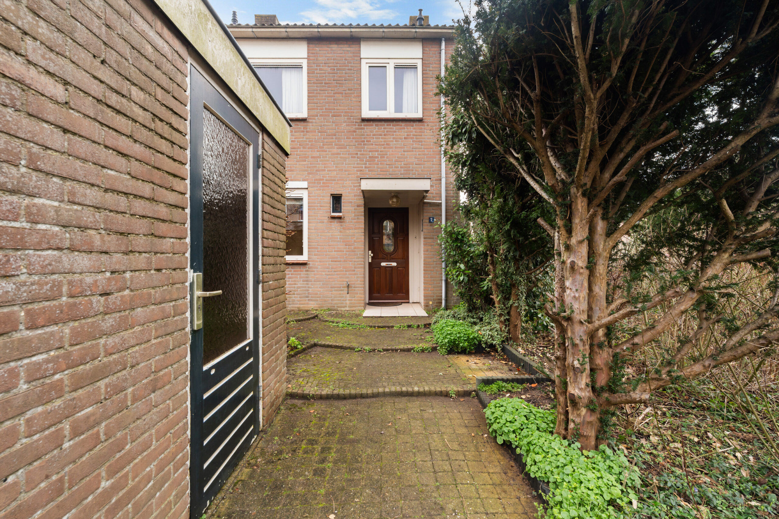 - Via de ruime voortuin met vrijstaande stenen berging, bereikt u de entree van deze woning.