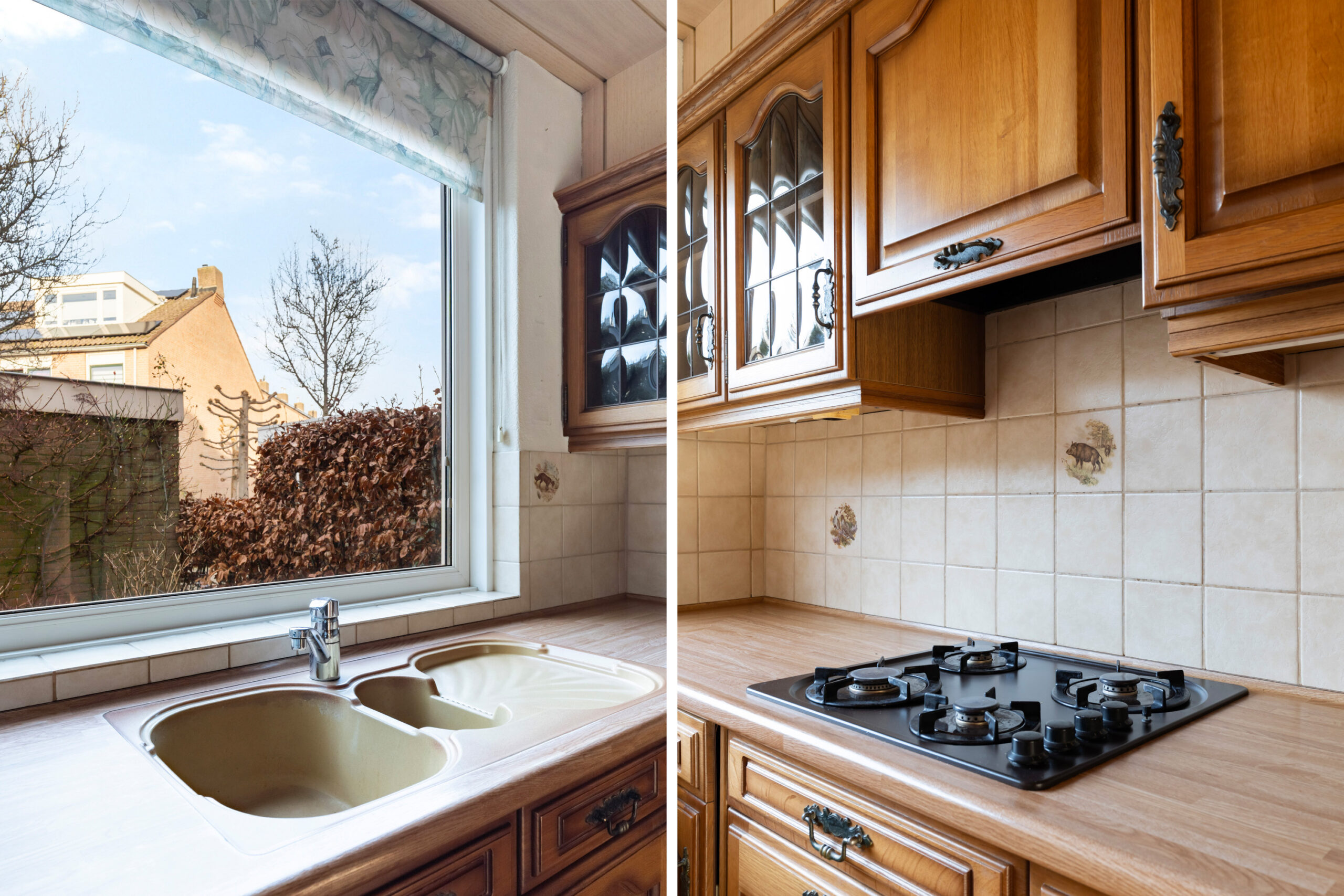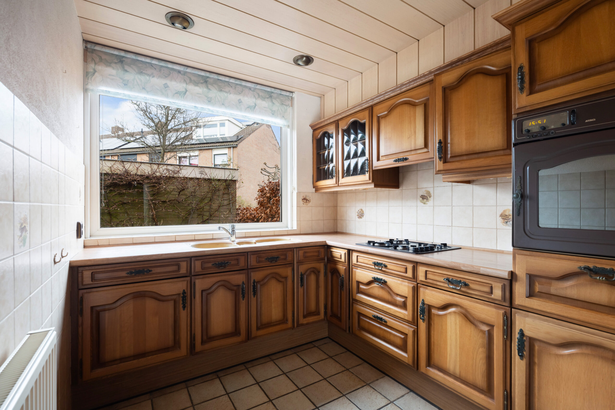 - Via de deur bereikt u de L-vormige keuken met diverse inbouwapparatuur en close-in boiler.