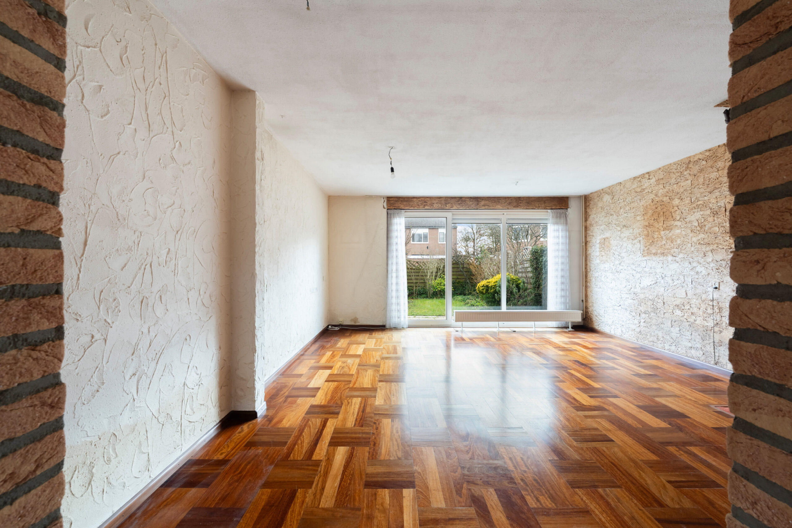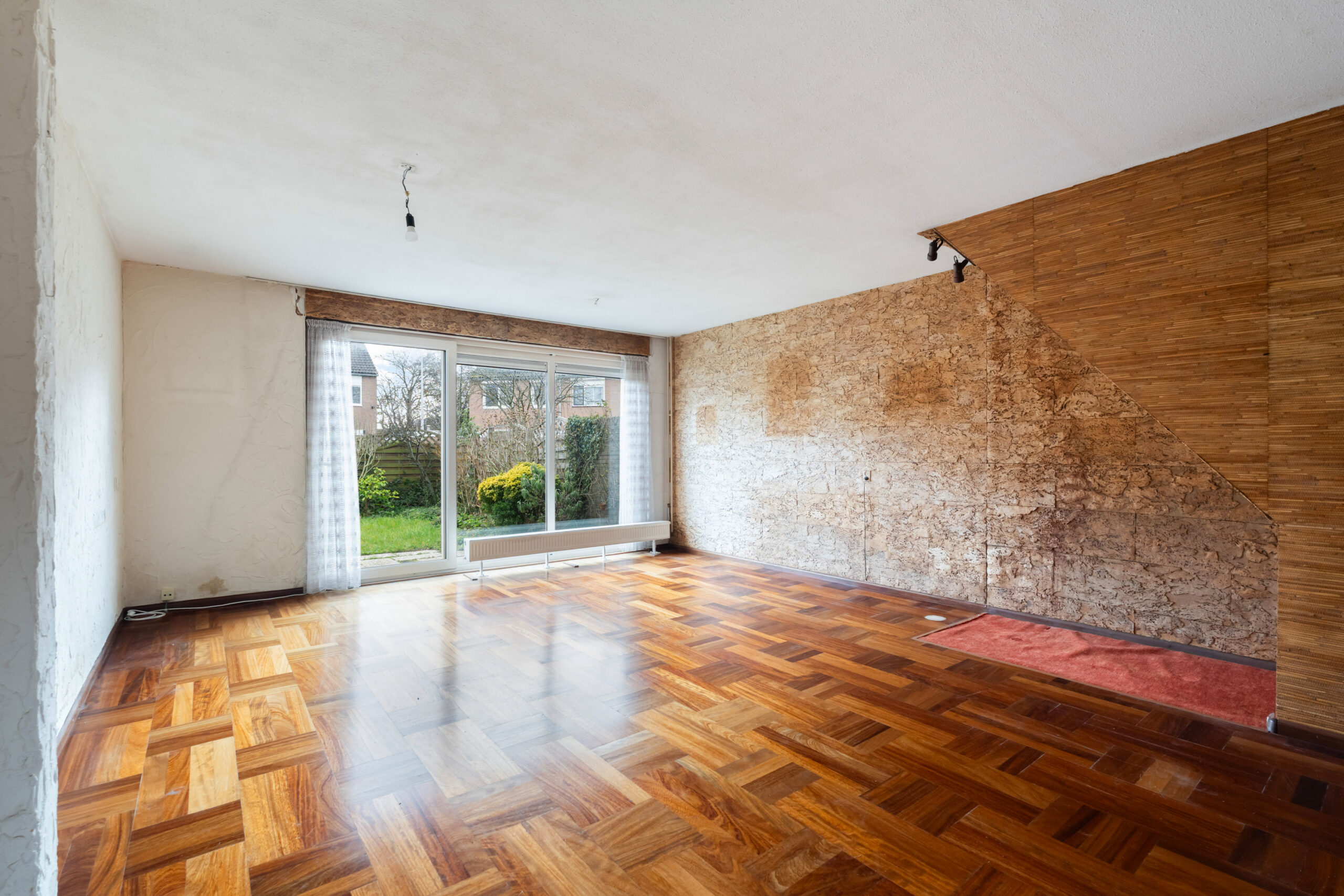 - De woonkamer is ruim en licht, mede door de grote schuifpui aan de tuinzijde. In de woonkamer ligt een mooie parketvloer en de achterzijde is voorzien van een elektrisch bedienbaar zonnescherm.