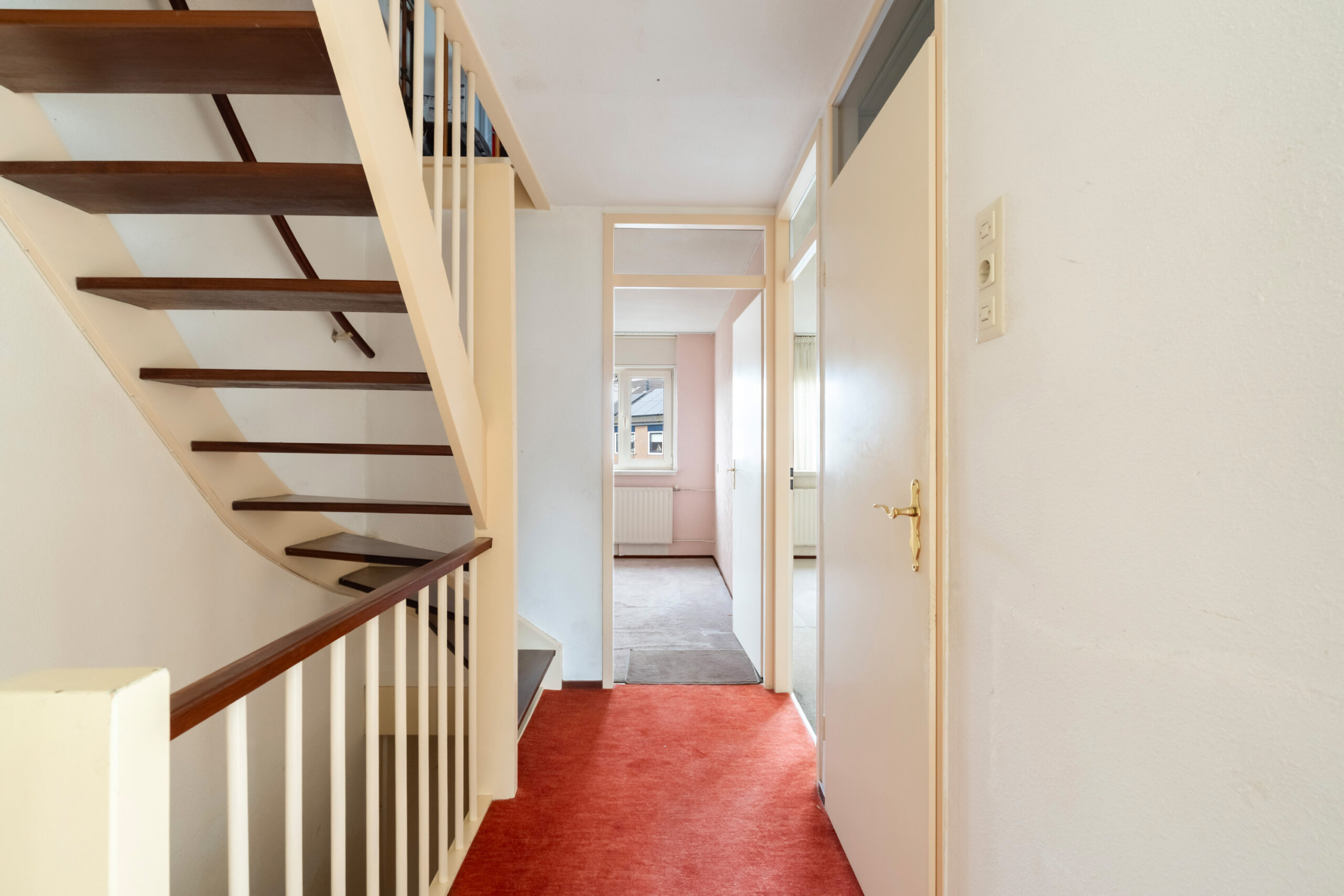 - Hal met toiletruimte en trapopgang naar de eerste verdieping.
