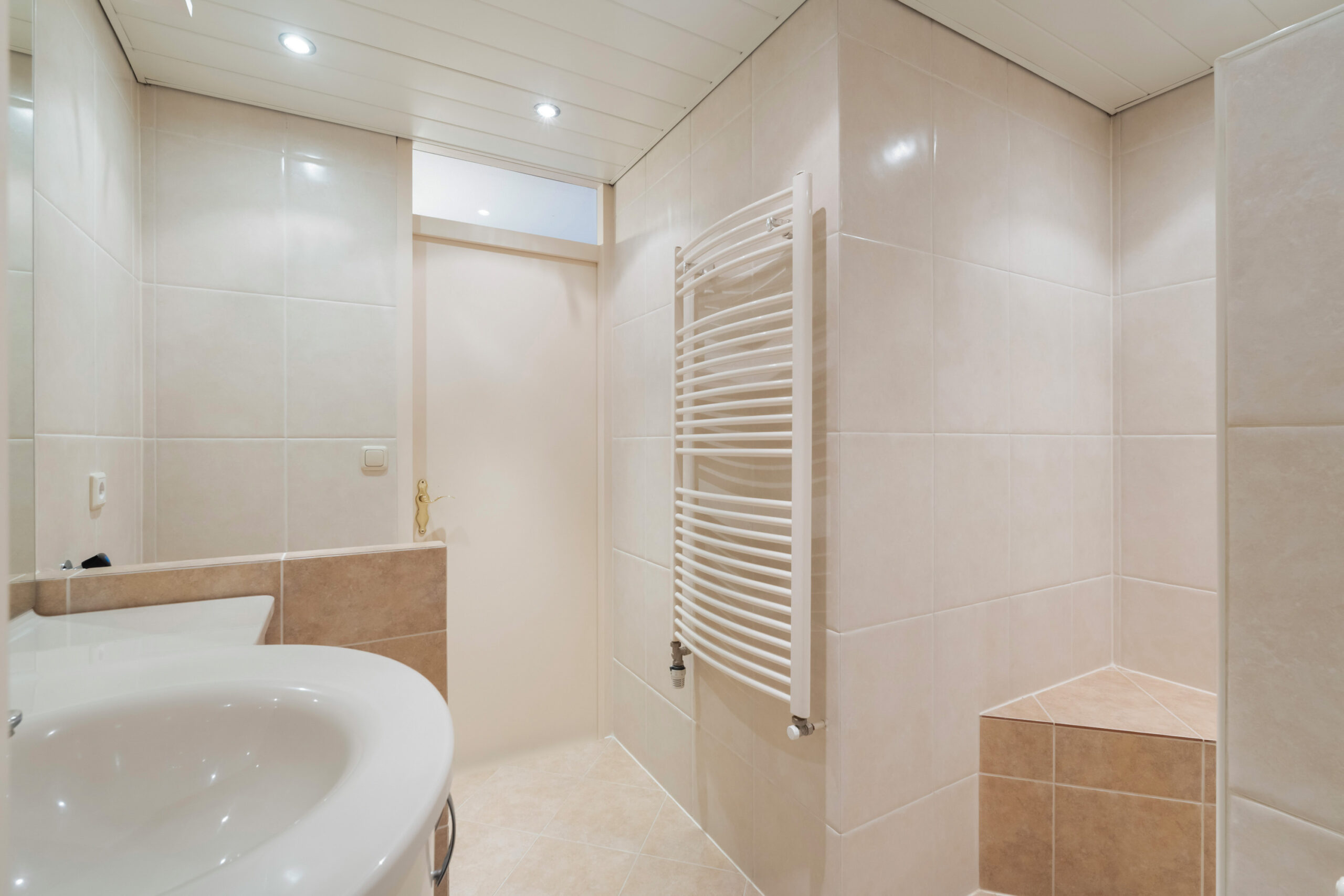 - Badkamervoorzieningen Douche, wastafelmeubel, wasmachineaansluiting