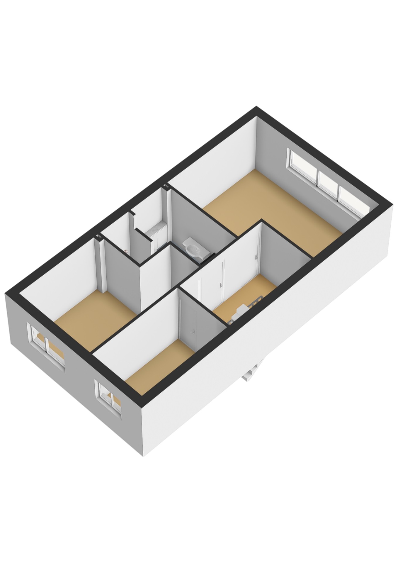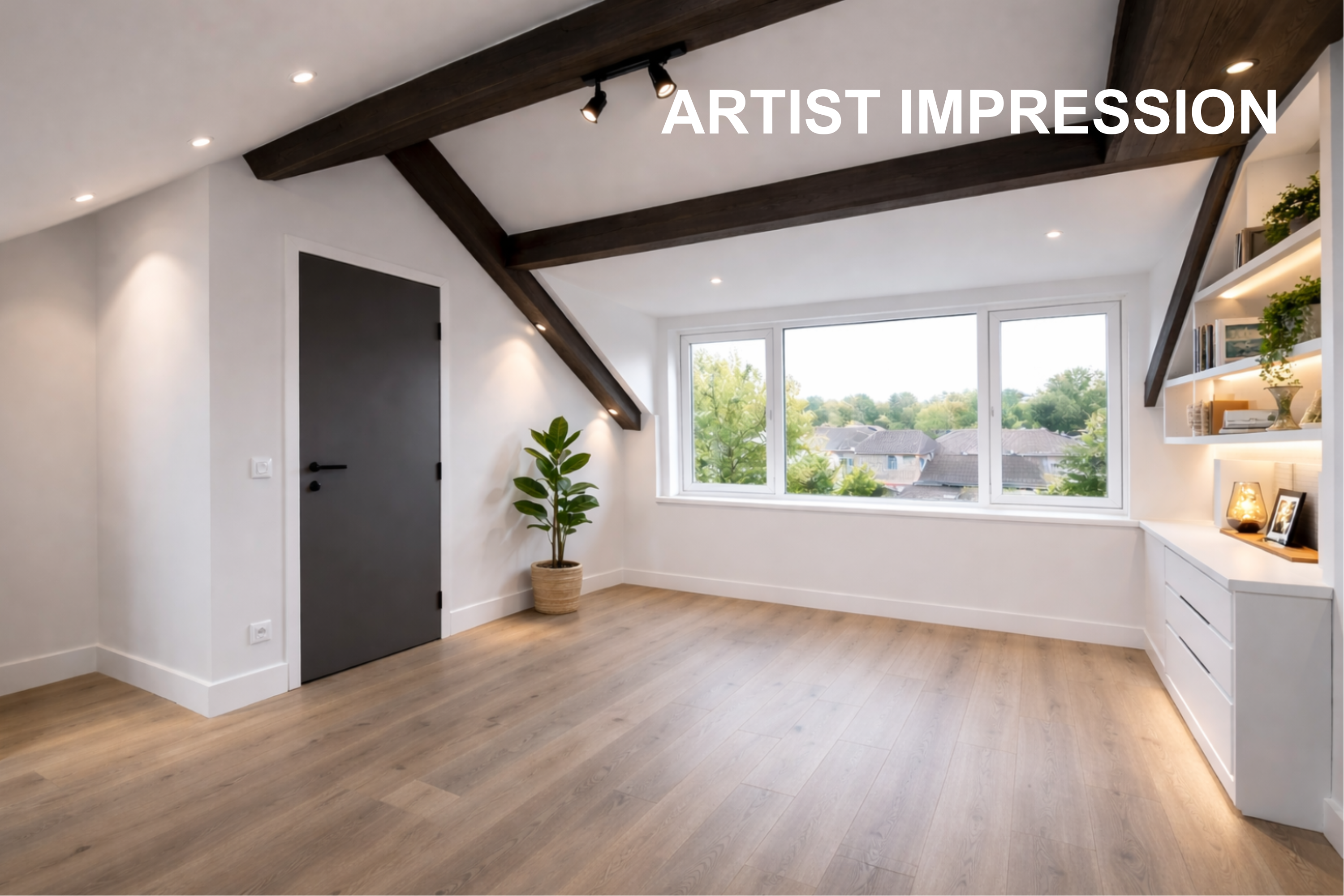 - Ruime slaapkamer (ca. 15 m2) over de hele breedte van de woning, gelegen aan de achterzijde.