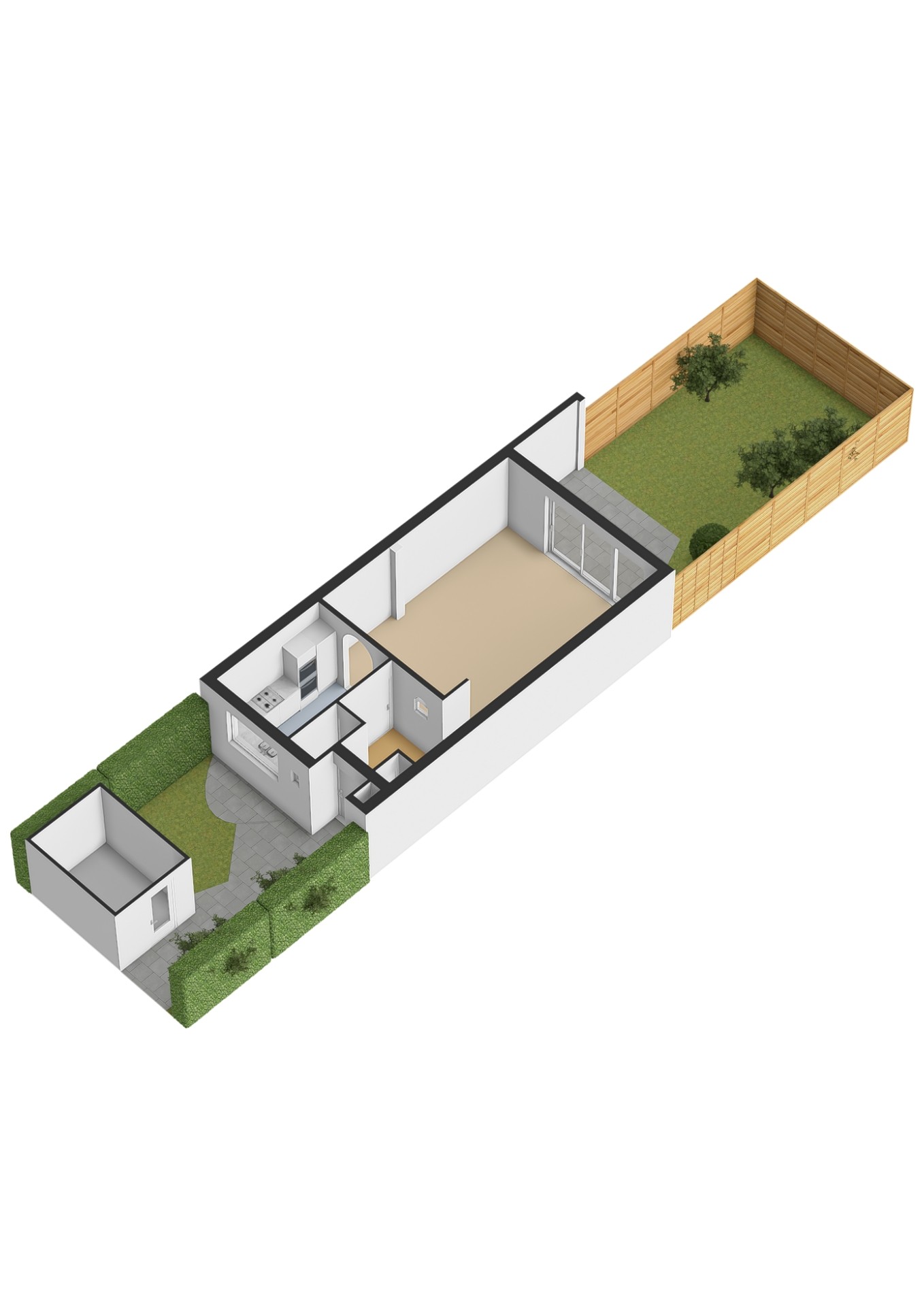 - Oppervlakte hoofdtuin ca. 48 m2