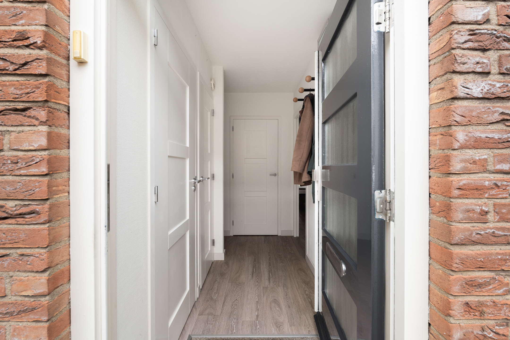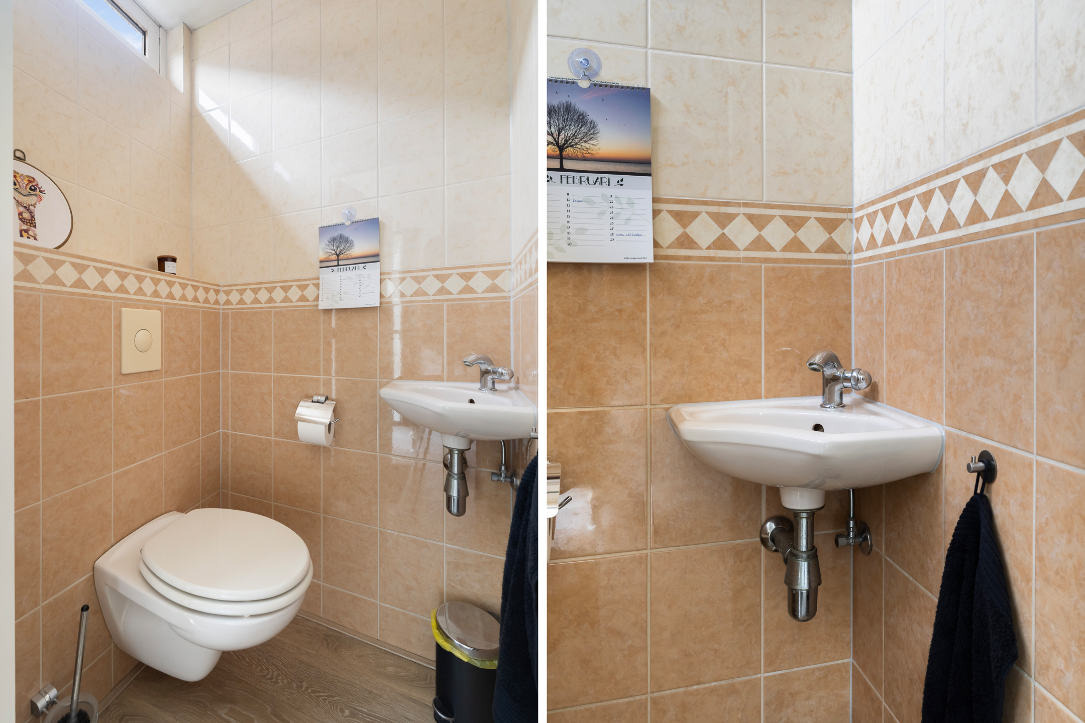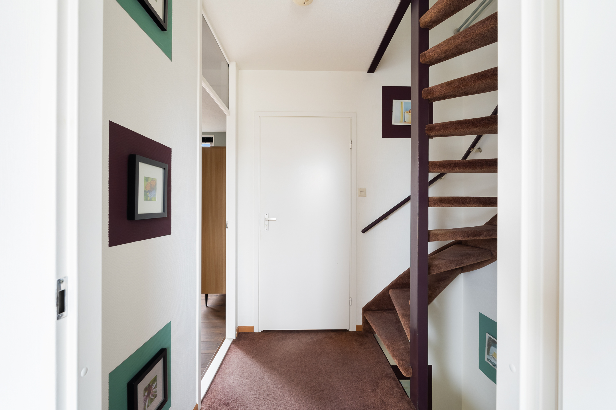 - Hal met meterkast, nette toiletruimte, praktische trapkast en trapopgang naar de eerste etage;