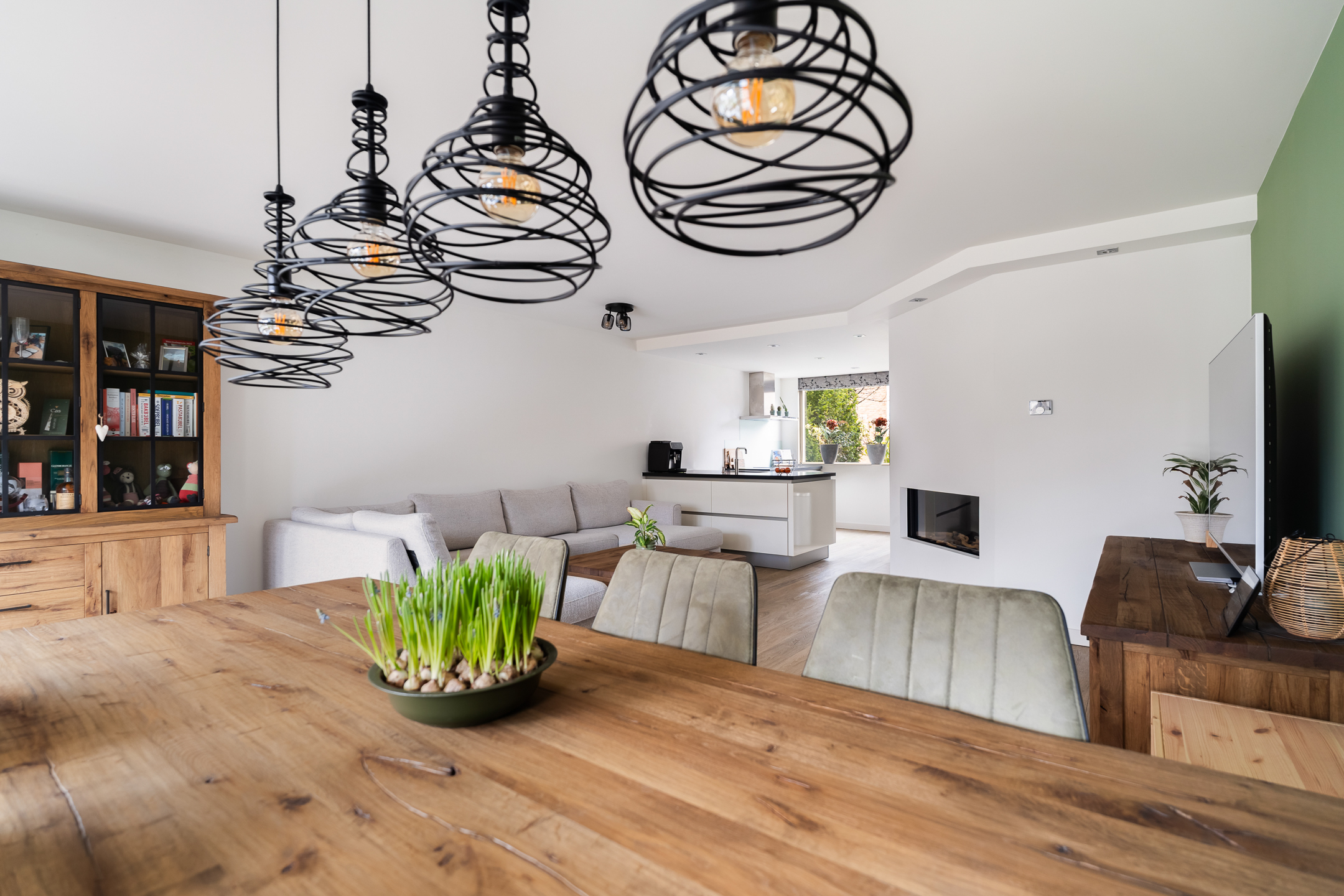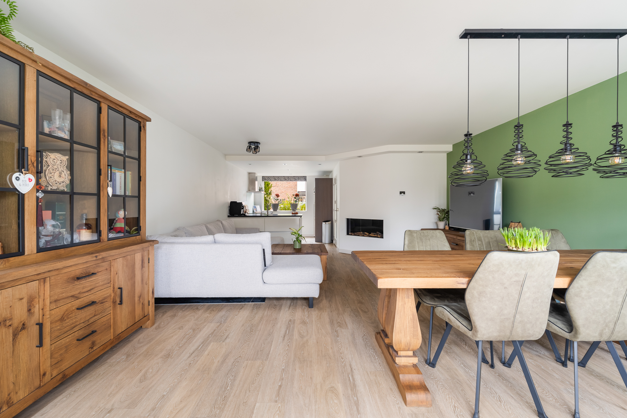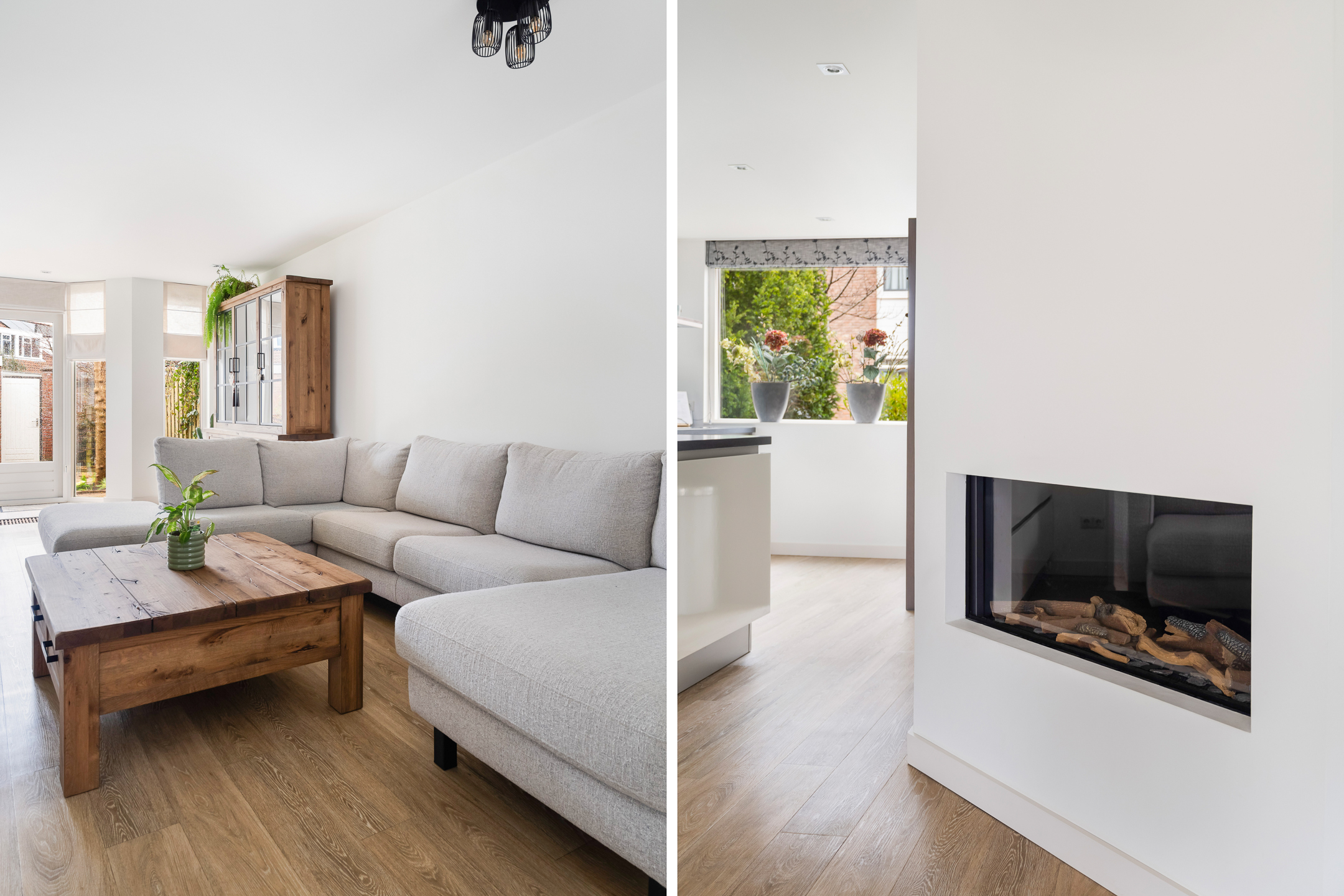 - Royale vergrote en lichte tuingerichte woonkamer voorzien van pvc-vloer met vloerverwarming, gezellige gashaard en openslaande deuren naar de achtertuin.