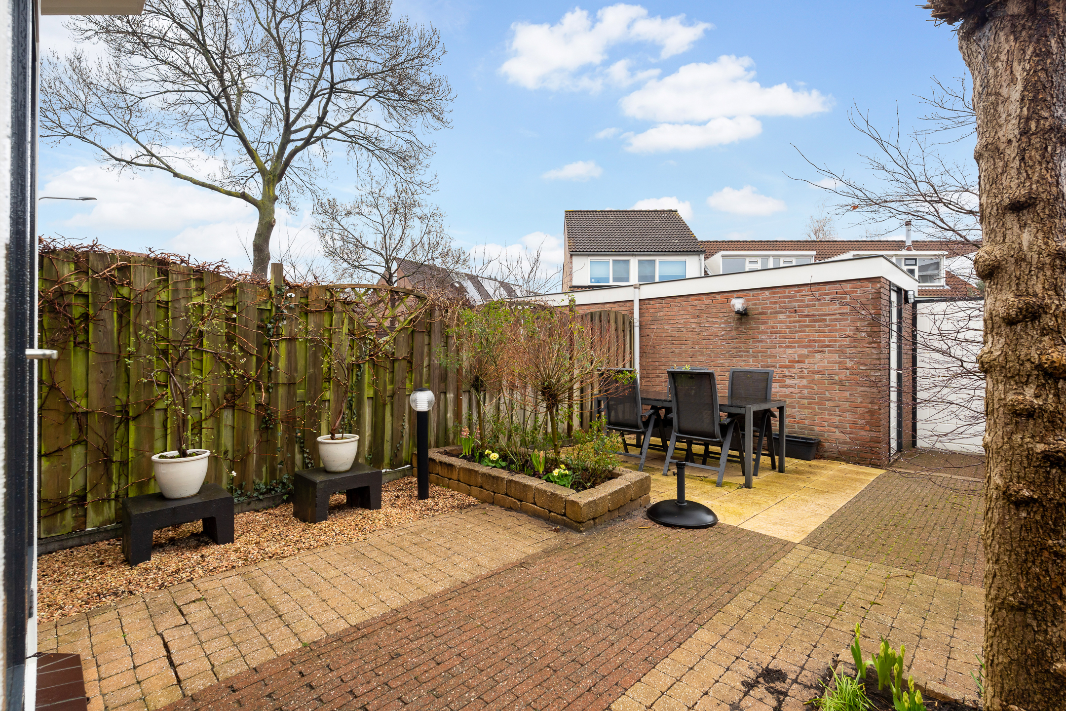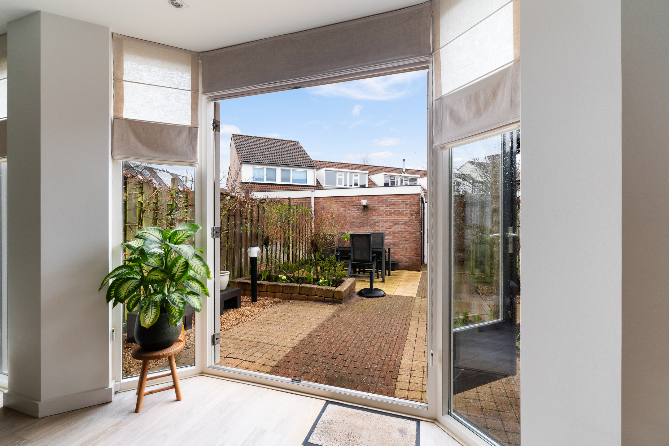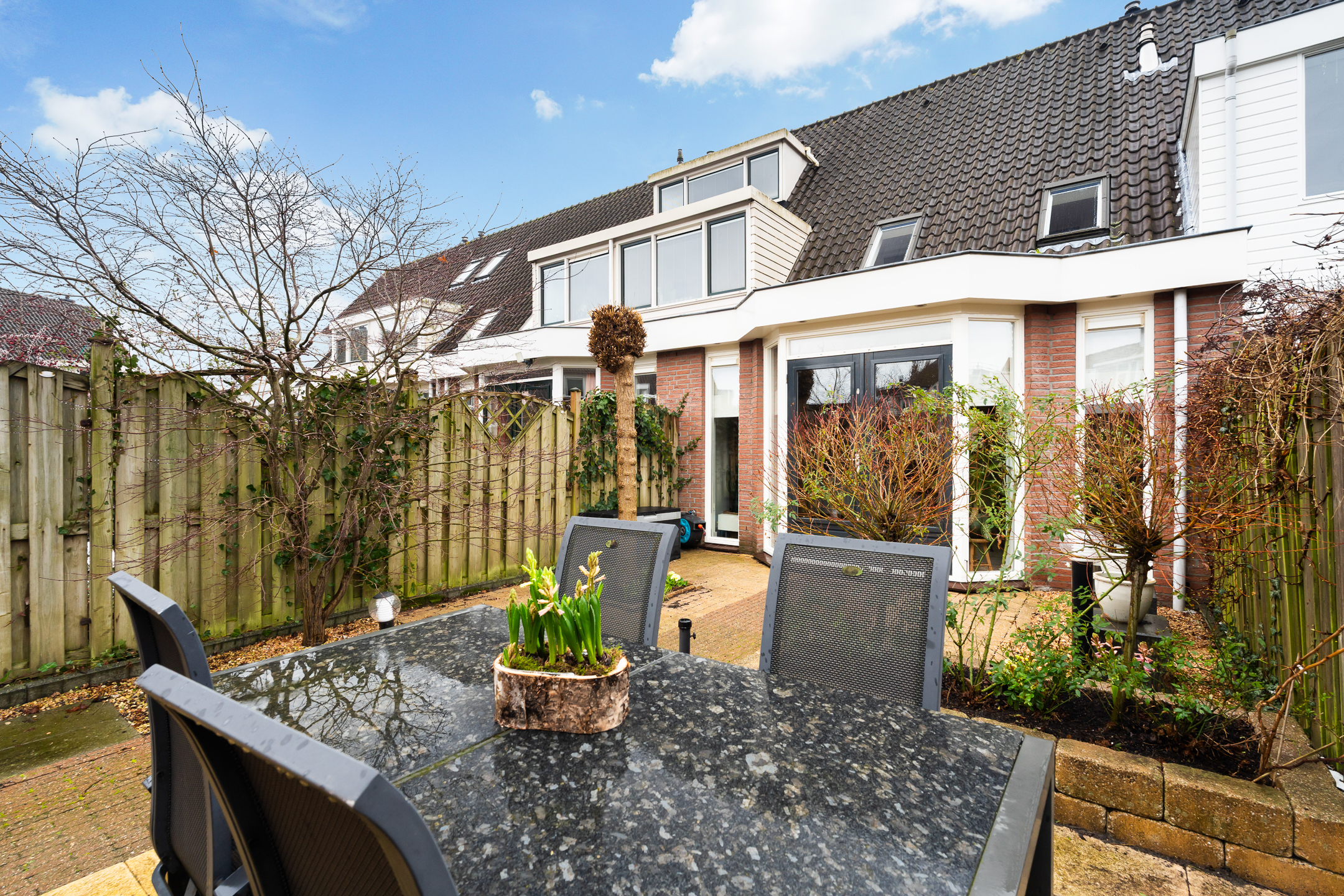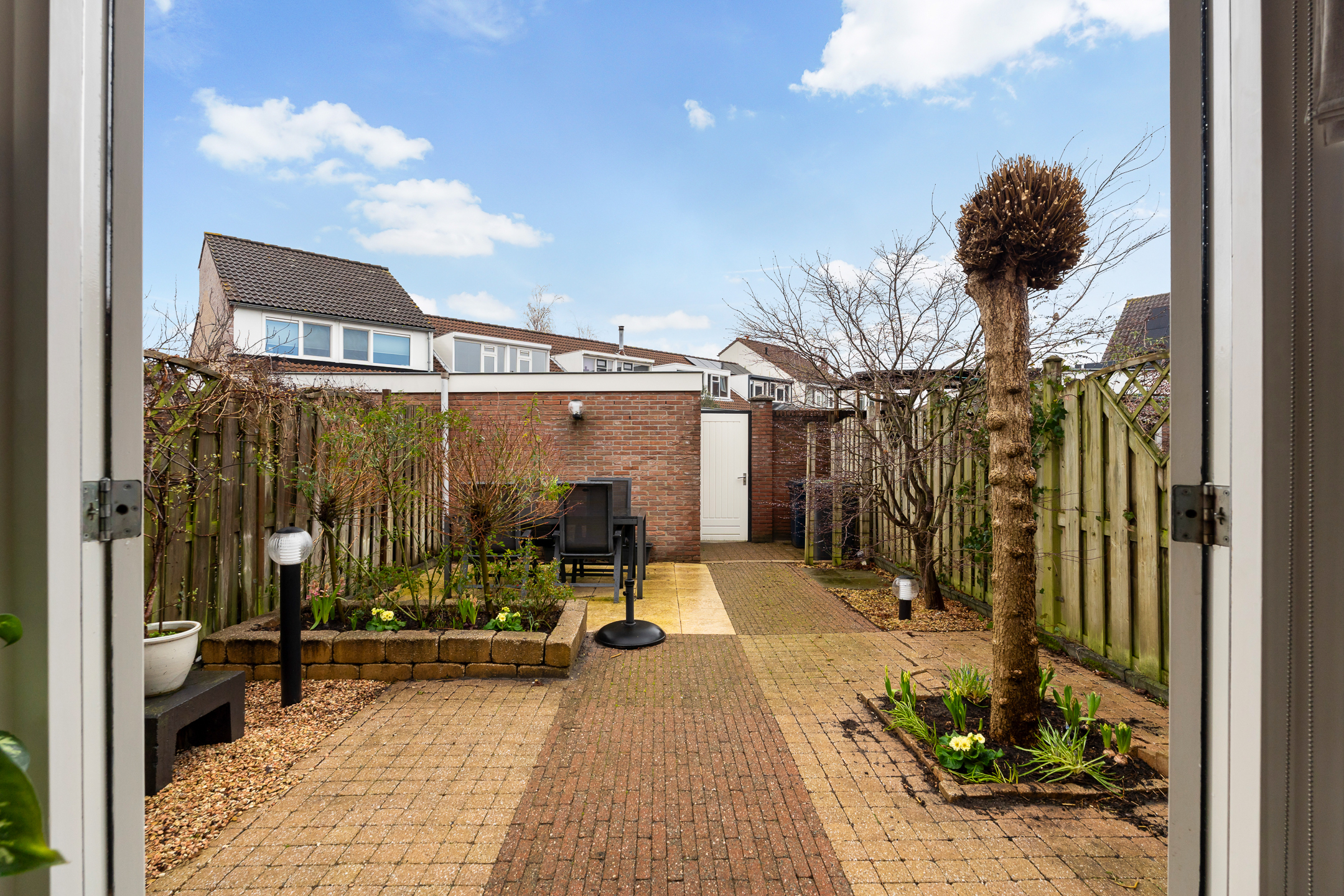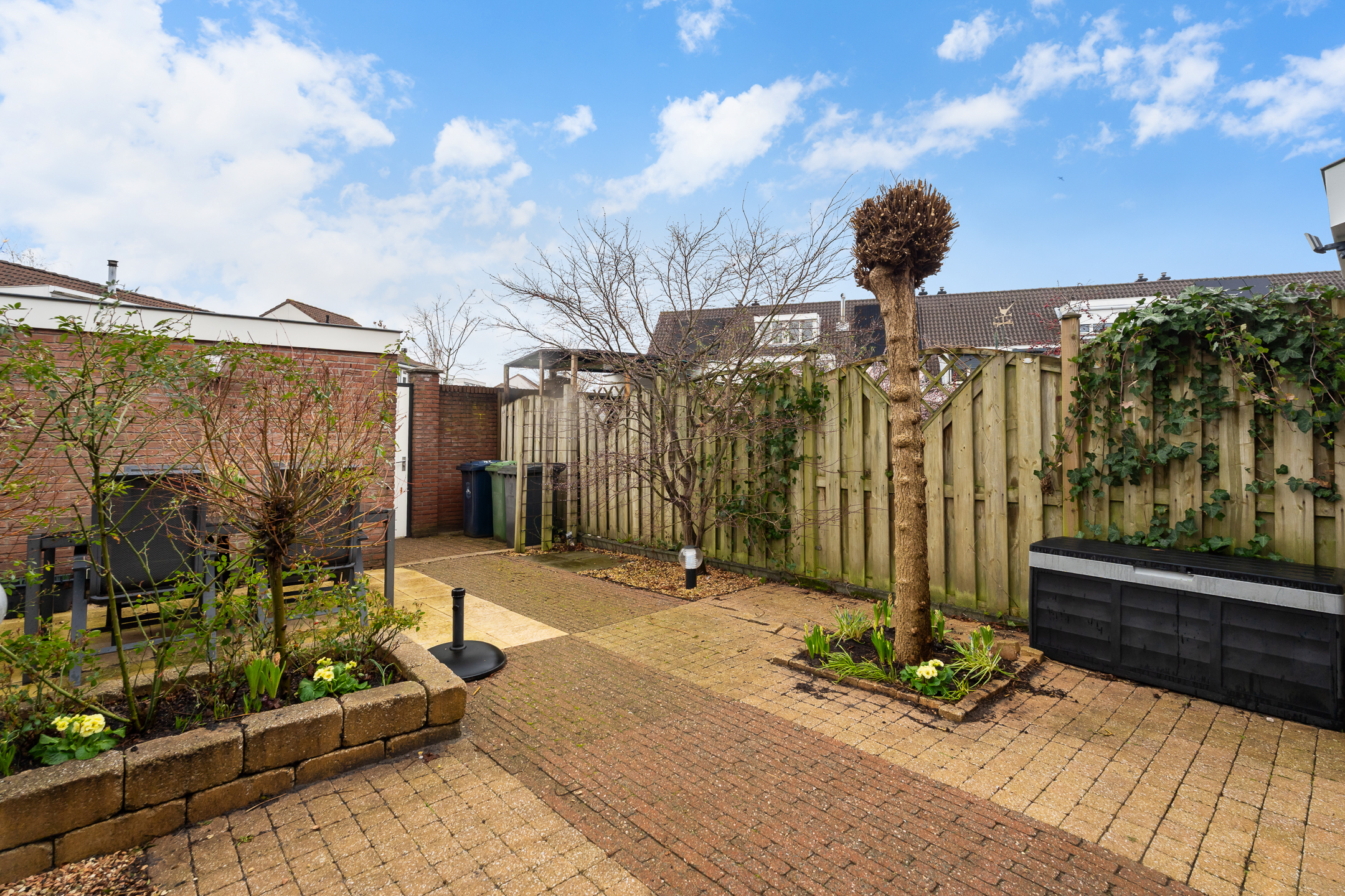 - Royale en zonnige achtertuin waar je de gehele dag heerlijk kunt genieten van de zon met sierbestrating, groenborders, kraantje, stenen berging en achterom.