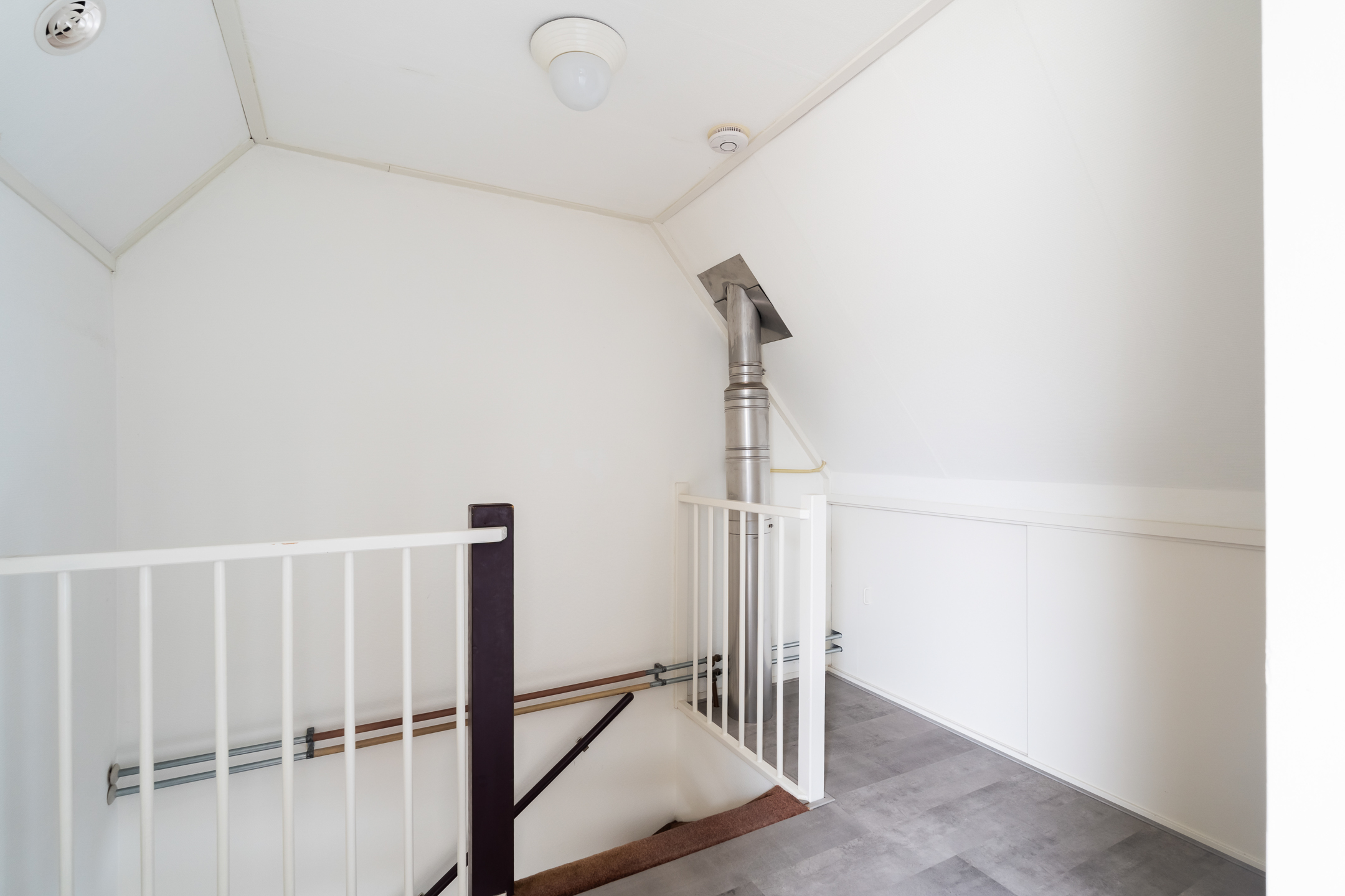 - Overloop met ruime berging voorzien van wasmachine-aansluiting, cv-ketel (Nefit Proline, 2022), hybride warmtepomp (Remeha Elga Ace, 2023), mechanische ventilatie (2022) en omvormer van de zonnepanelen.