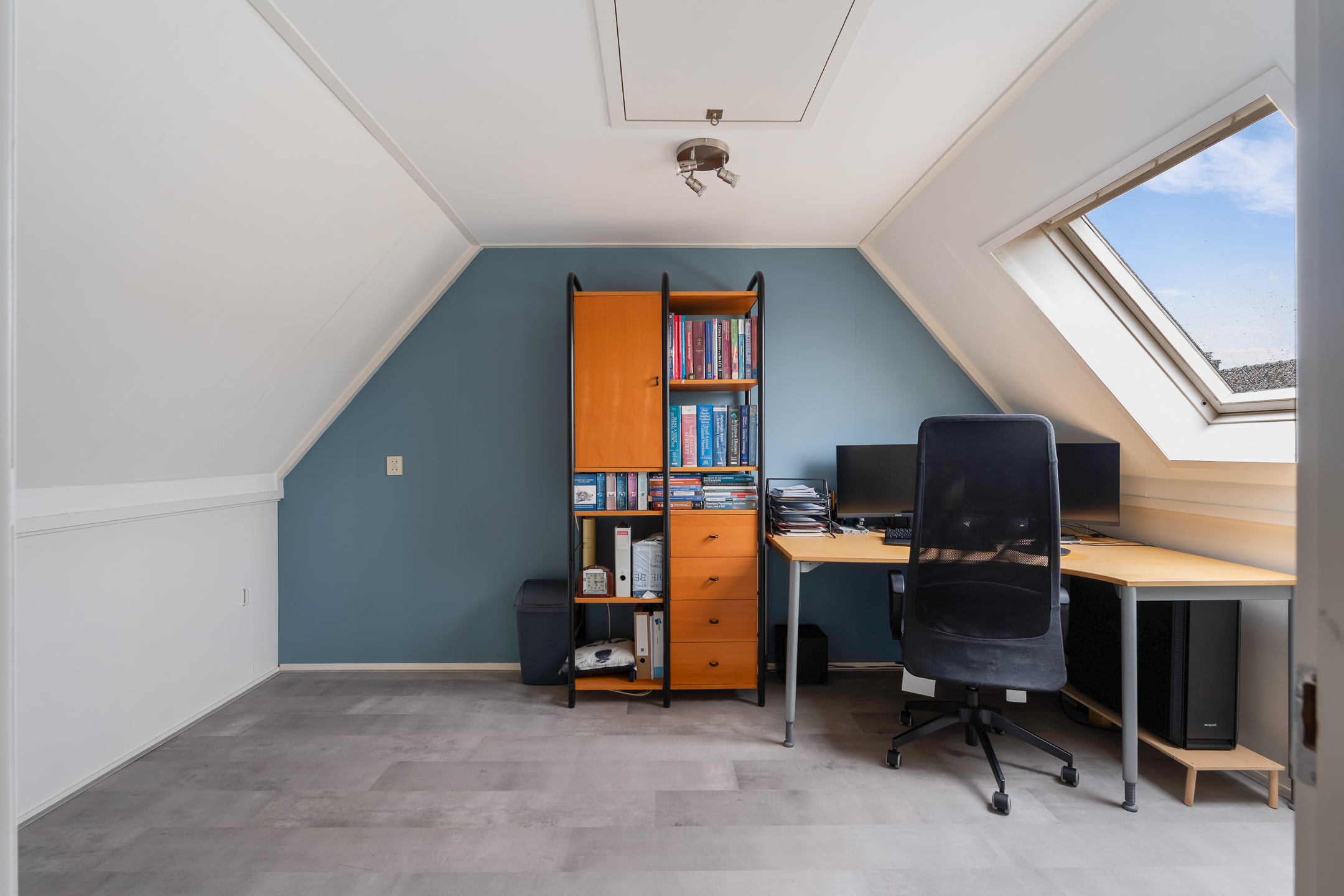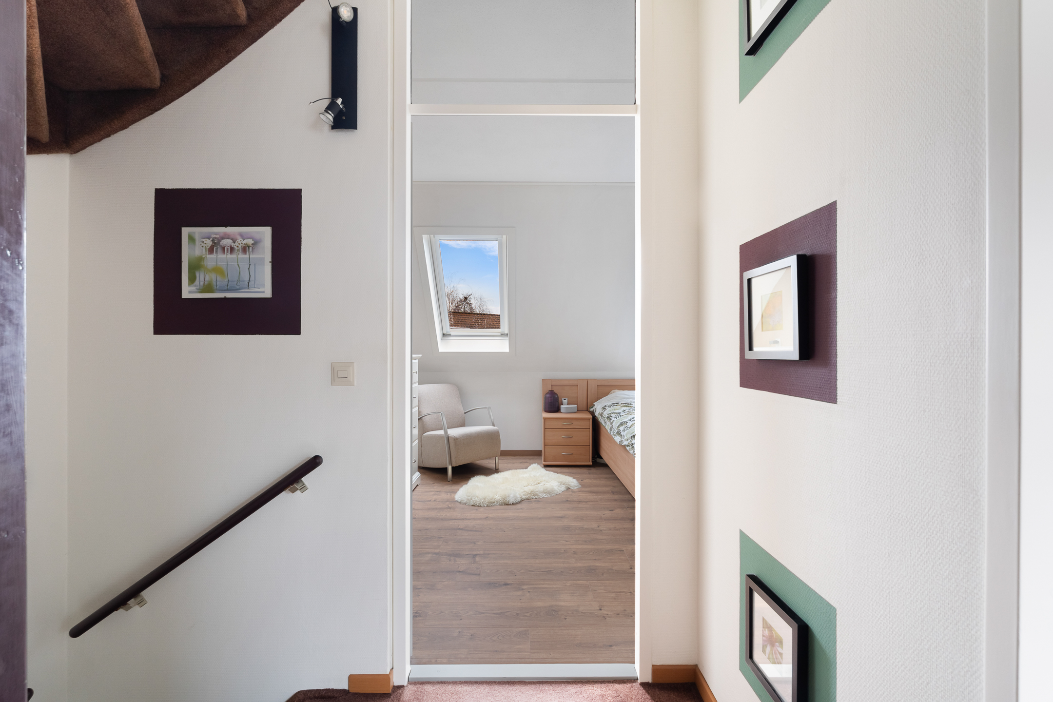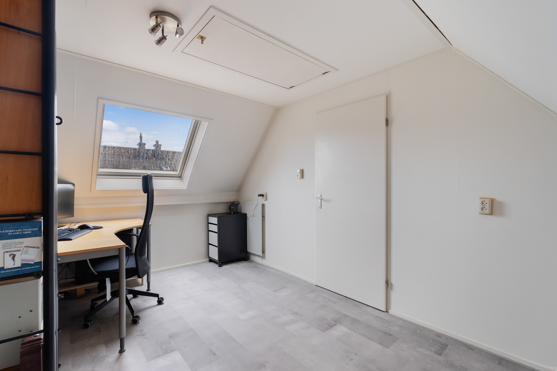 - Ruime slaapkamer met laminaat vloer, dakraam, veel bergruimte en toegang tot de bergvliering.