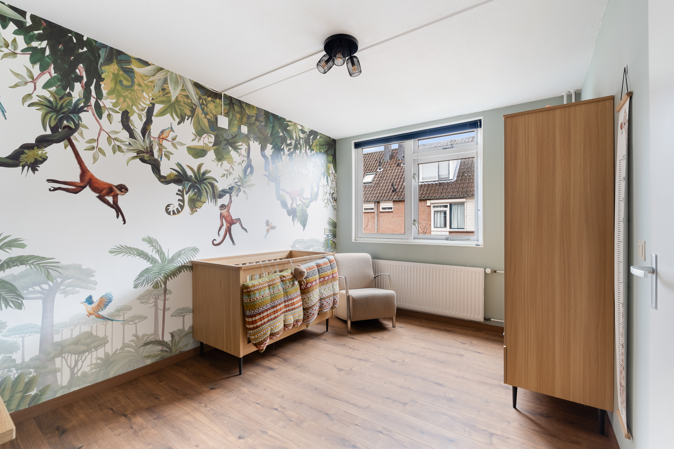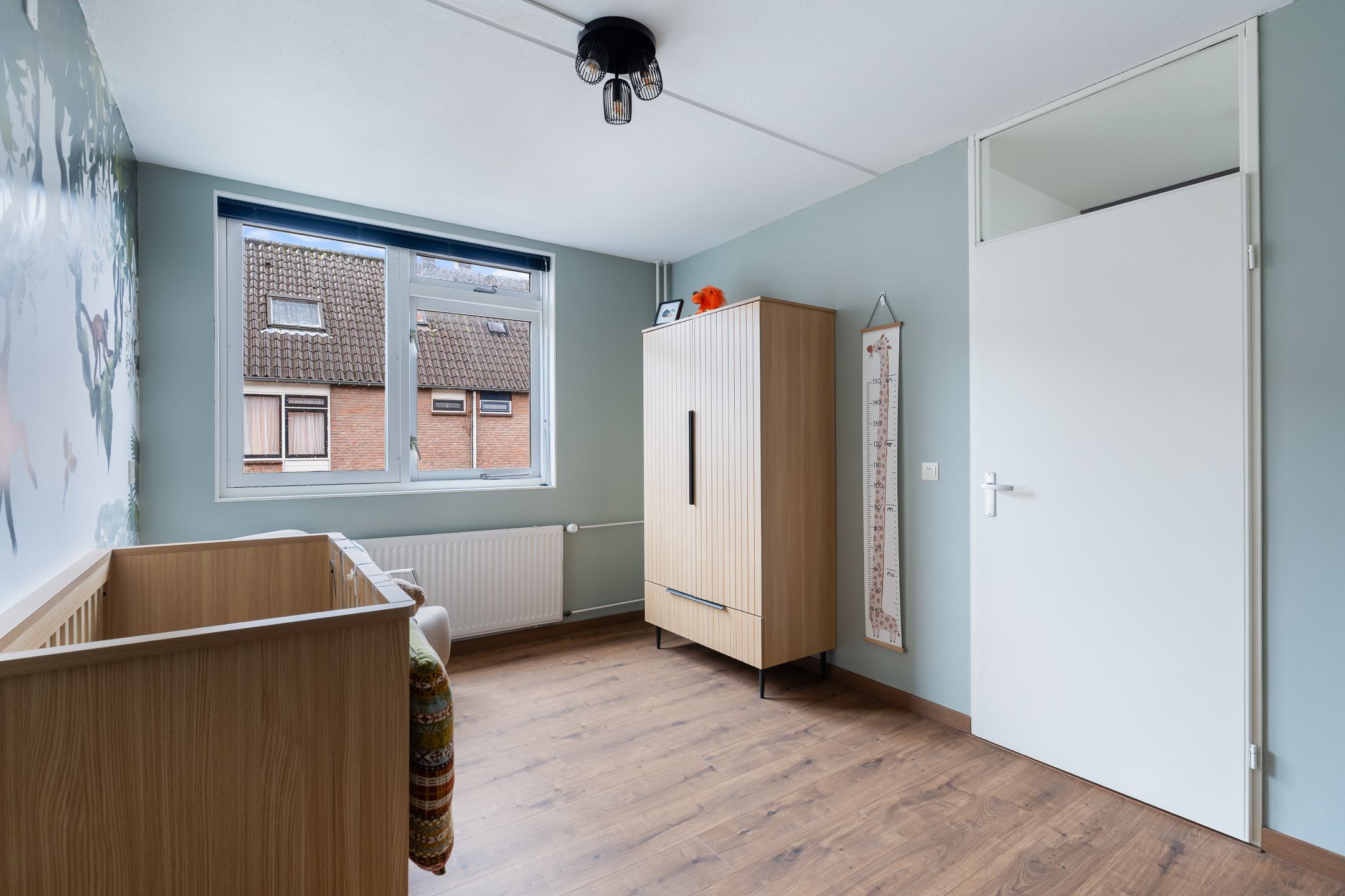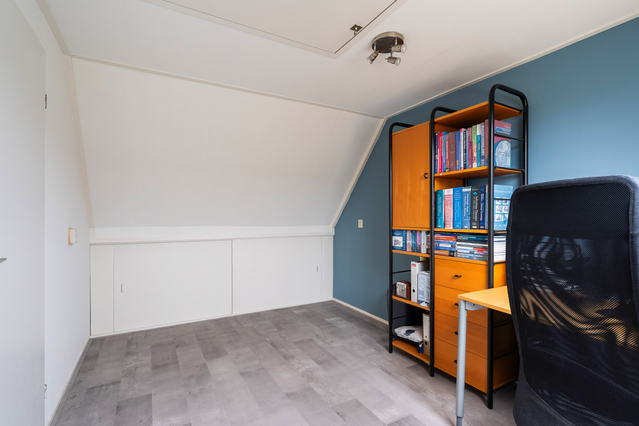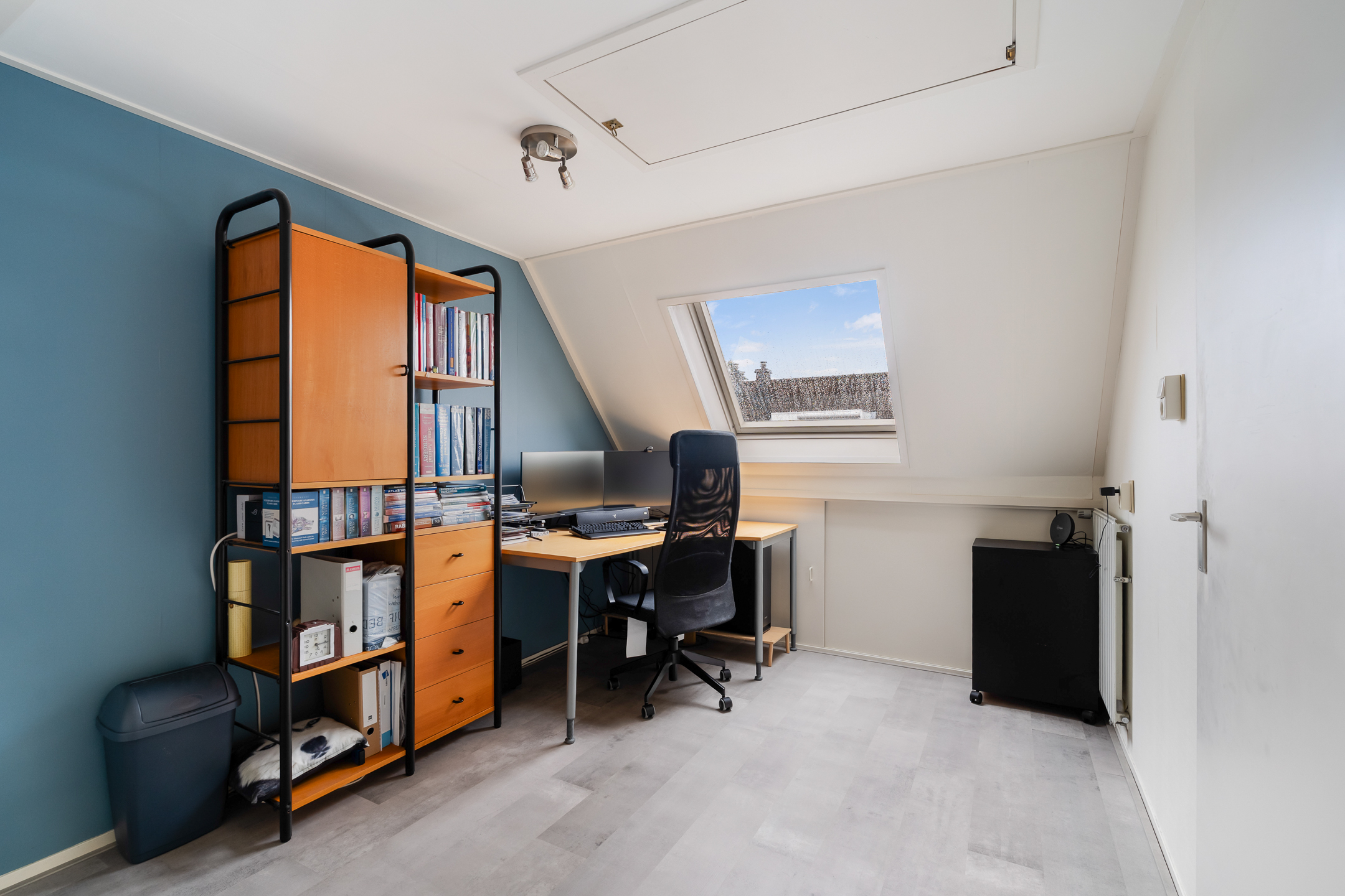 - Ruime slaapkamer met laminaat vloer, dakraam, veel bergruimte en toegang tot de bergvliering.