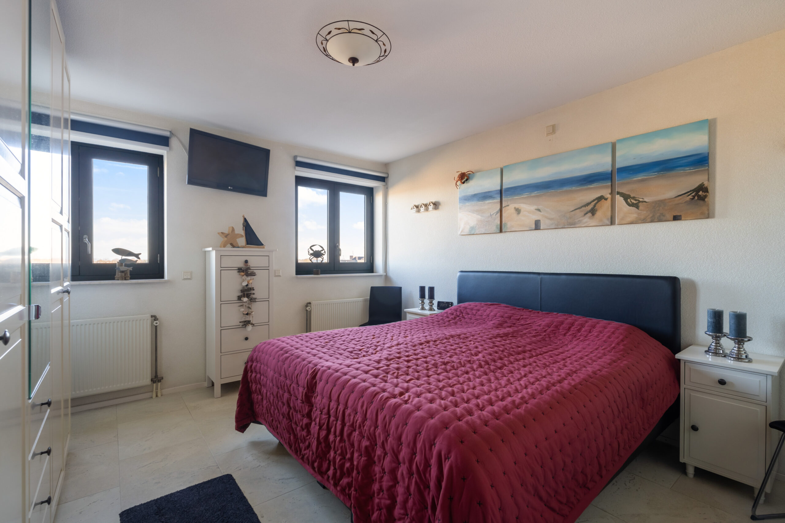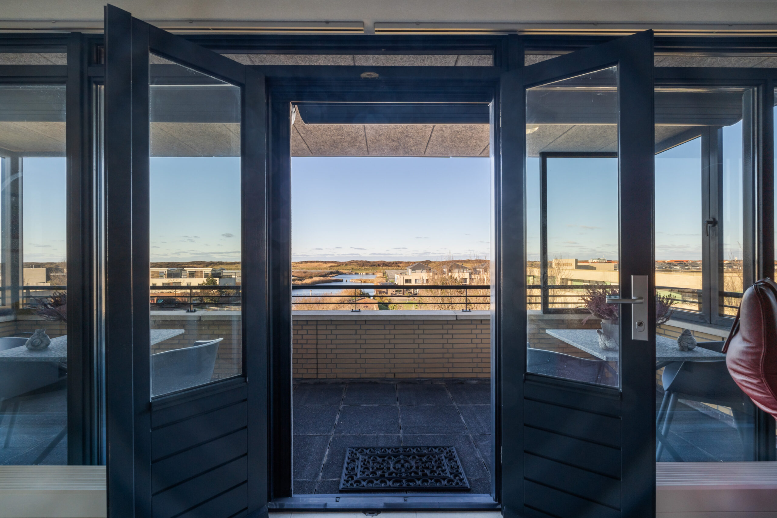 - Vanaf het ruime balkon (ca 10 m2) zie je de zon ondergaan achter de duinen.