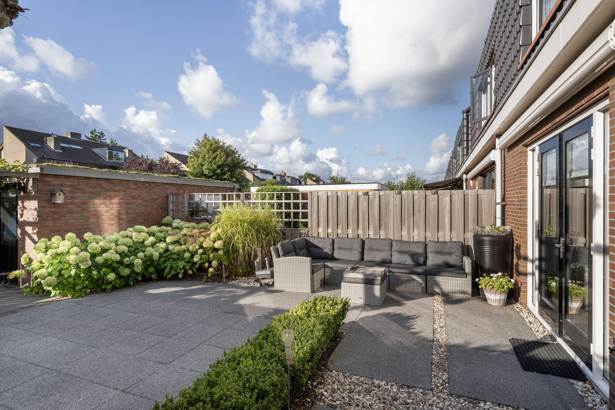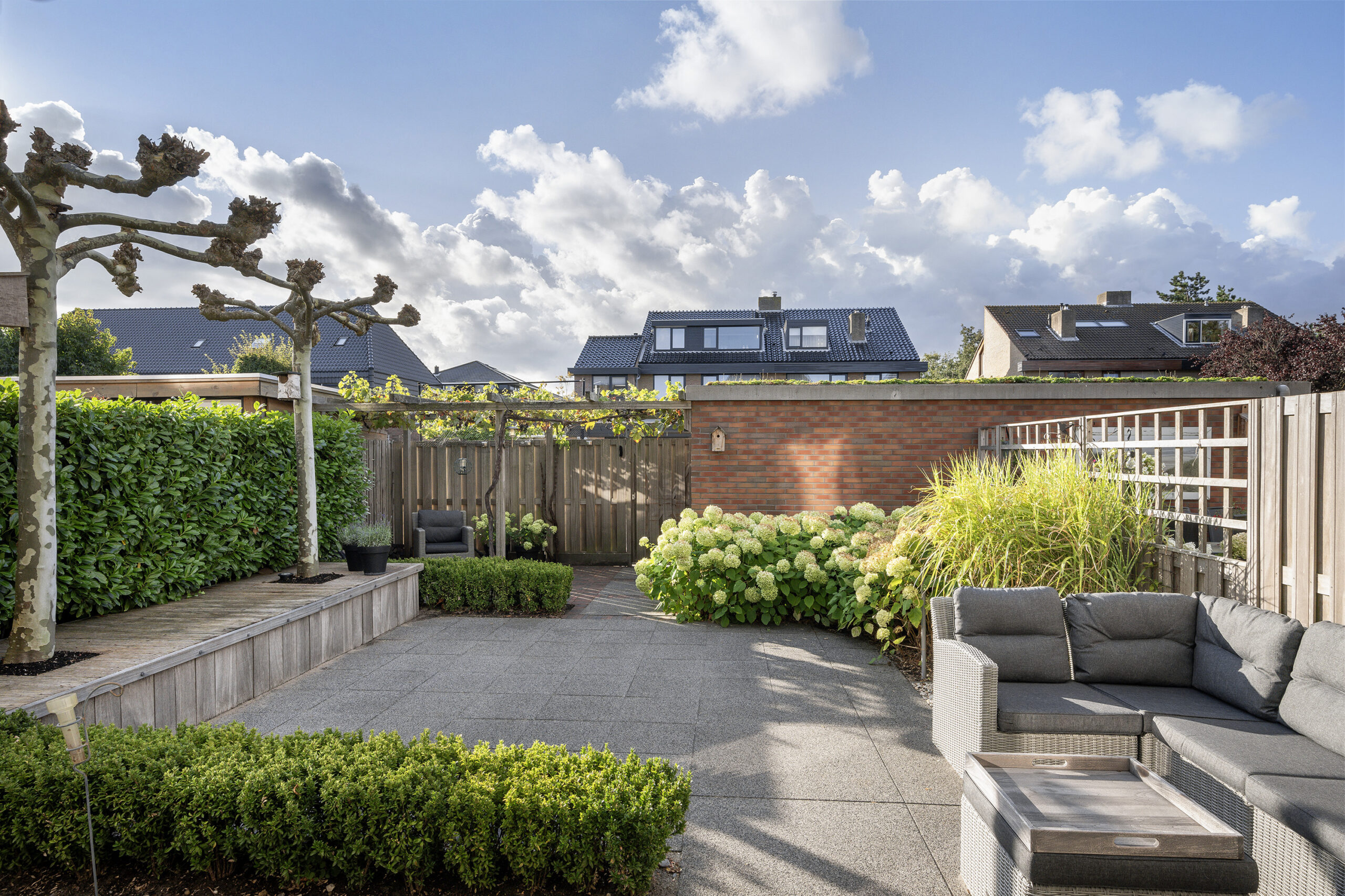 - Royale en keurig aangelegde zonnige achtertuin gelegen op het zuidoosten waar je de gehele dag heerlijk kunt genieten van de zon. De tuin is voorzien van grote tegels,