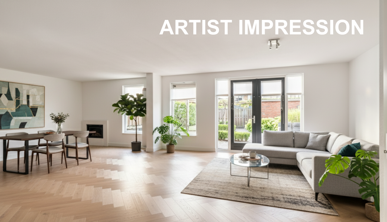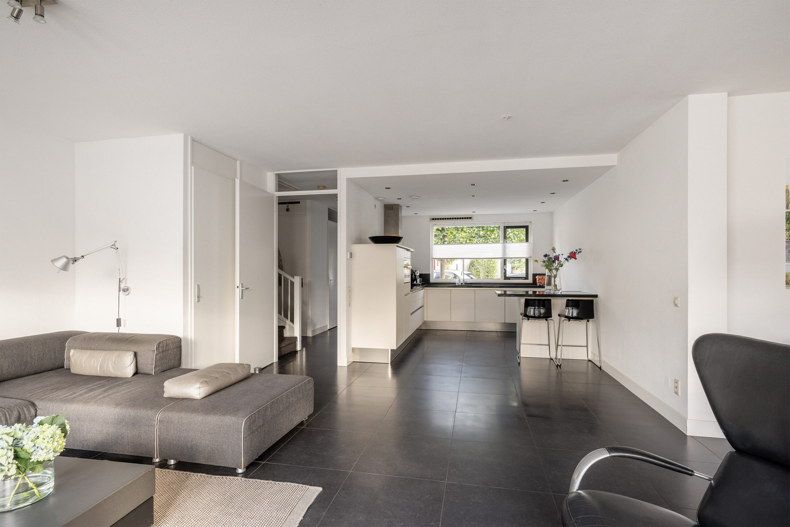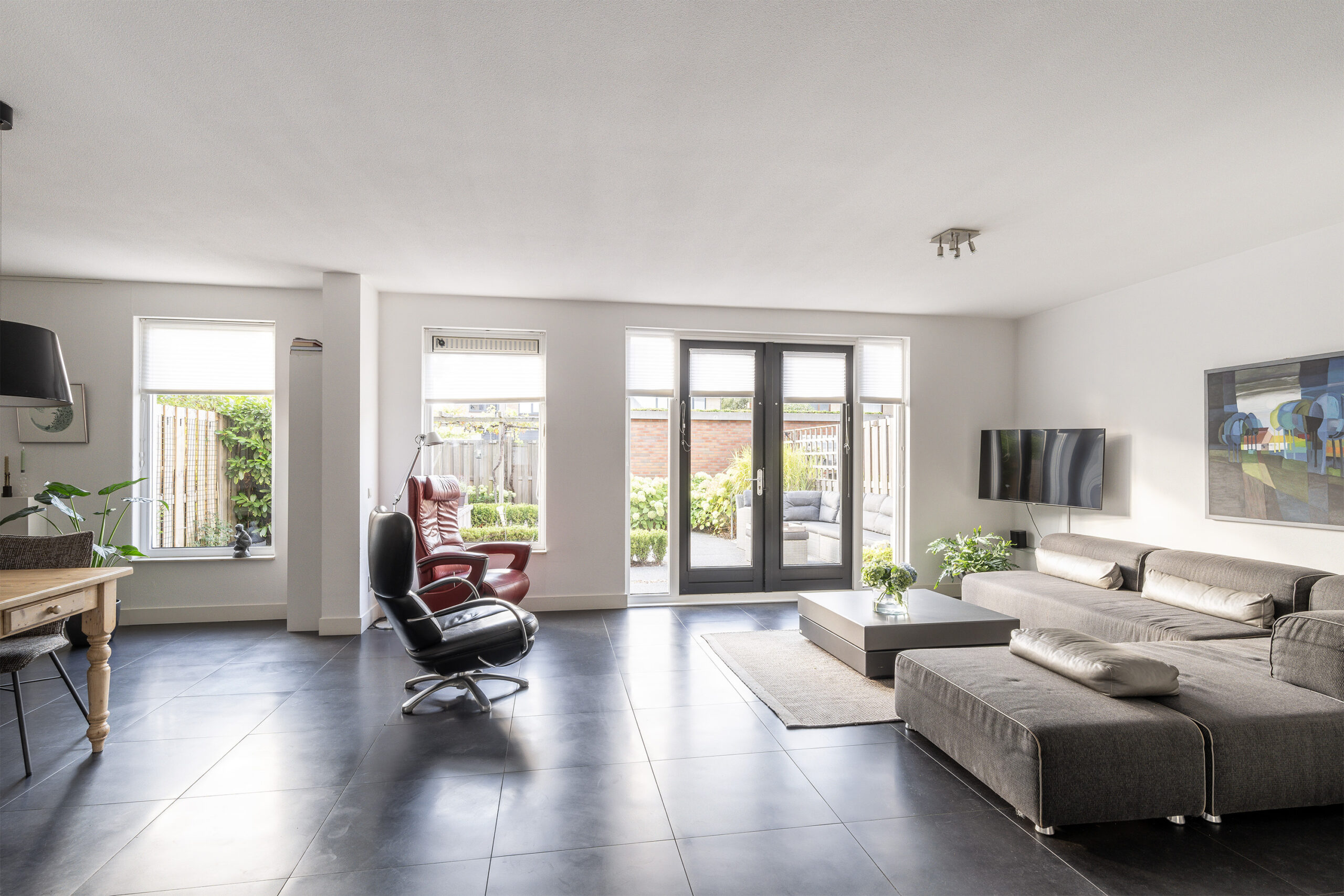 - Royale tuingerichte woonkamer voorzien van plavuizen vloer met vloerverwarming, gezellig eetkamer, trapkast en openslaande deuren naar de zonnige achtertuin.