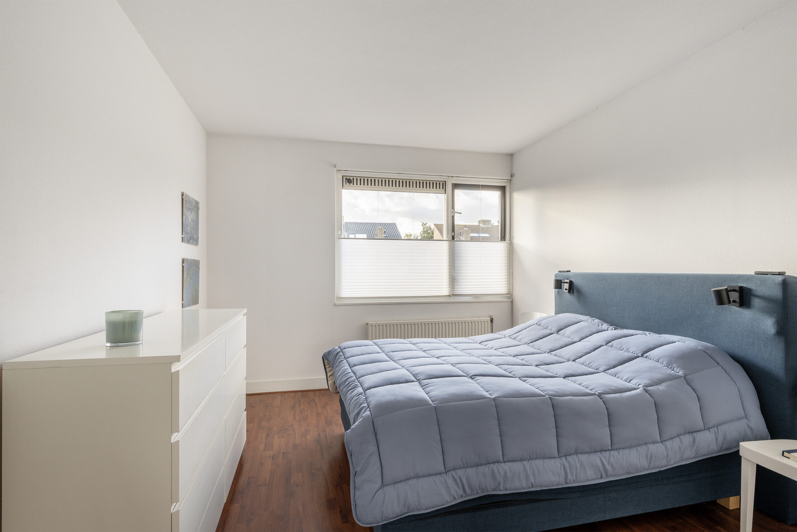 - Ruime slaapkamer aan de voorzijde van de woning tevens voorzien van een laminaatvloer.