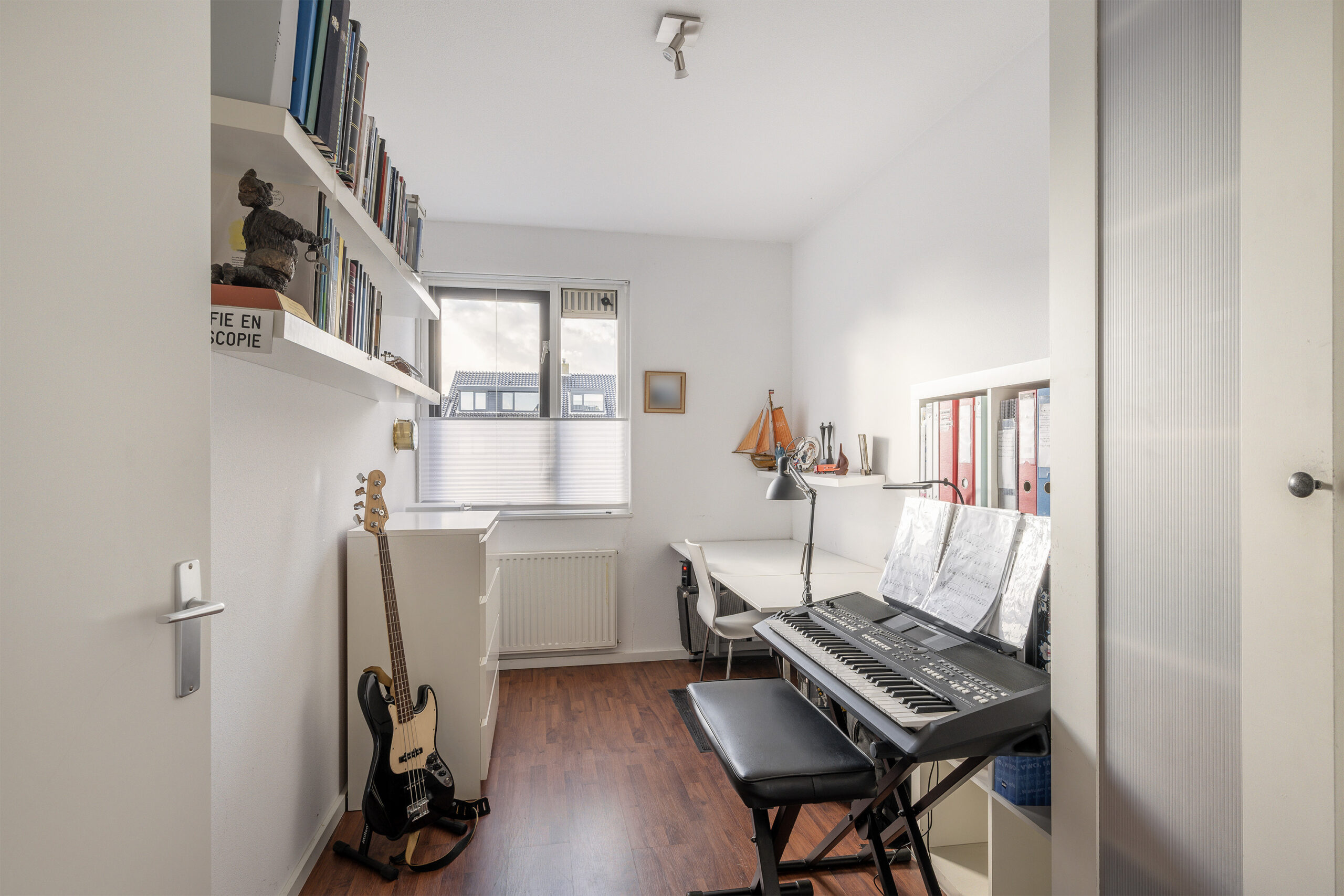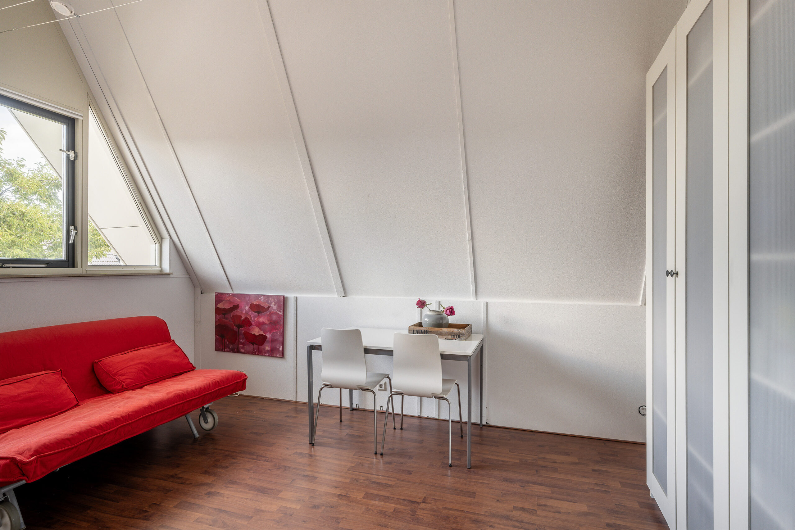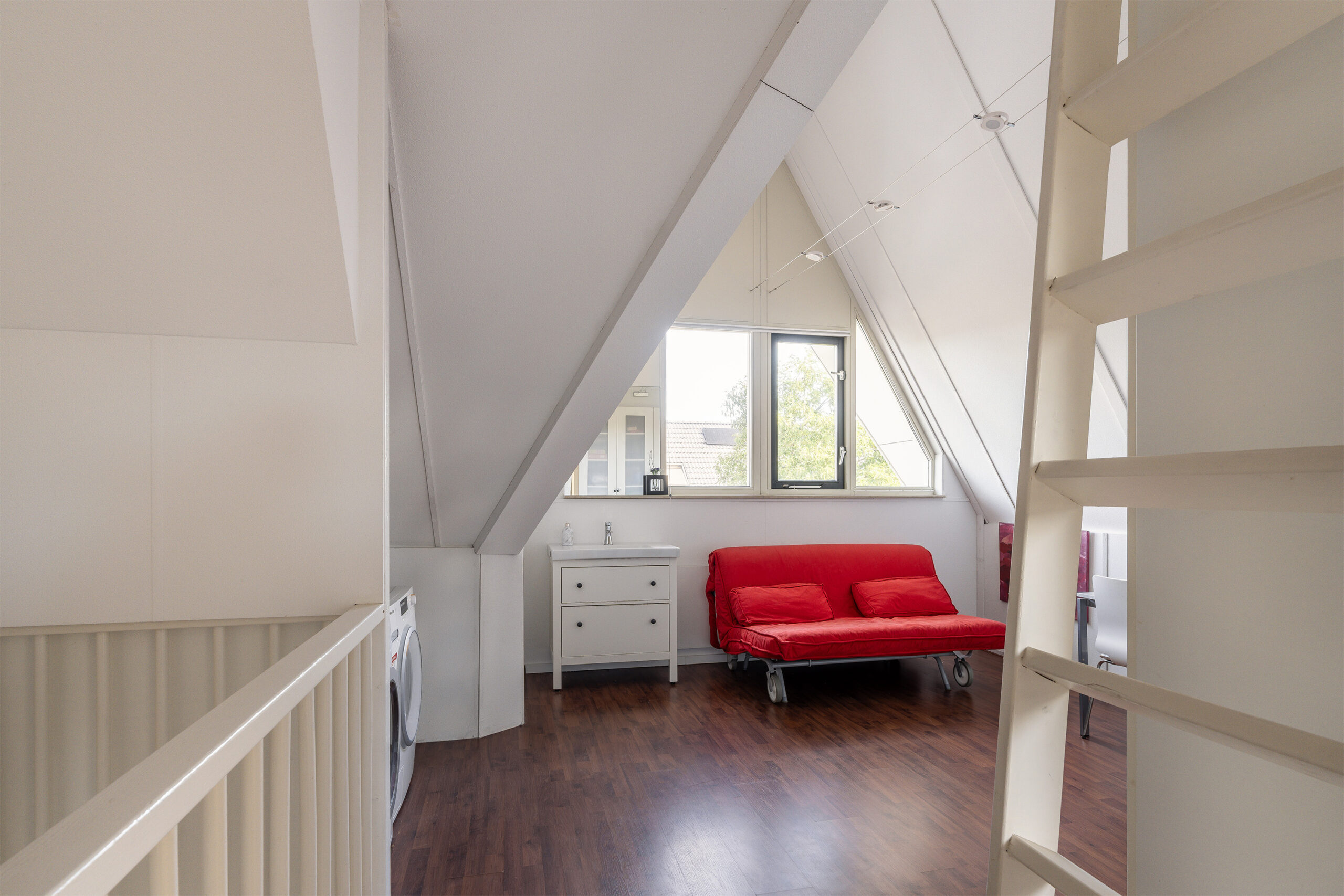 - Grote open ruimte aan de voorzijde met veel mogelijkheden en in te richten als werk- of slaapkamer met hoge nok en mooie raampartij, voorzien van wasmachine-aansluiting, opstelplaats van de c.v.-ketel (Nefit, circa 2021), mechanische ventilatie, omvormers op vide;