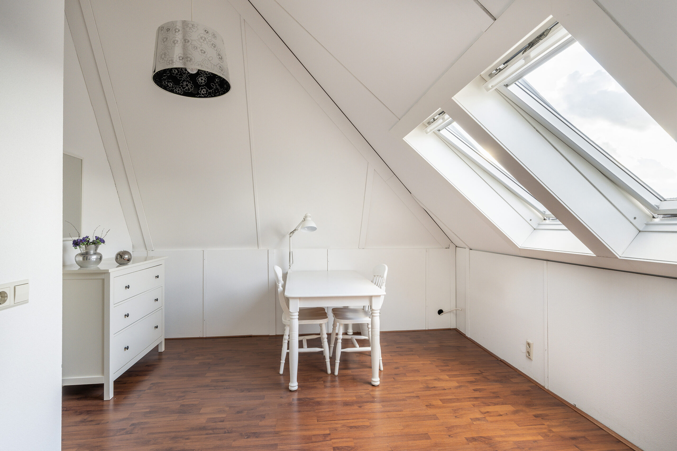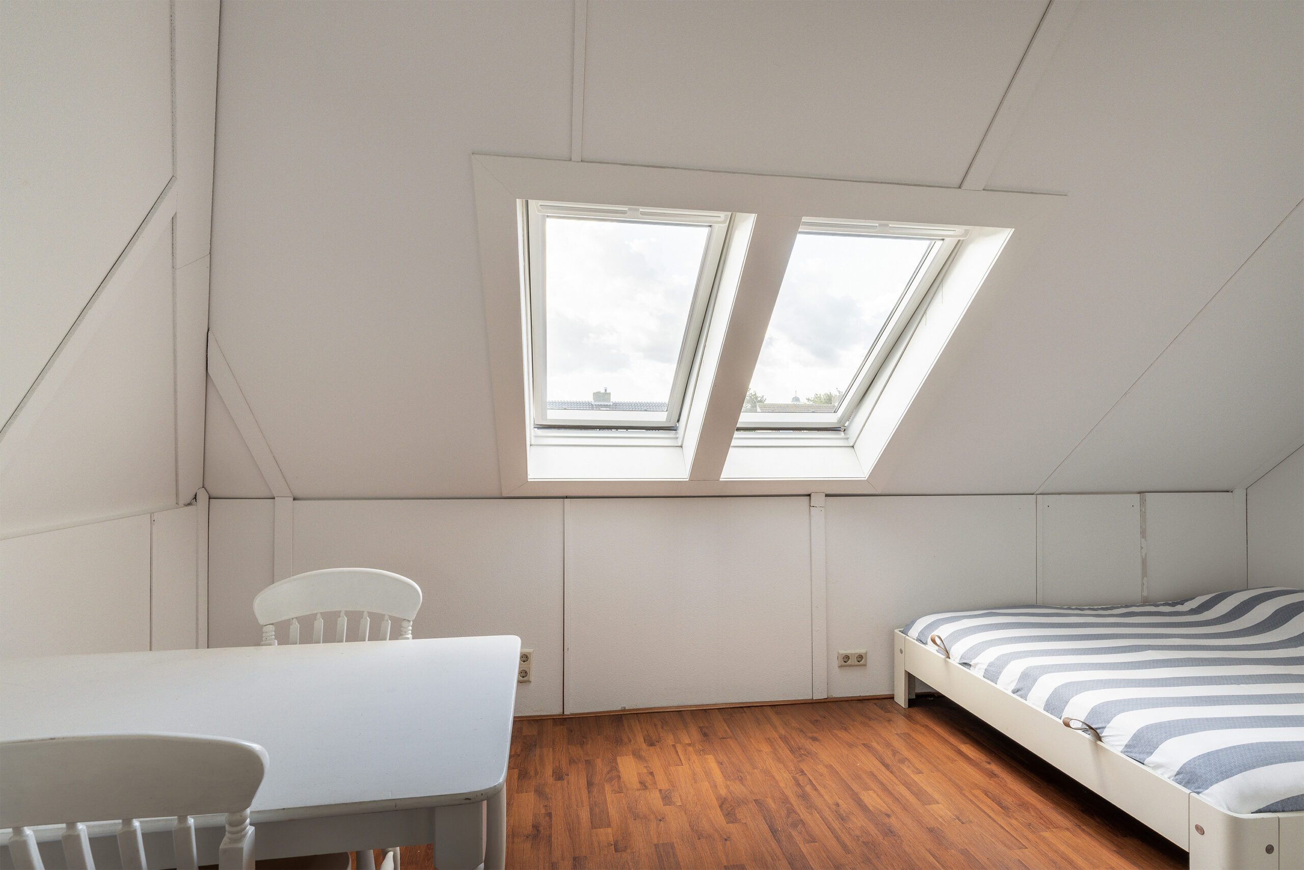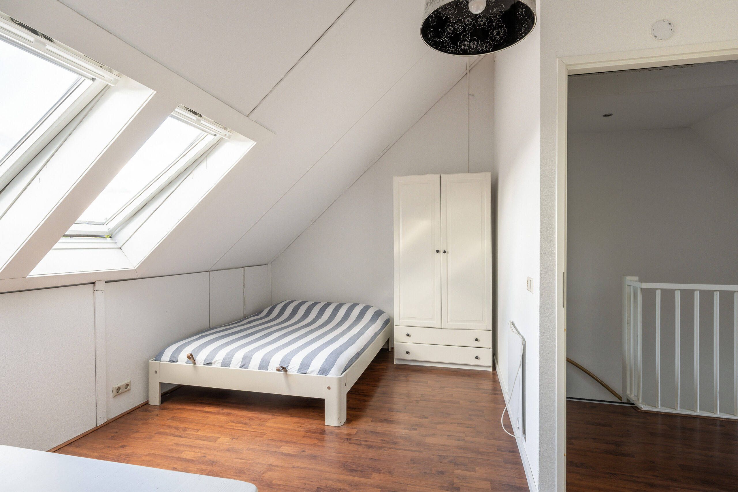 - Goede slaapkamer aan de achterzijde voorzien van een laminaatvloer, 2 dakramen met screens en bergruimte.