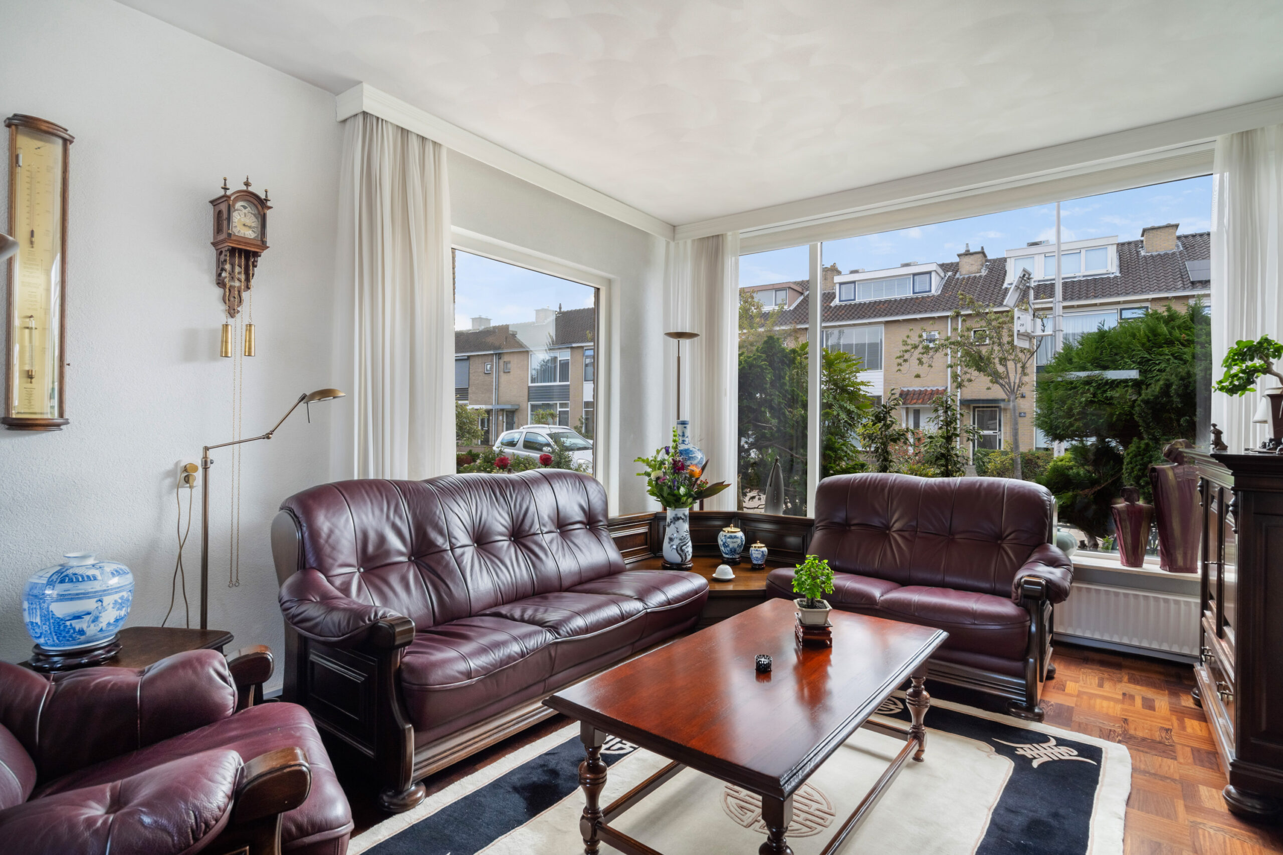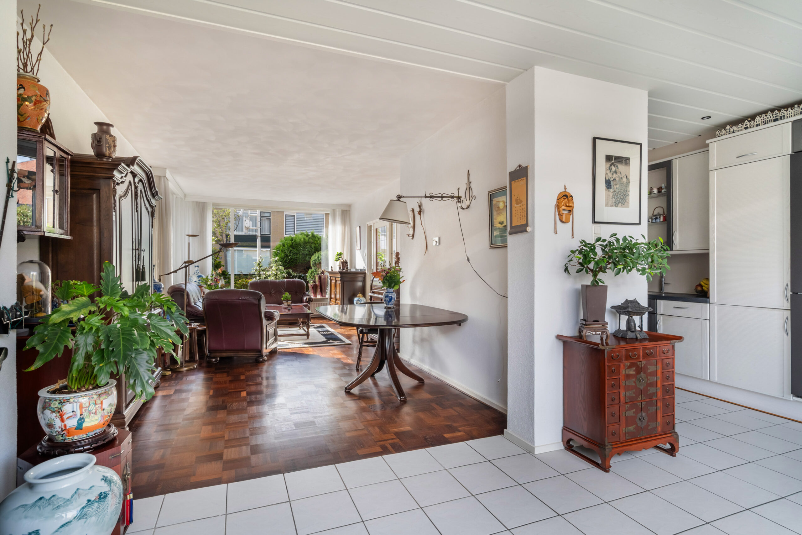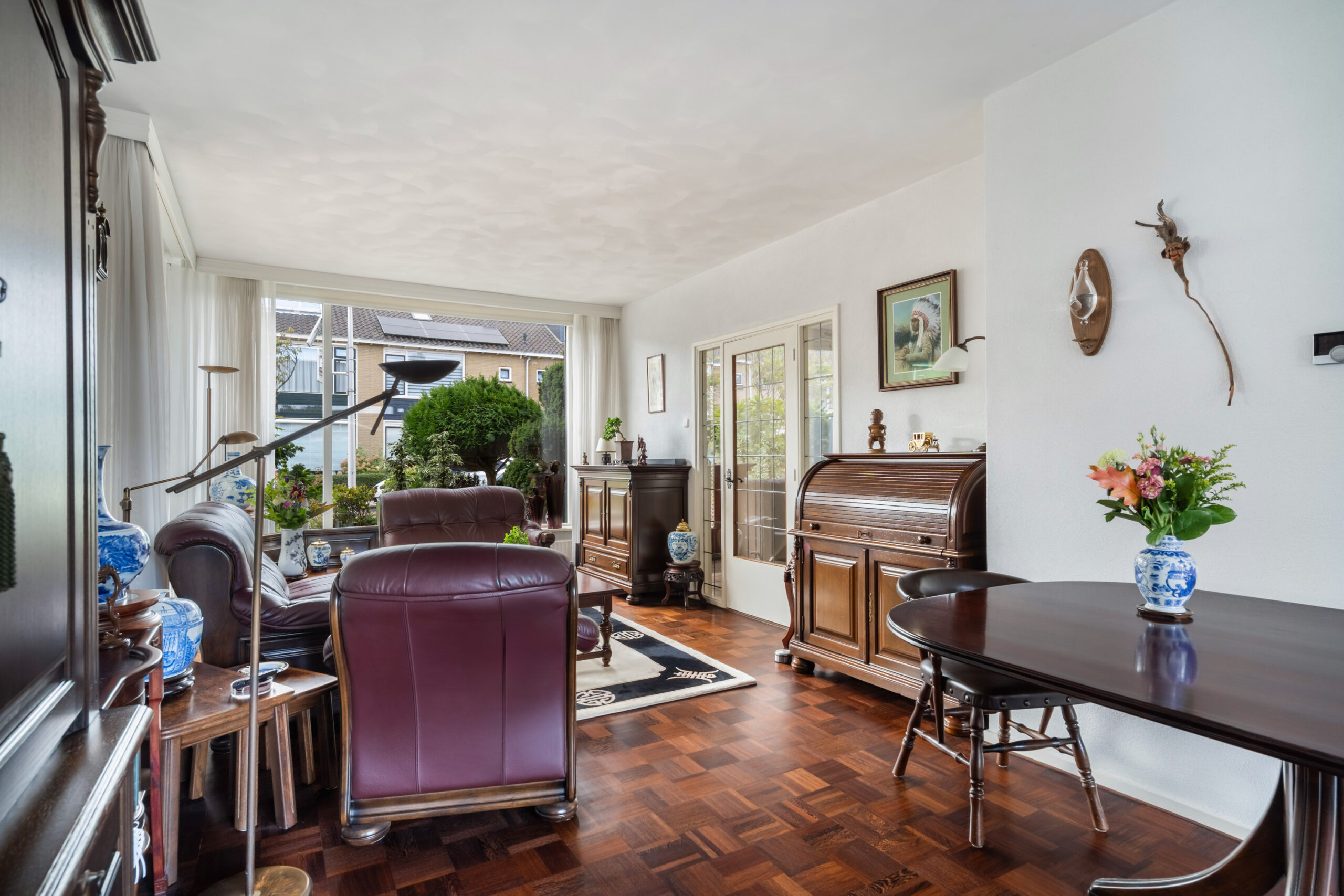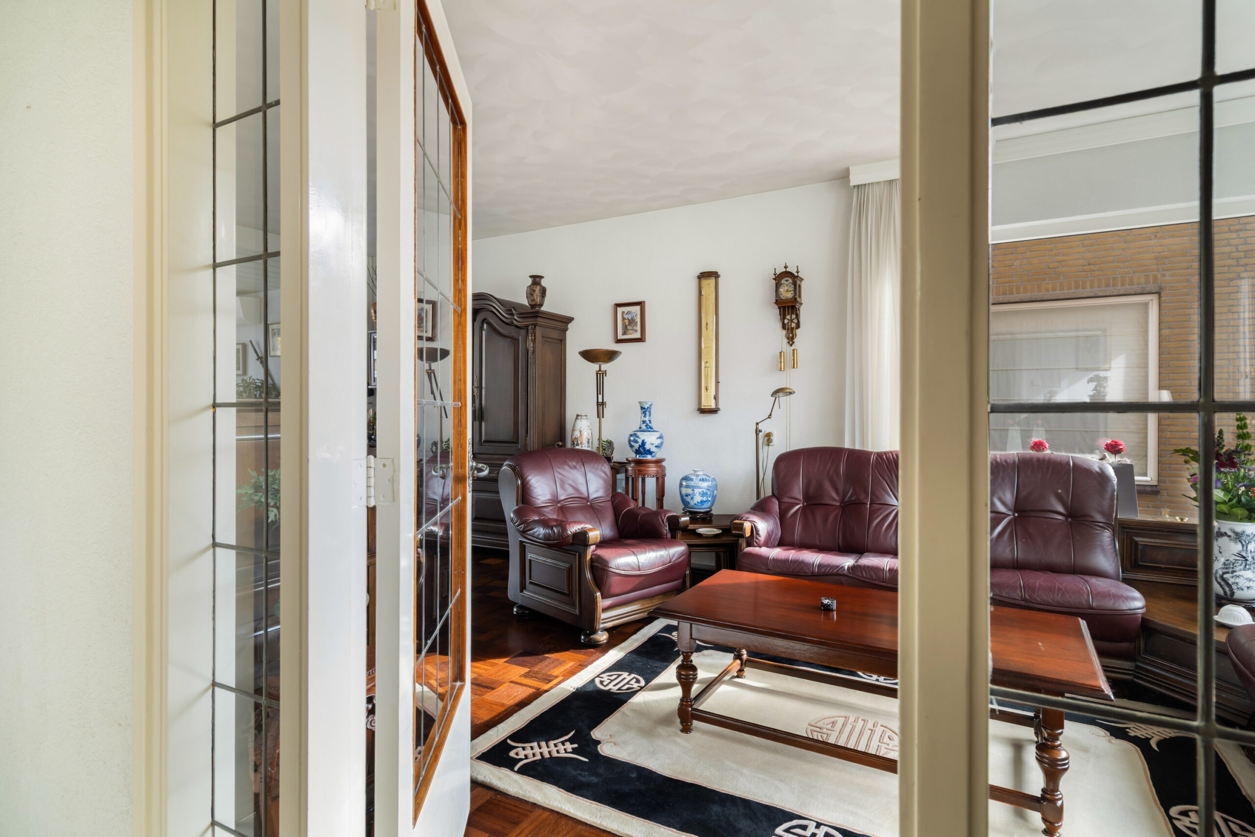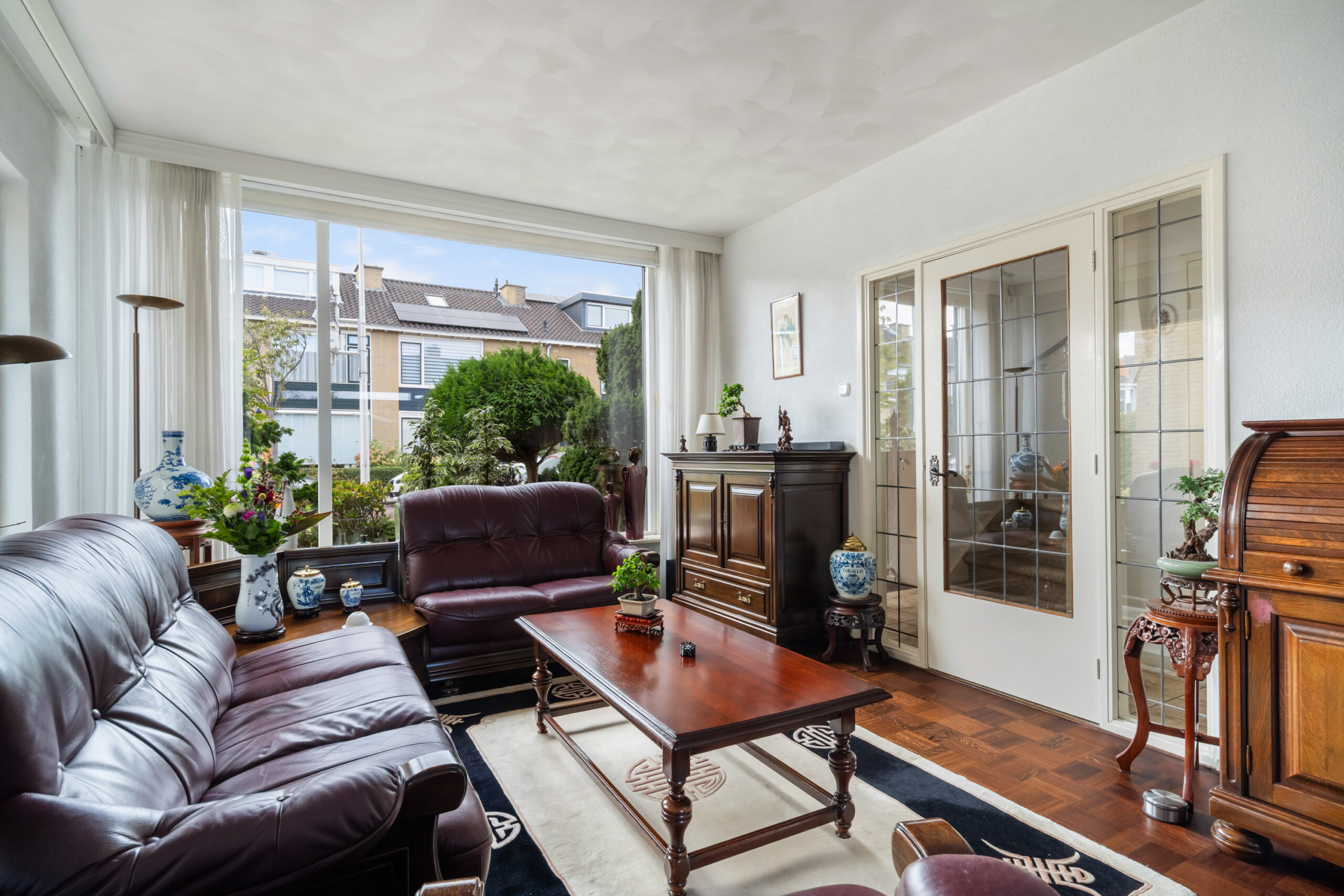 - Ruime en lichte woonkamer voorzien van parketvloer, glas in lood deur én zijraam;