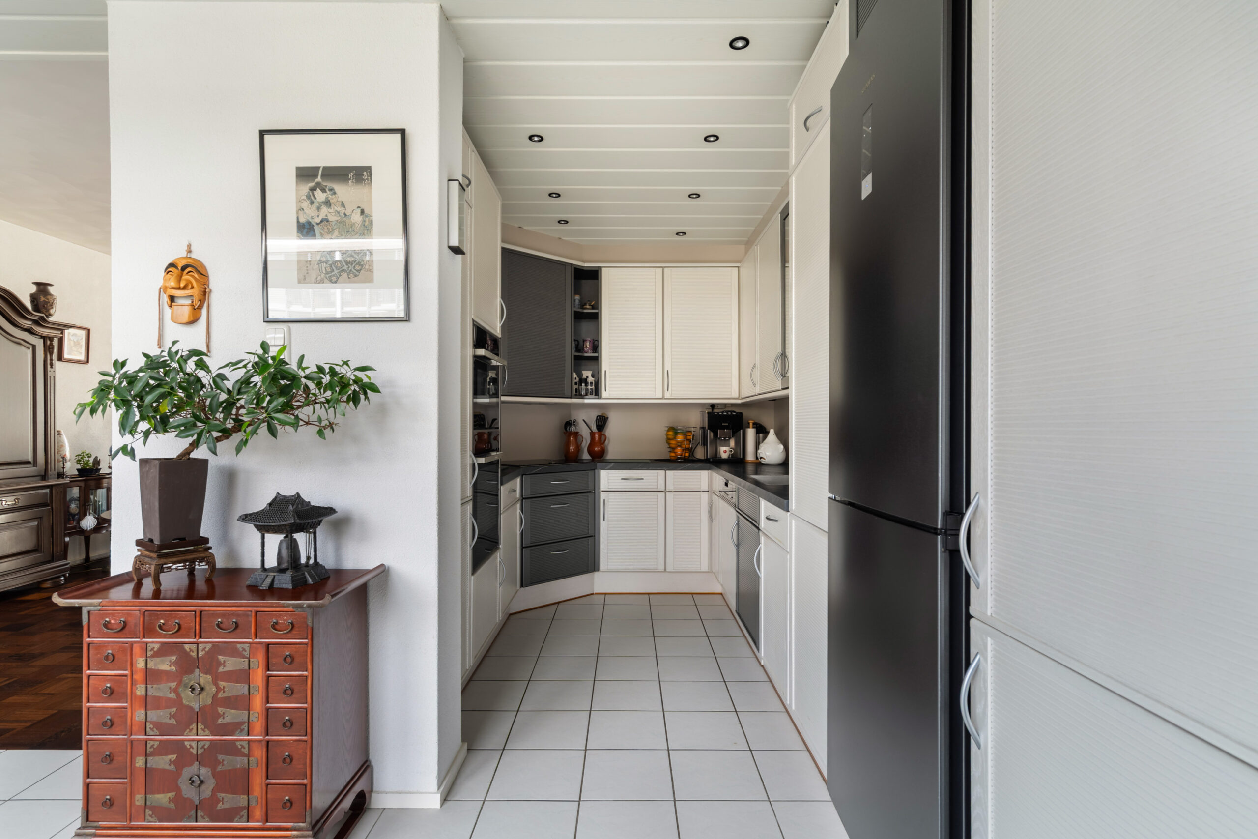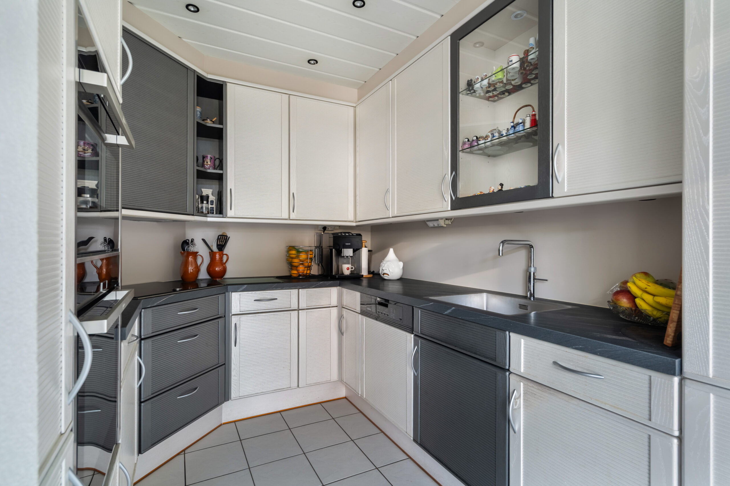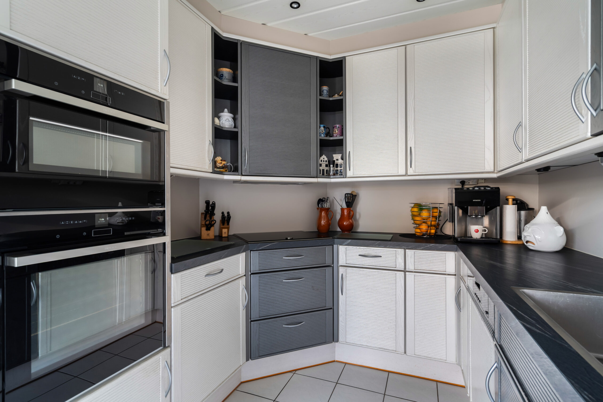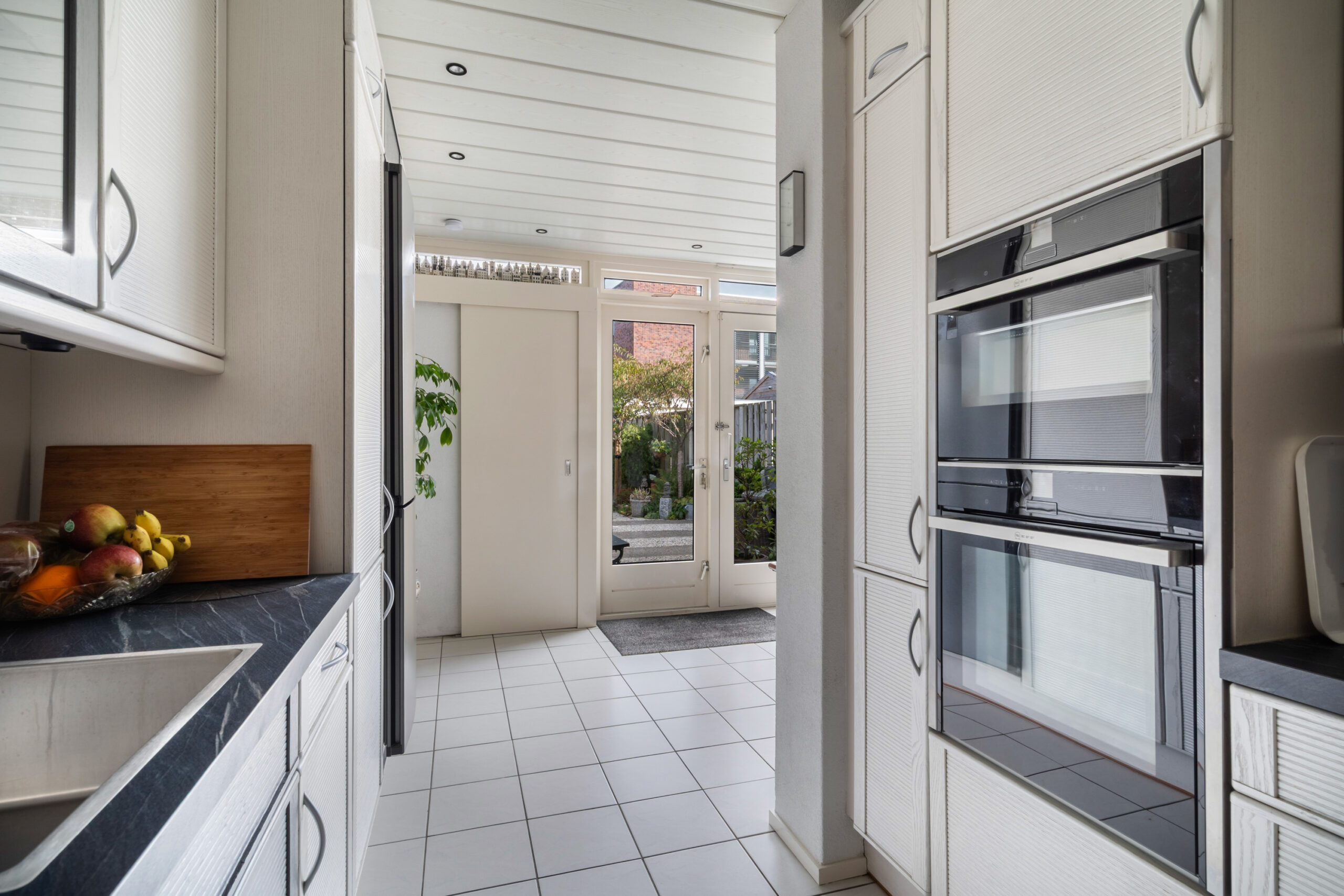 - Via de zitkamer bereikt u de keuken. De keuken is voorzien van een inductiekookplaat, koel-vriescombinatie, vaatwasmachine, oven, combi-oven en quooker kraan;