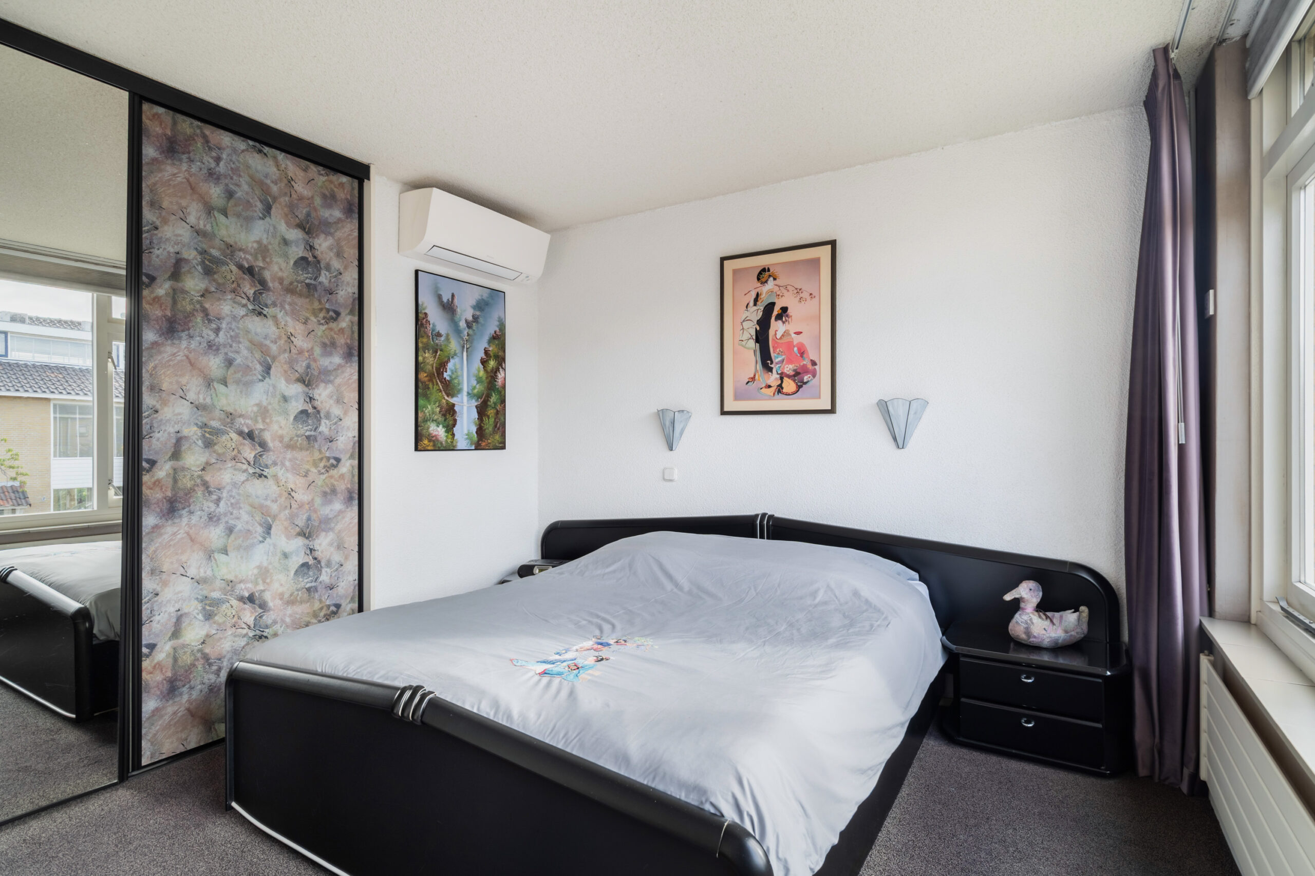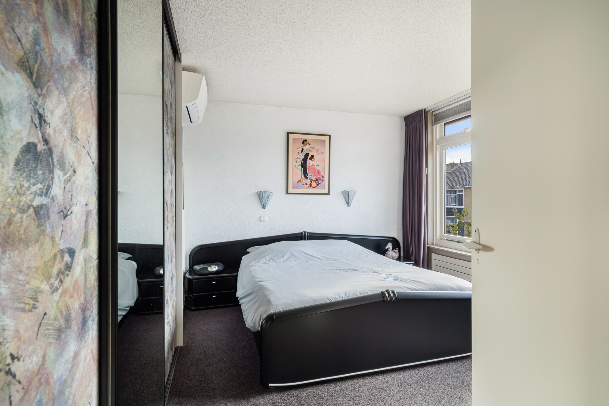 - Hoofdslaapkamer aan de voorzijde van de woning (ca. 3,68 x 3,70 m) voorzien van inbouwkast en airco;