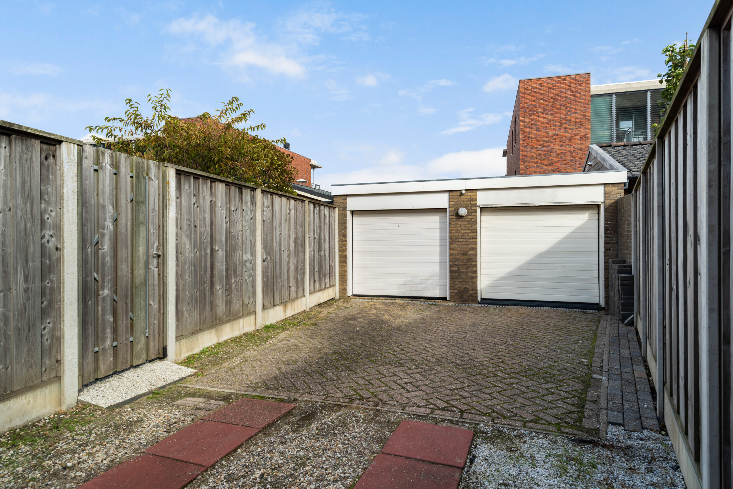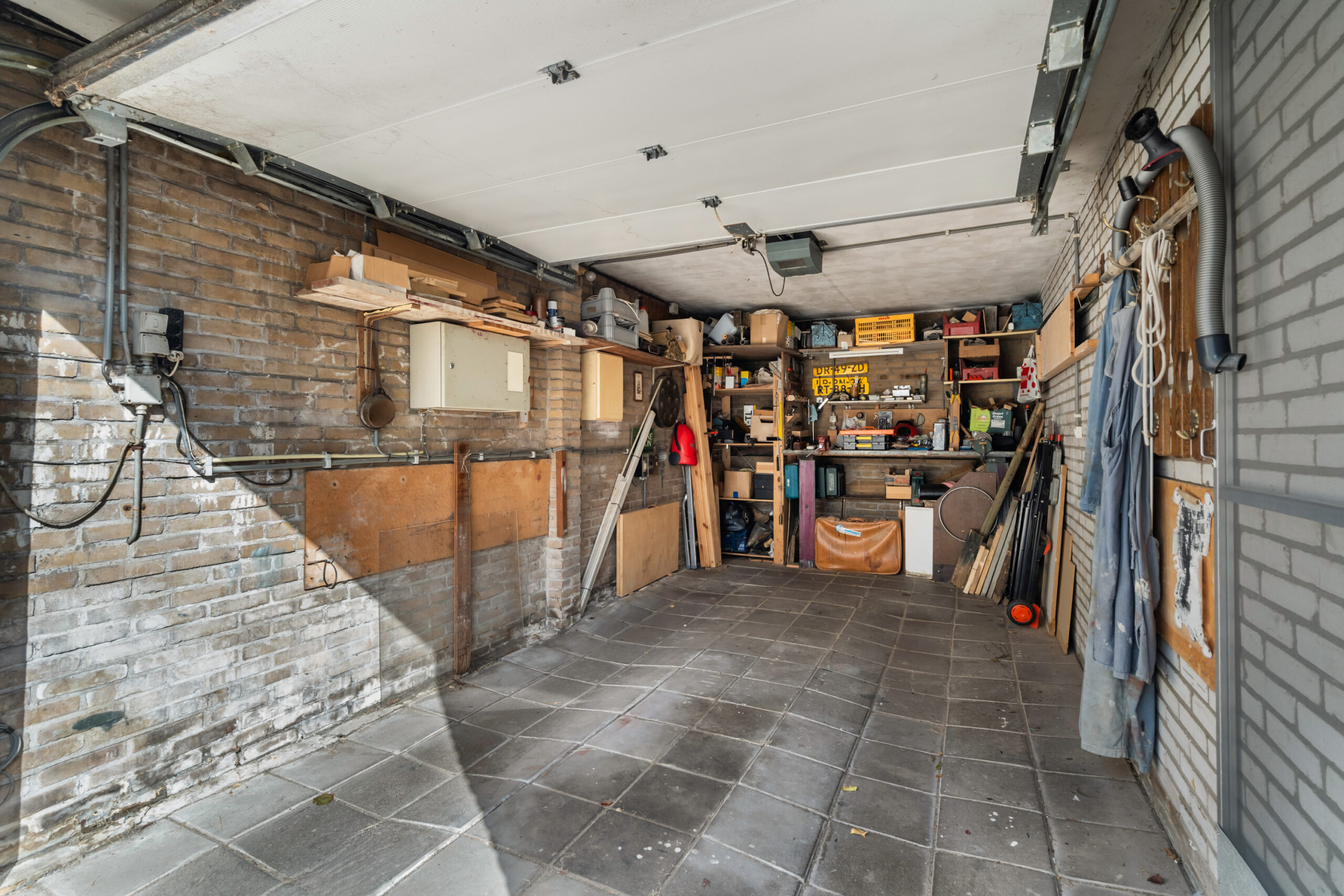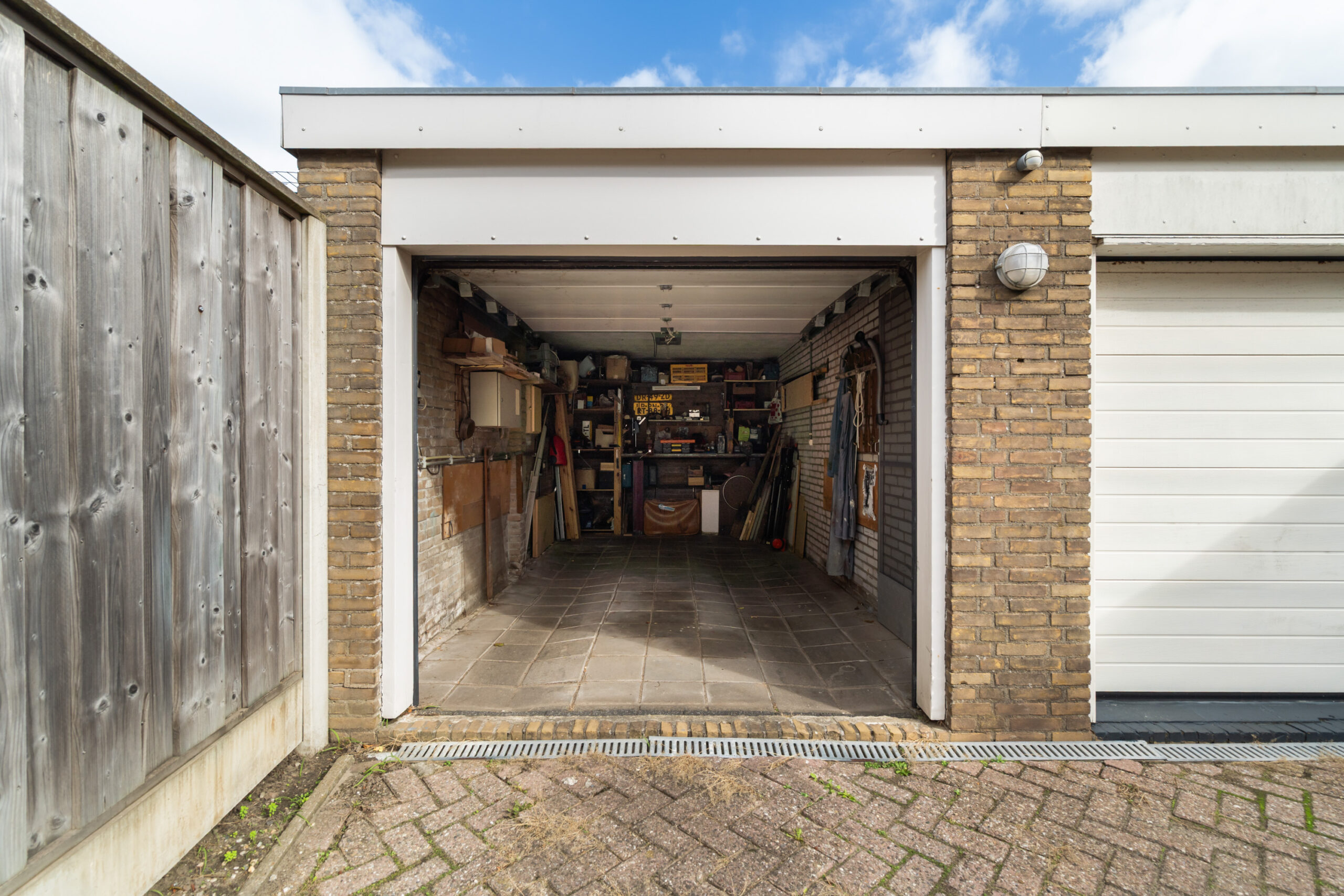 - Ruime garage (ca. 5,68 x 2,80 m) voorzien van elektrische roldeur gelegen op eigen terrein met gedeelde oprit;