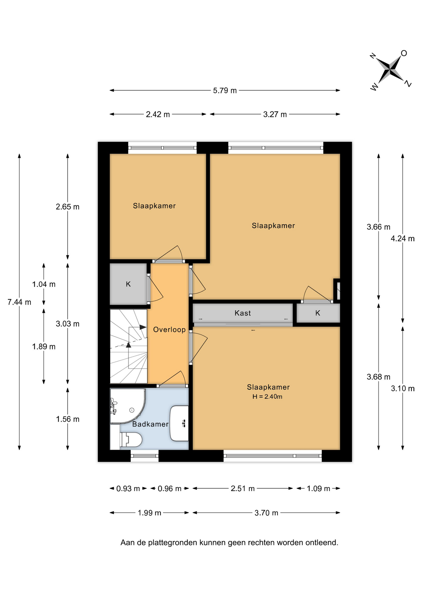 - Derde slaapkamer aan de achterzijde van de woning (ca. 2,65 x 2,42 m);