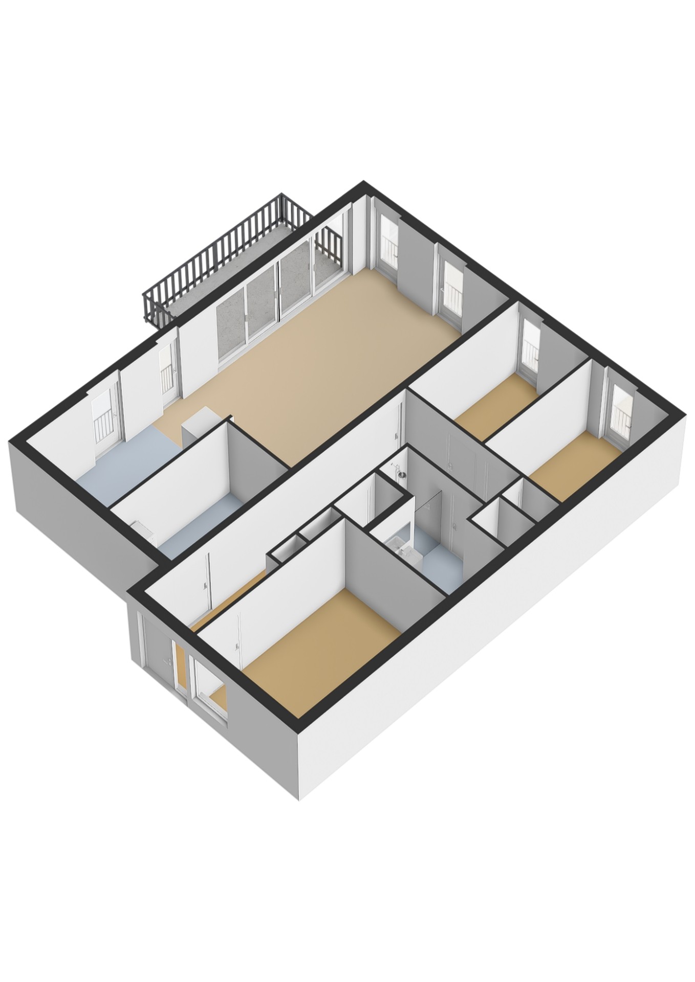 - Twee slaapkamers van ca. 8 m2 gelegen aan de achterzijde van de woning.