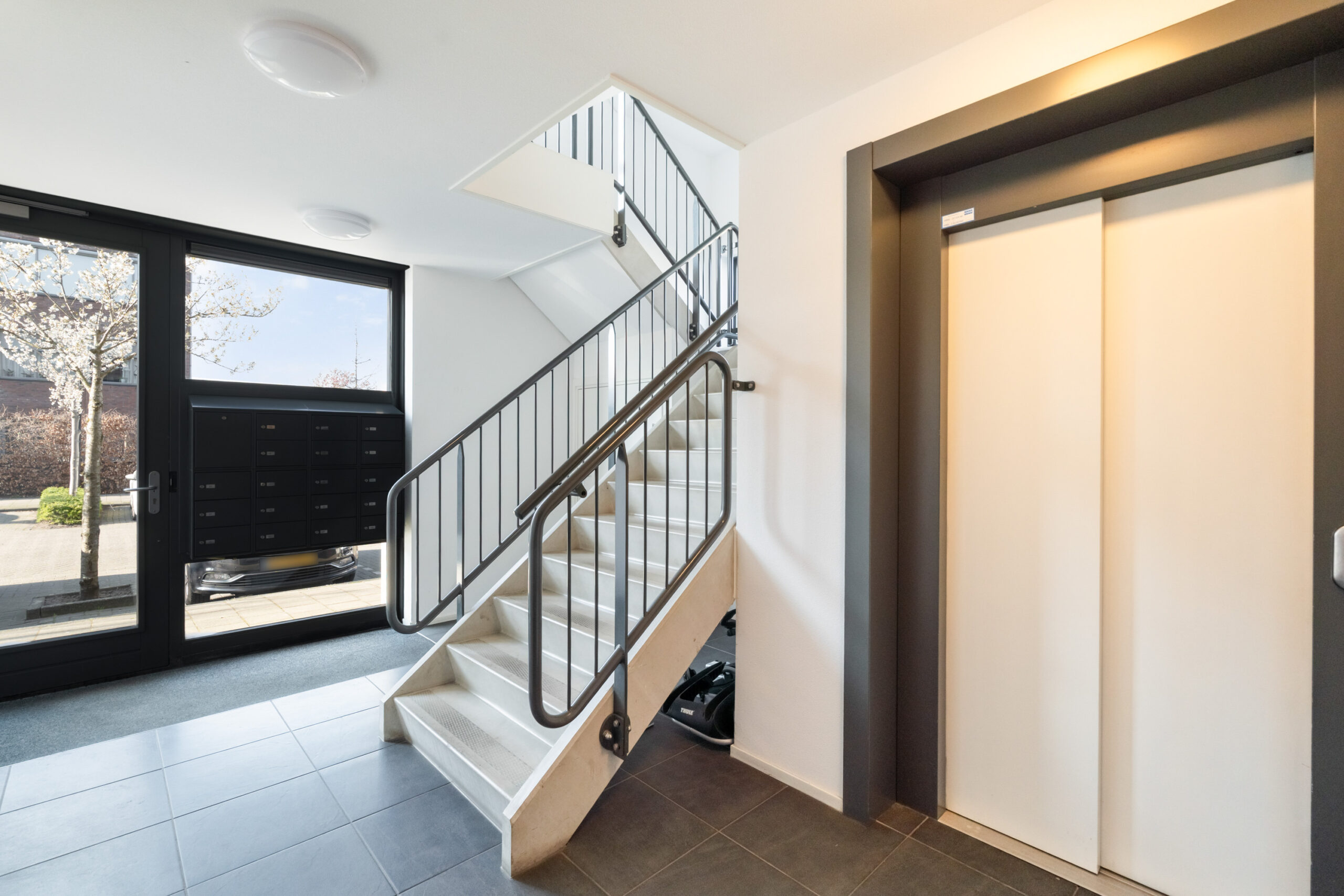 - Afgesloten gezamenlijke entree met bellentableau en brievenbussen. Vanuit de gezamenlijke hal bereikt u het trappenhuis, de liftinstallatie en de toegang naar de gemeenschappelijke fietsenberging.