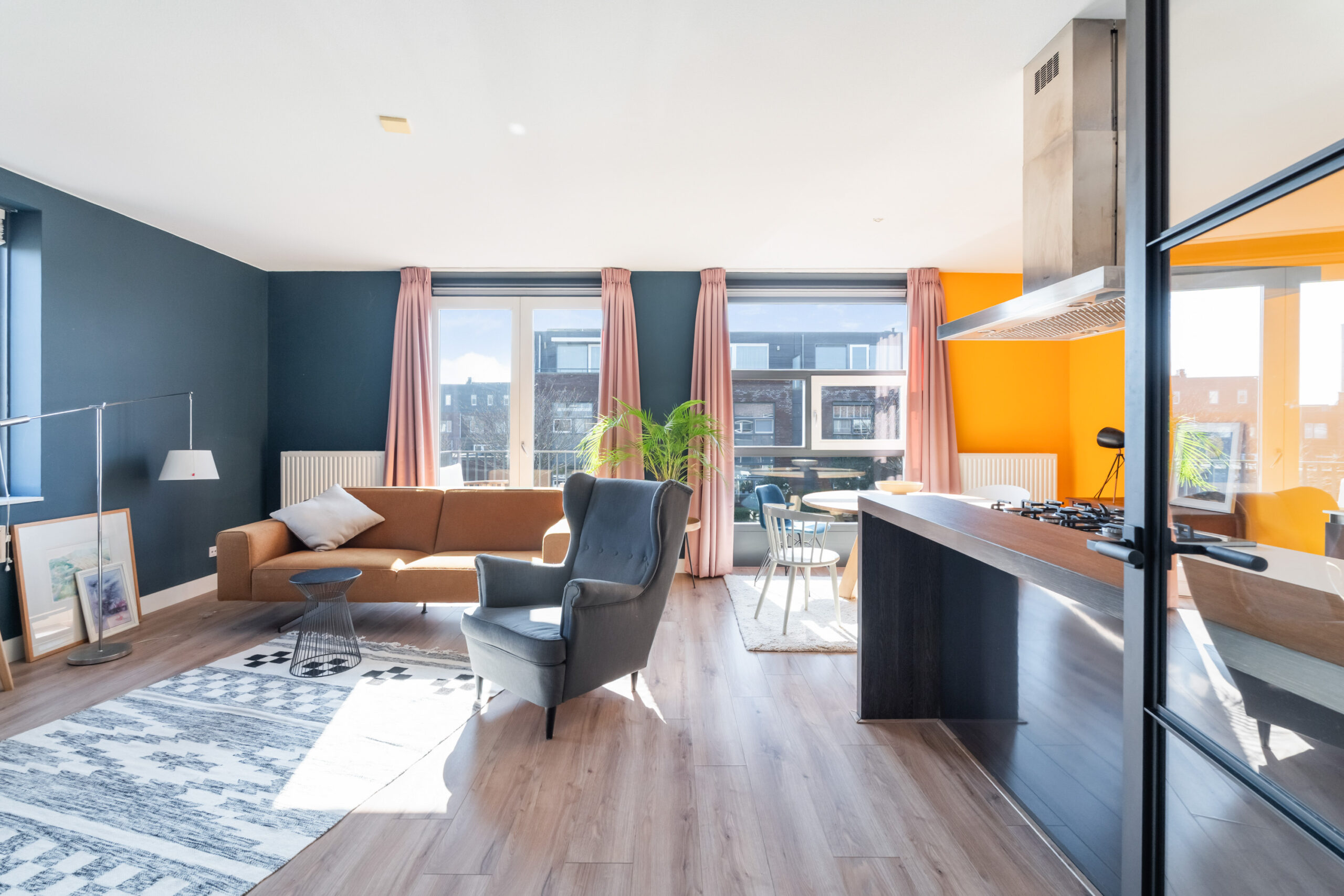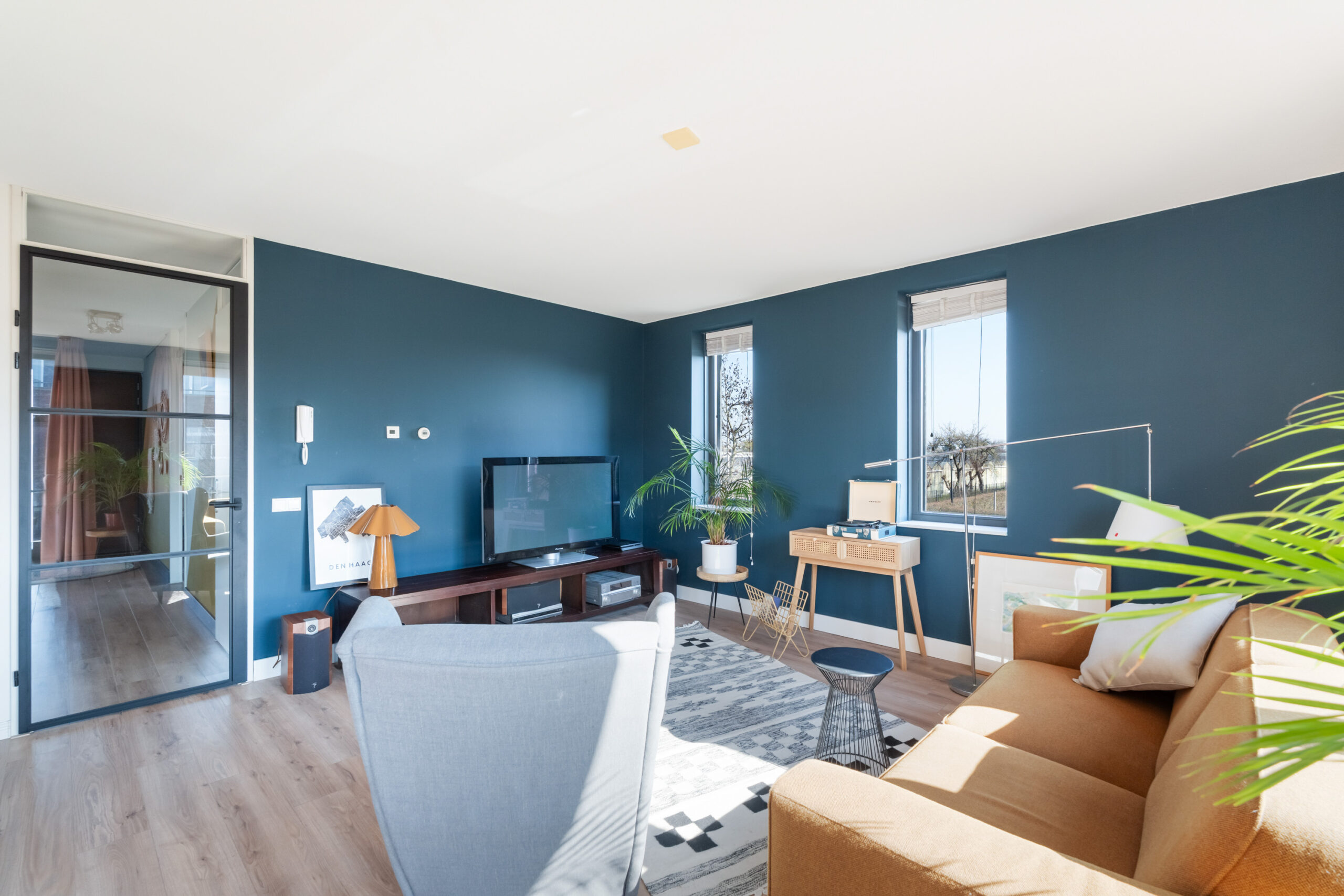 - Heerlijk lichte woonkamer voorzien van laminaatvloer, veel ramen en openslaande deuren naar het zonnige balkon gelegen op het zuidwesten.