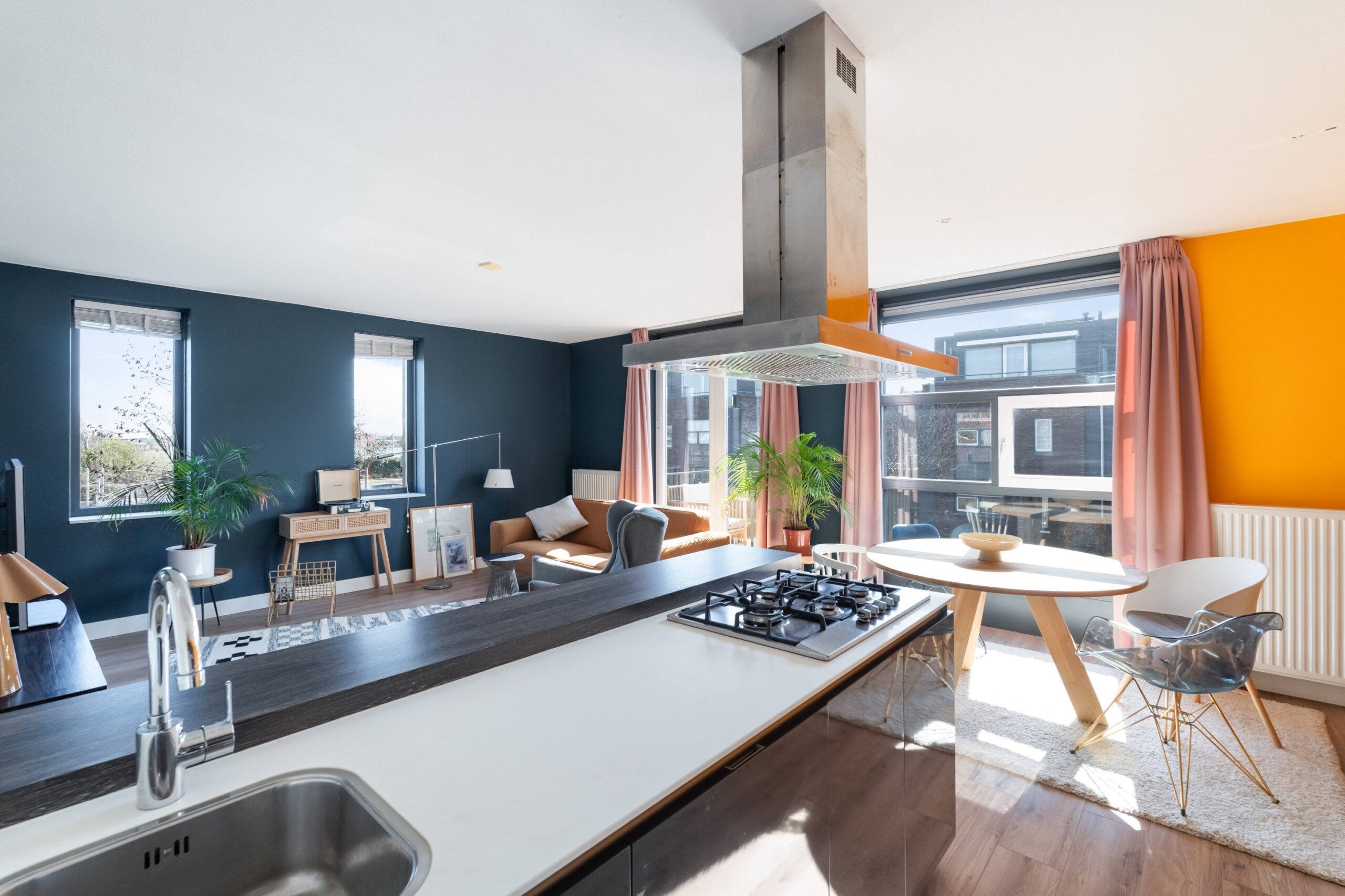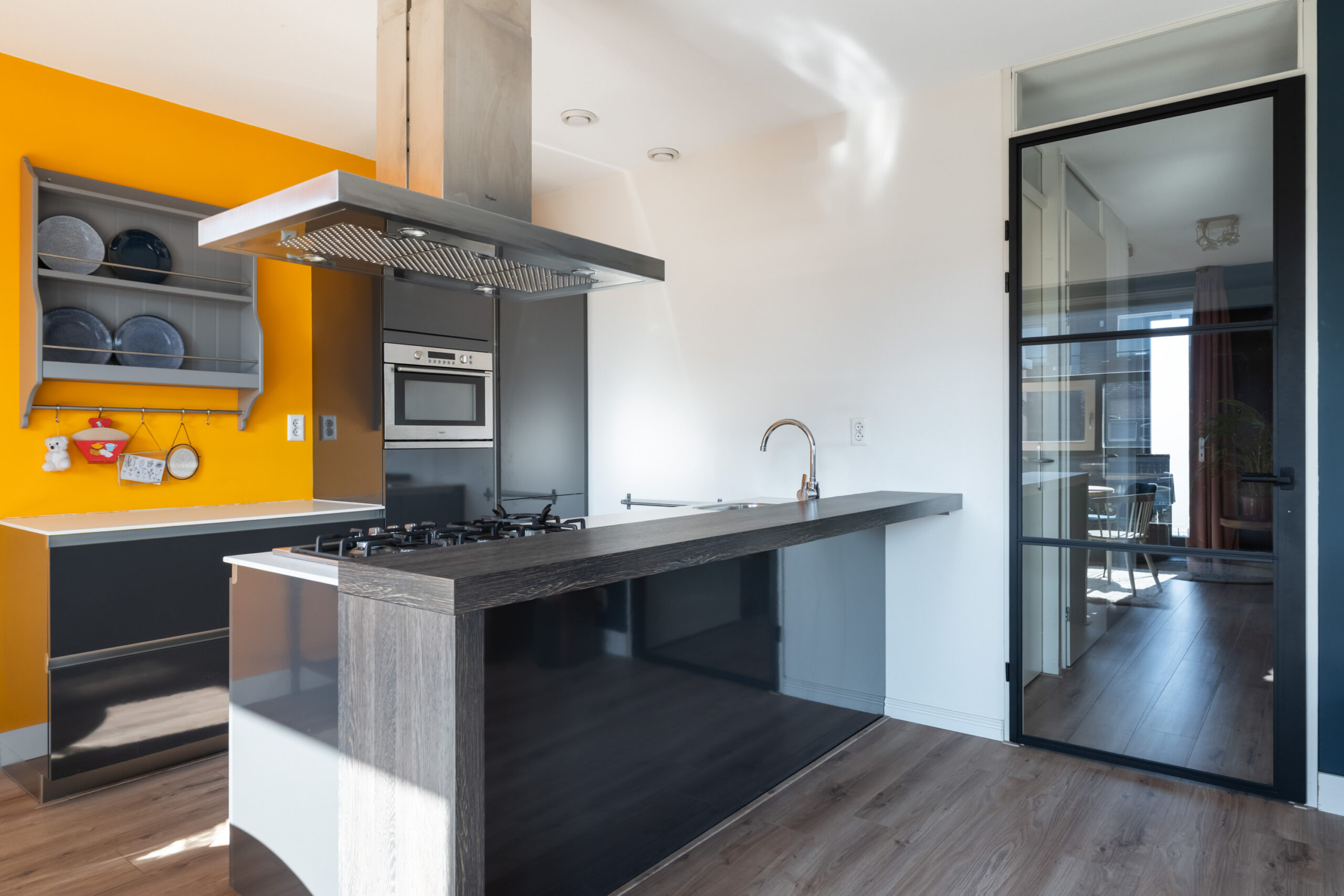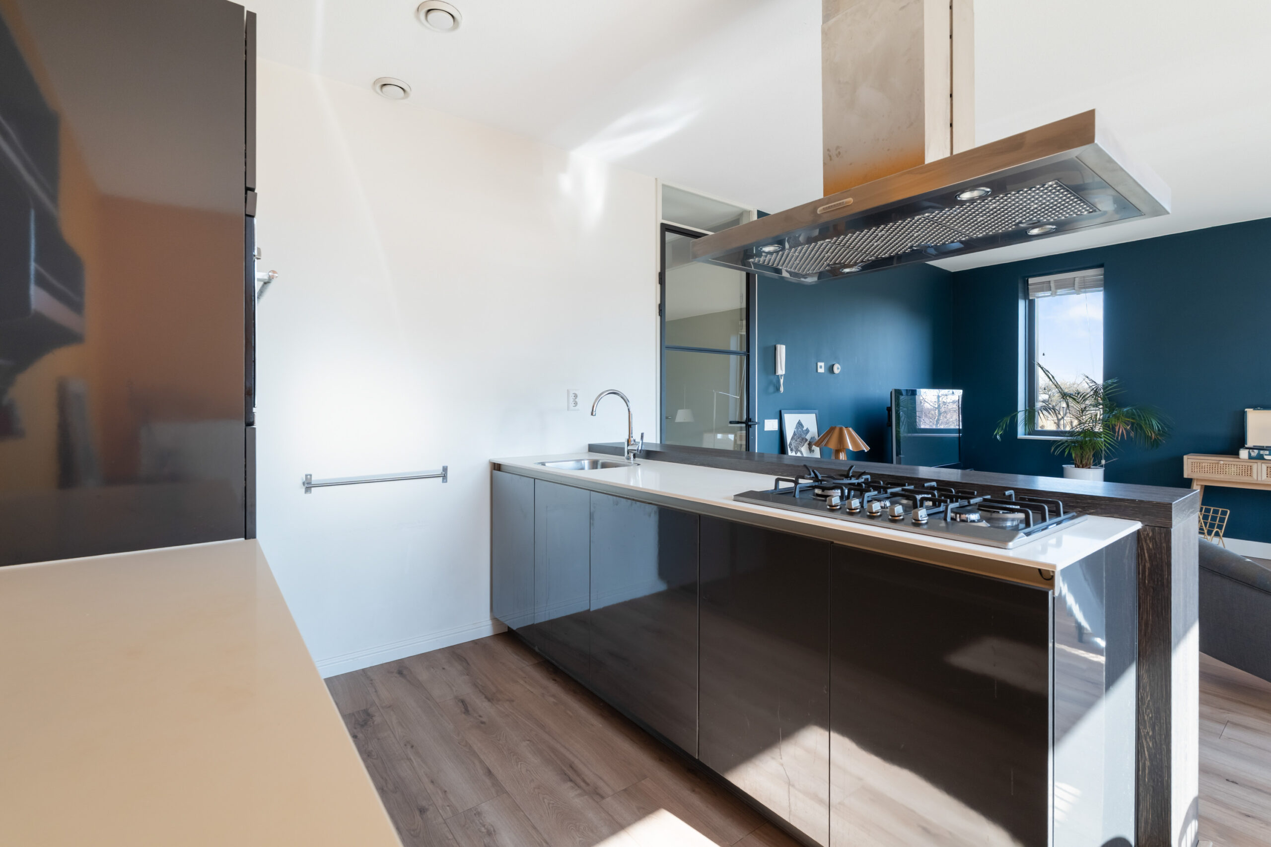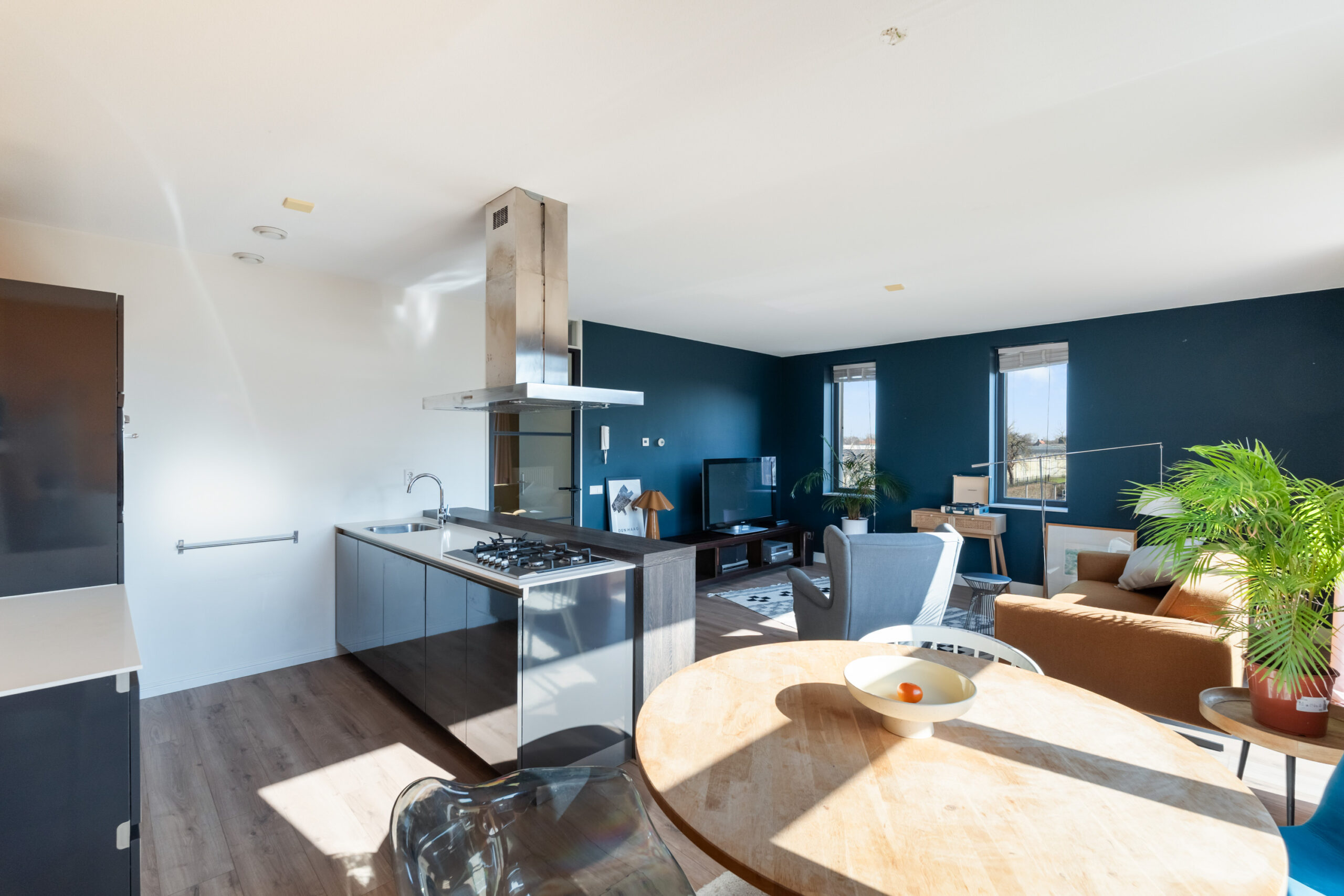 - Moderne open keuken met schiereiland en voorzien van diverse inbouwapparatuur.