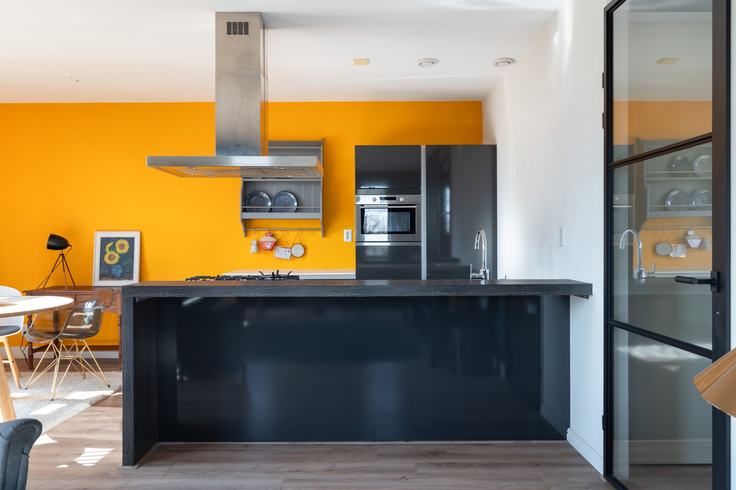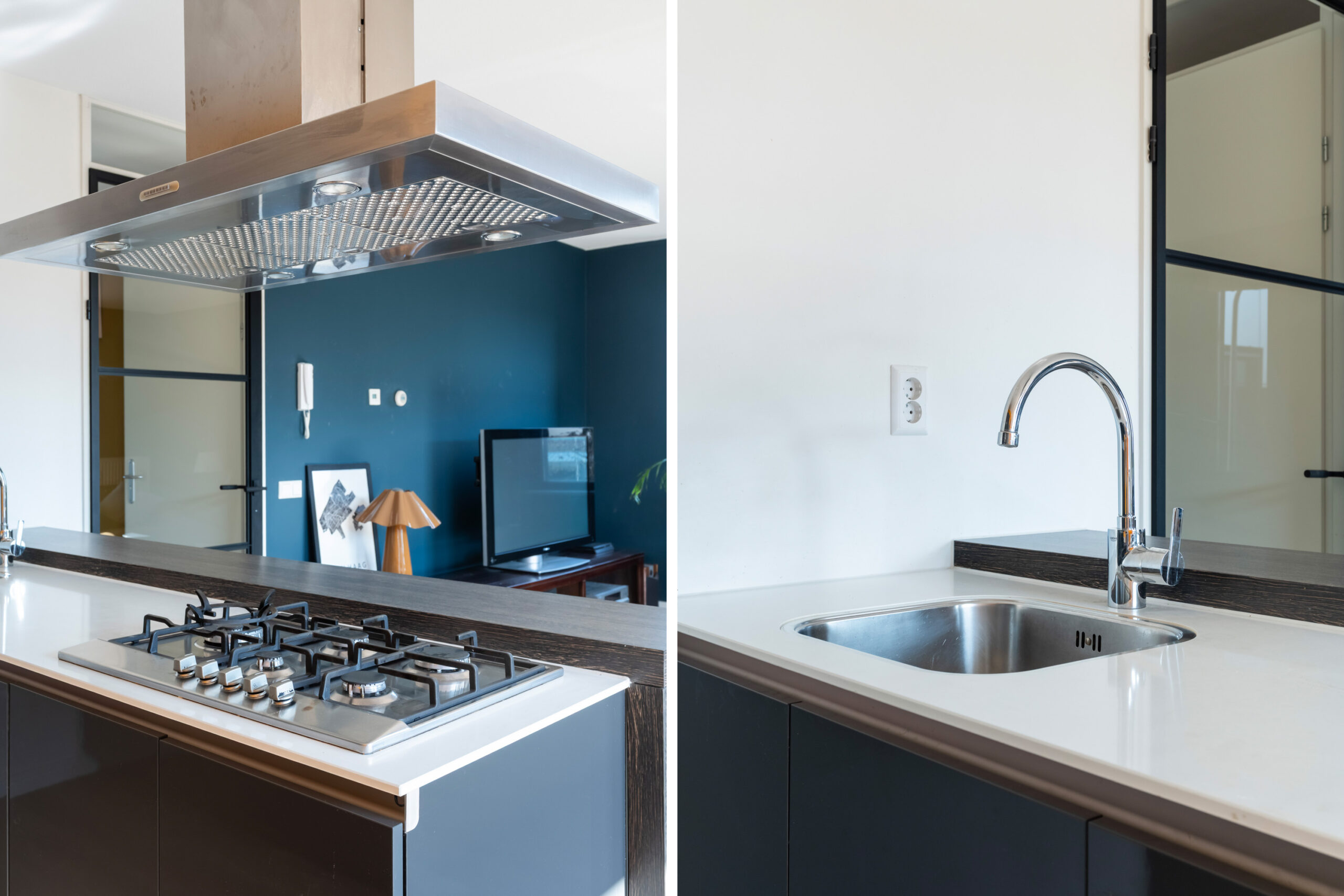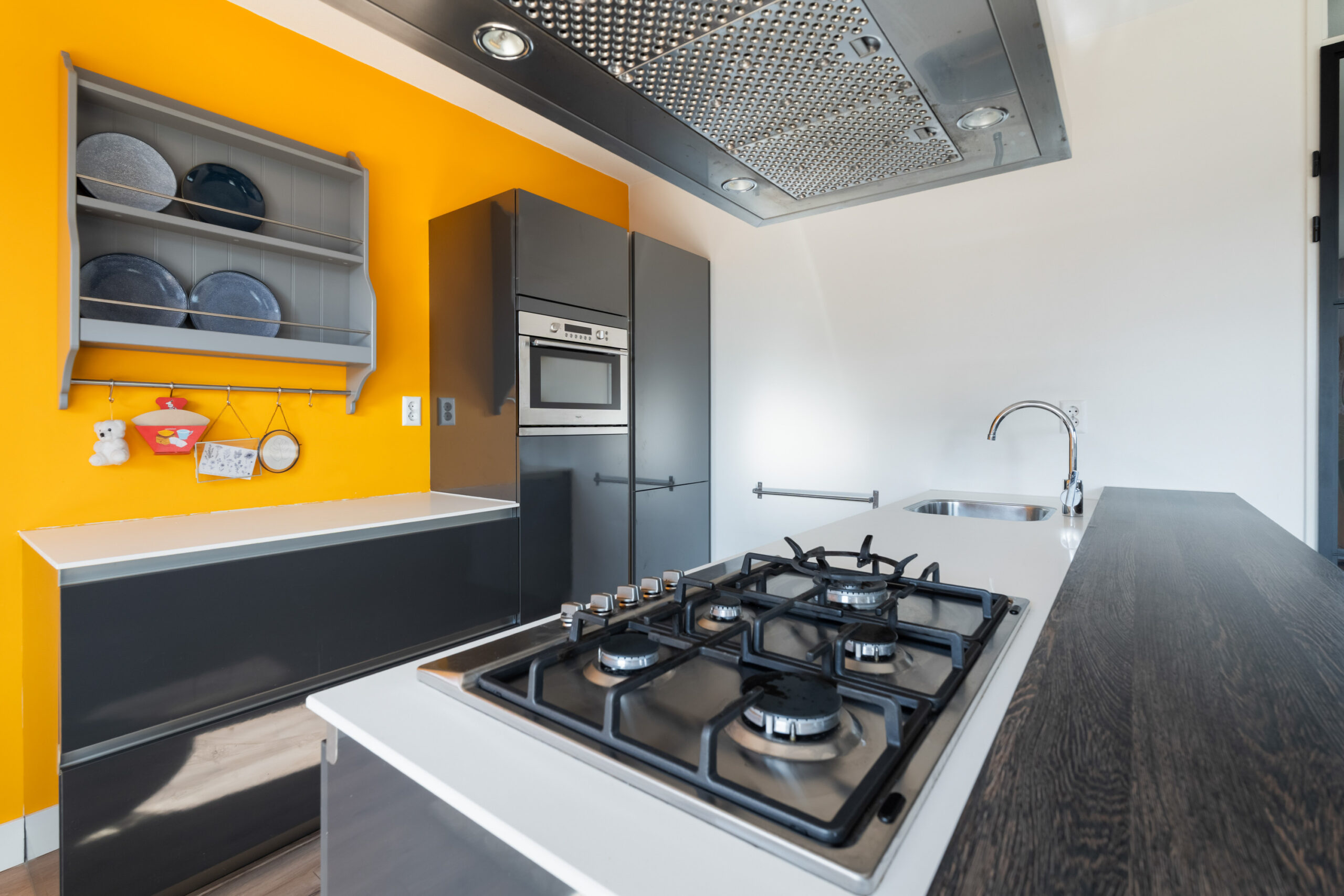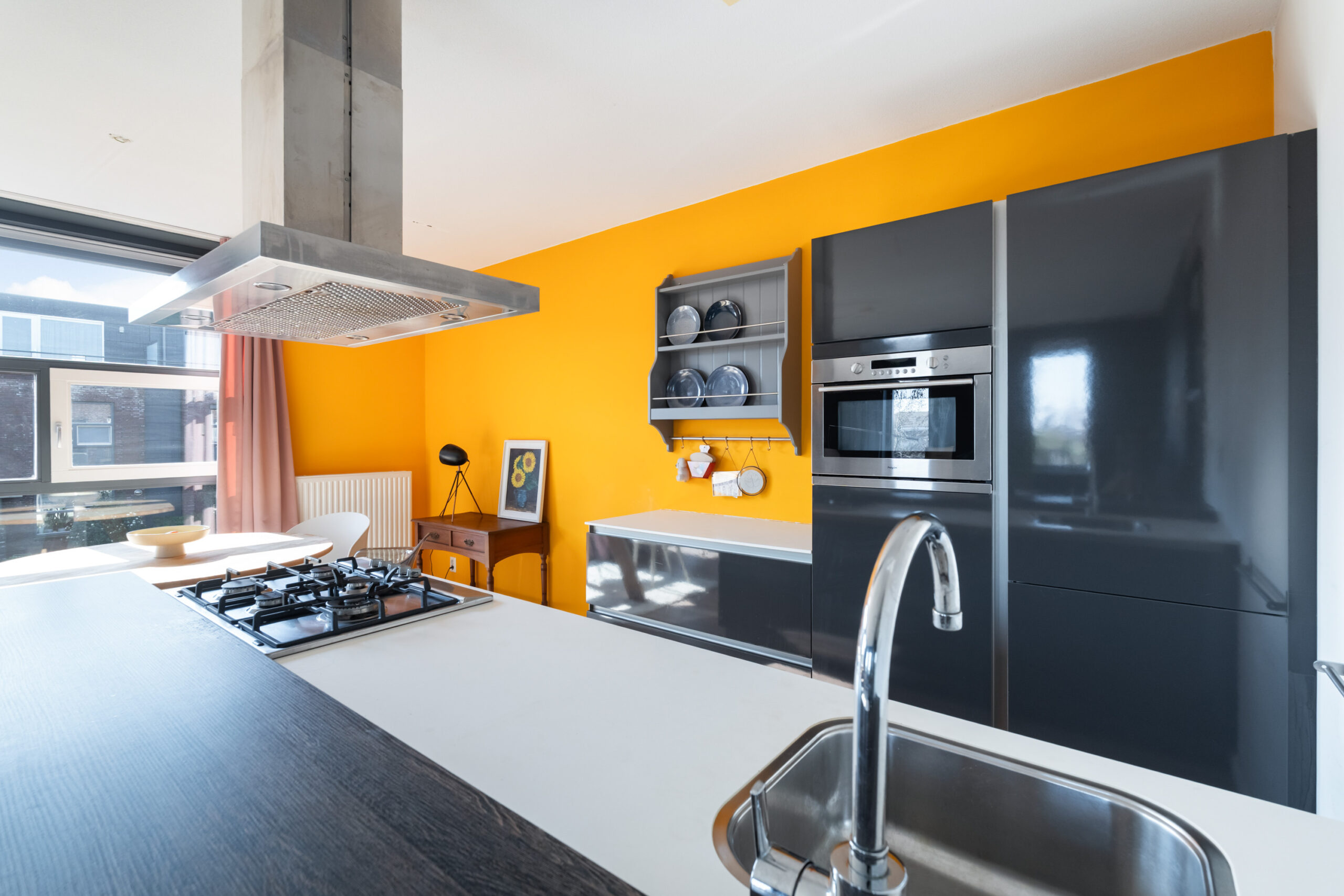 - Moderne open keuken met schiereiland en voorzien van diverse inbouwapparatuur.