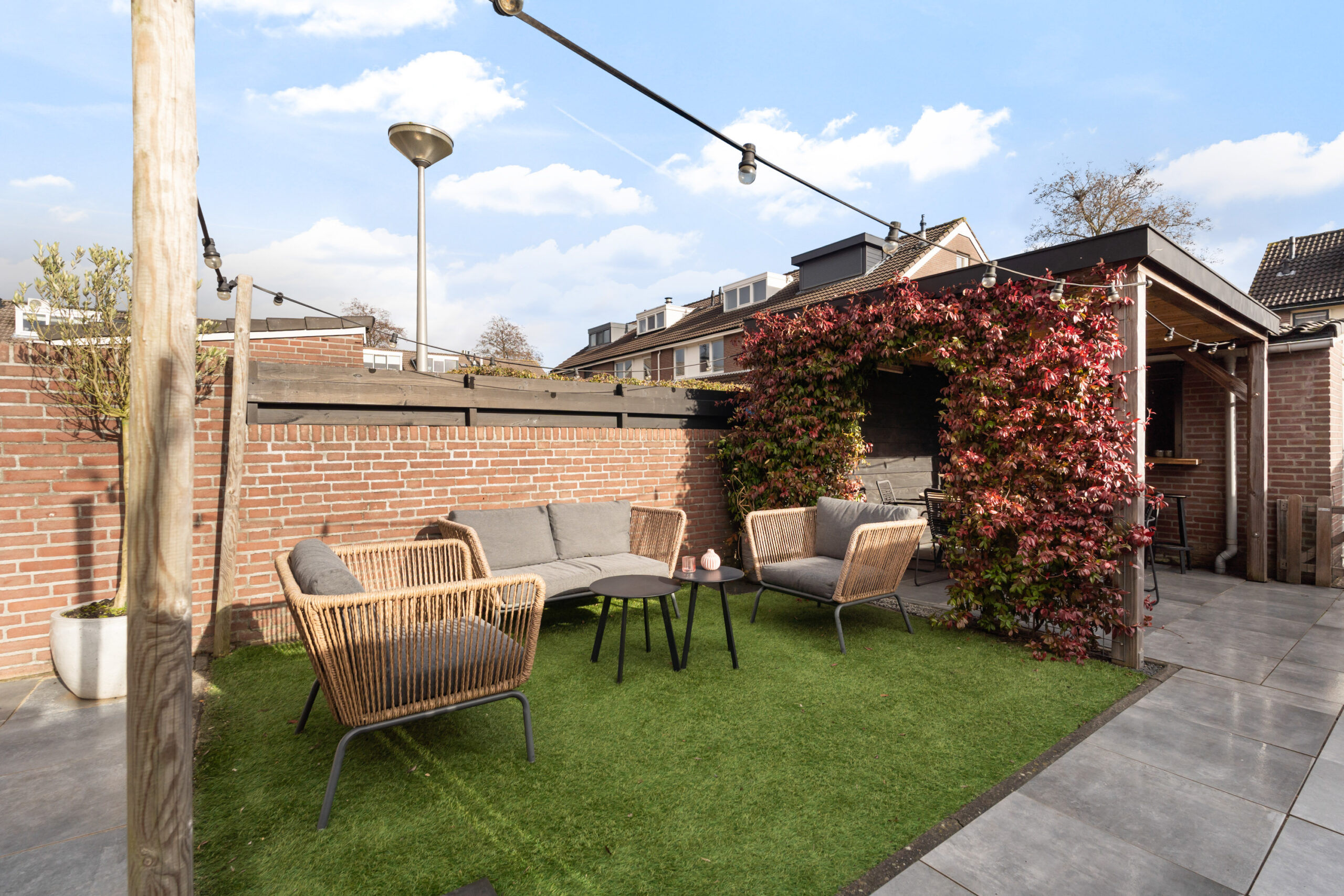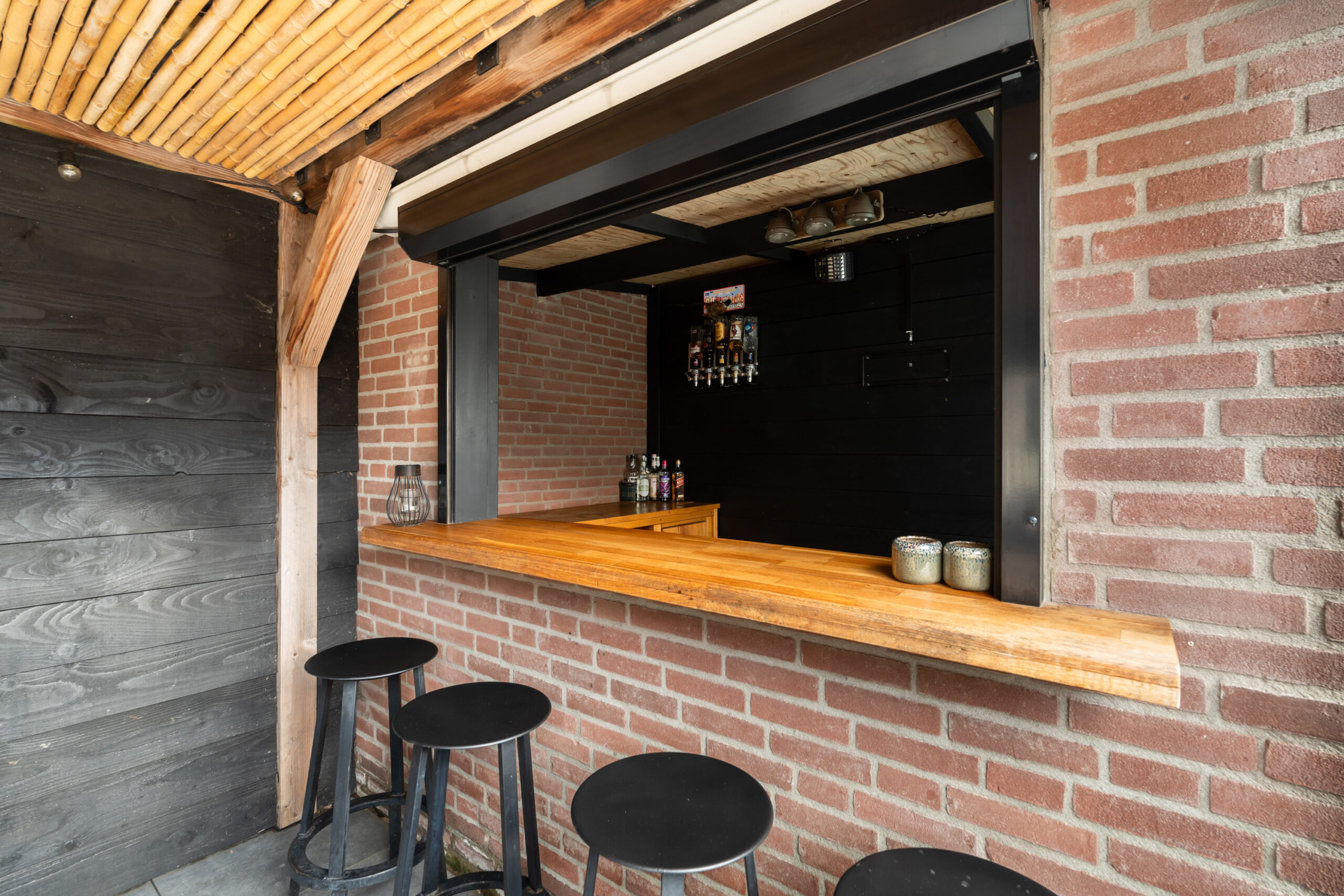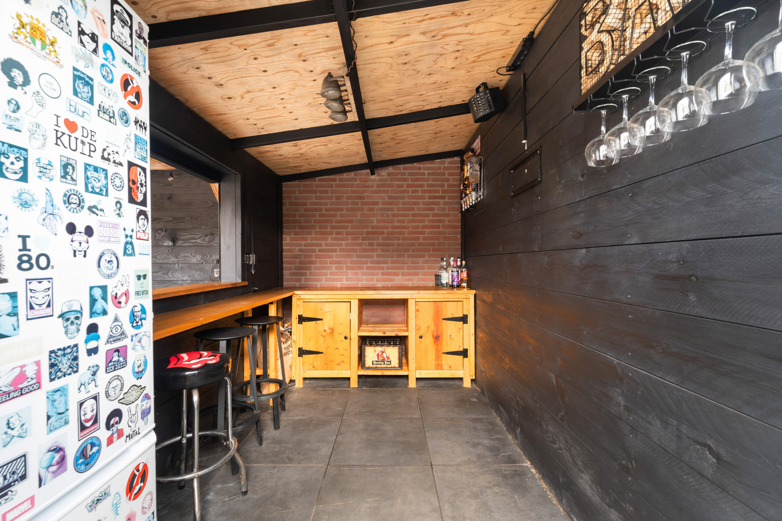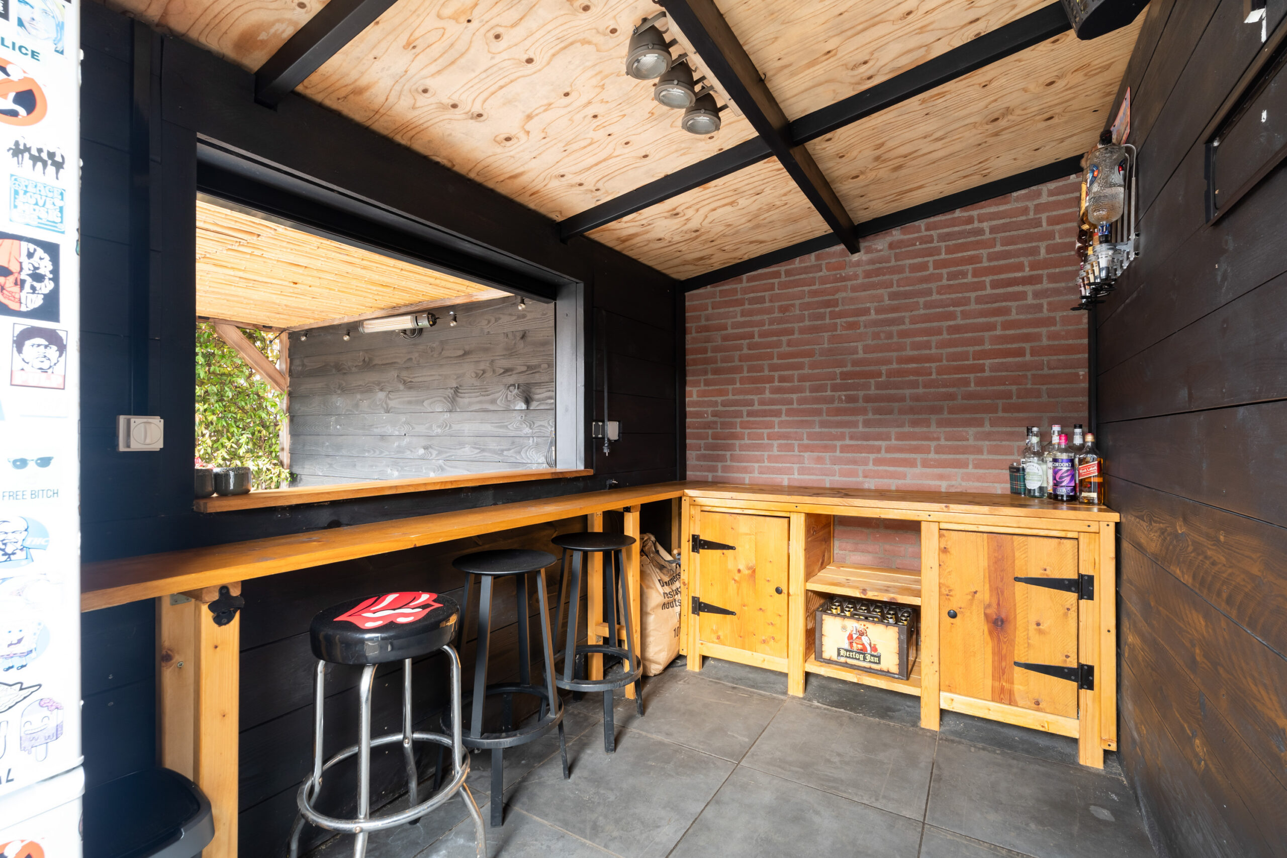 - Royale en zonnige achtertuin van ca. 14 meter diep voorzien van gezellige zithoek, overkapping en berging waarin een buitenbar is gecreëerd.