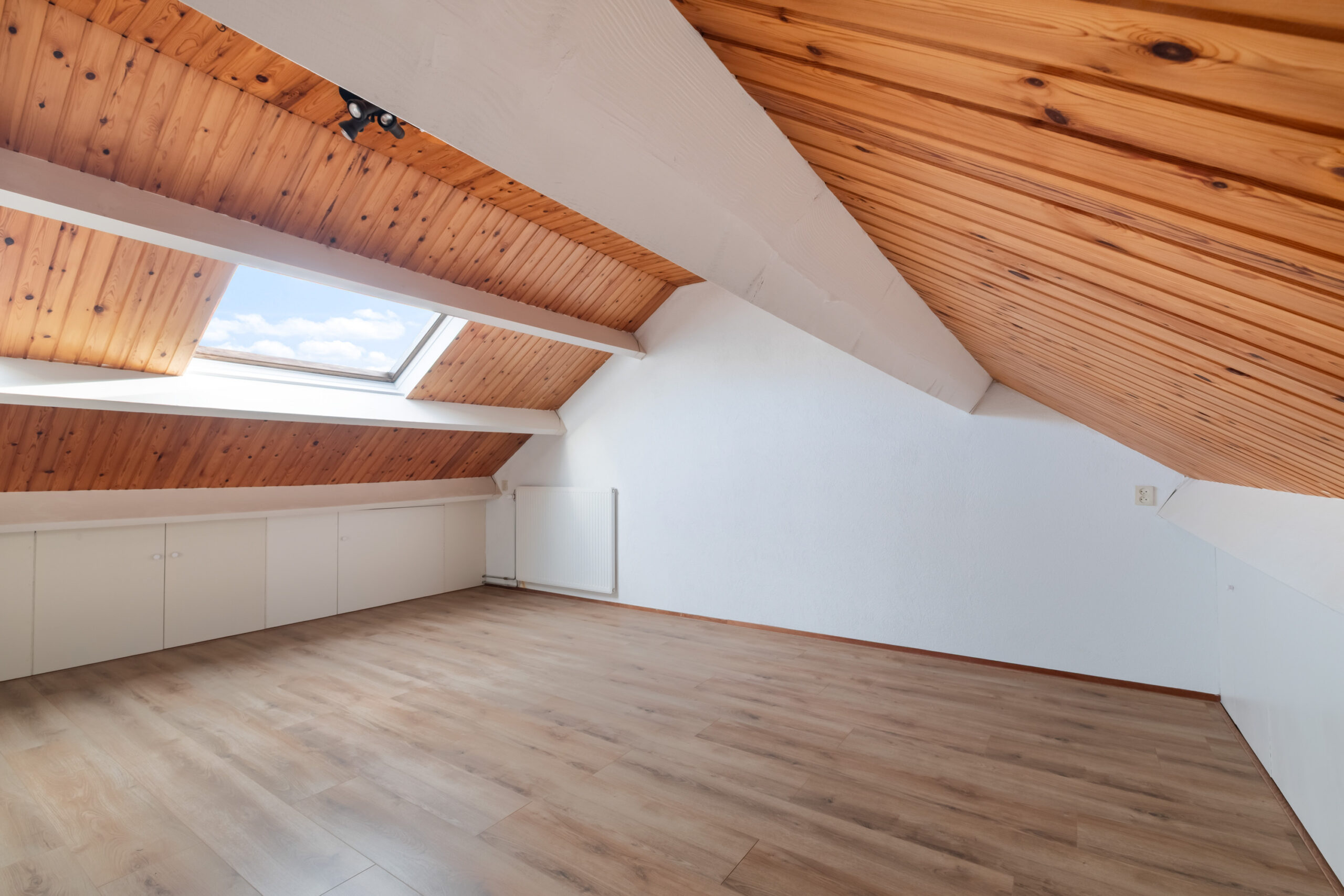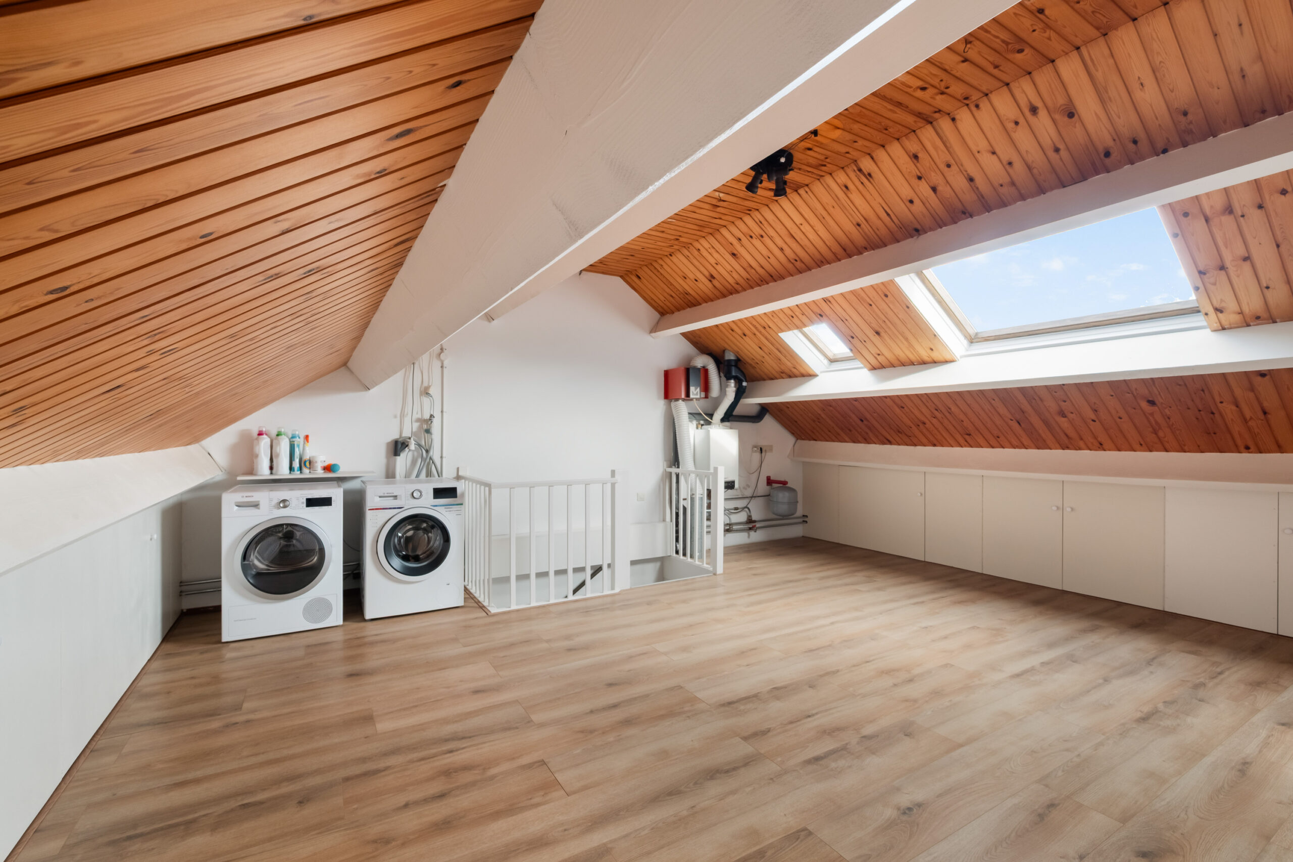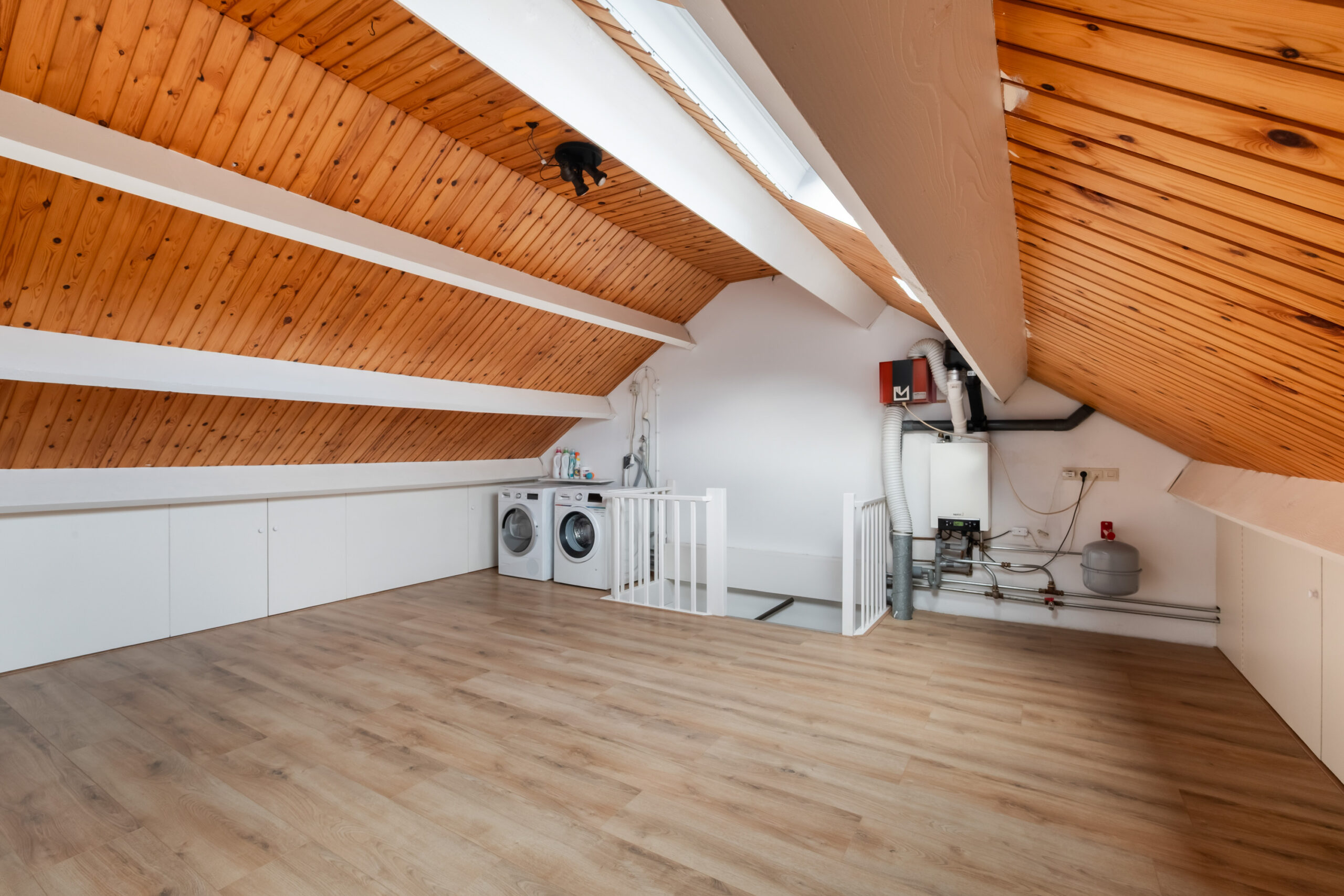 - Vrij indeelbare zolderverdieping voorzien van knieschotten, twee dakramen, wasmachine- en drogeraansluiting en opstelplaats cv-ketel.