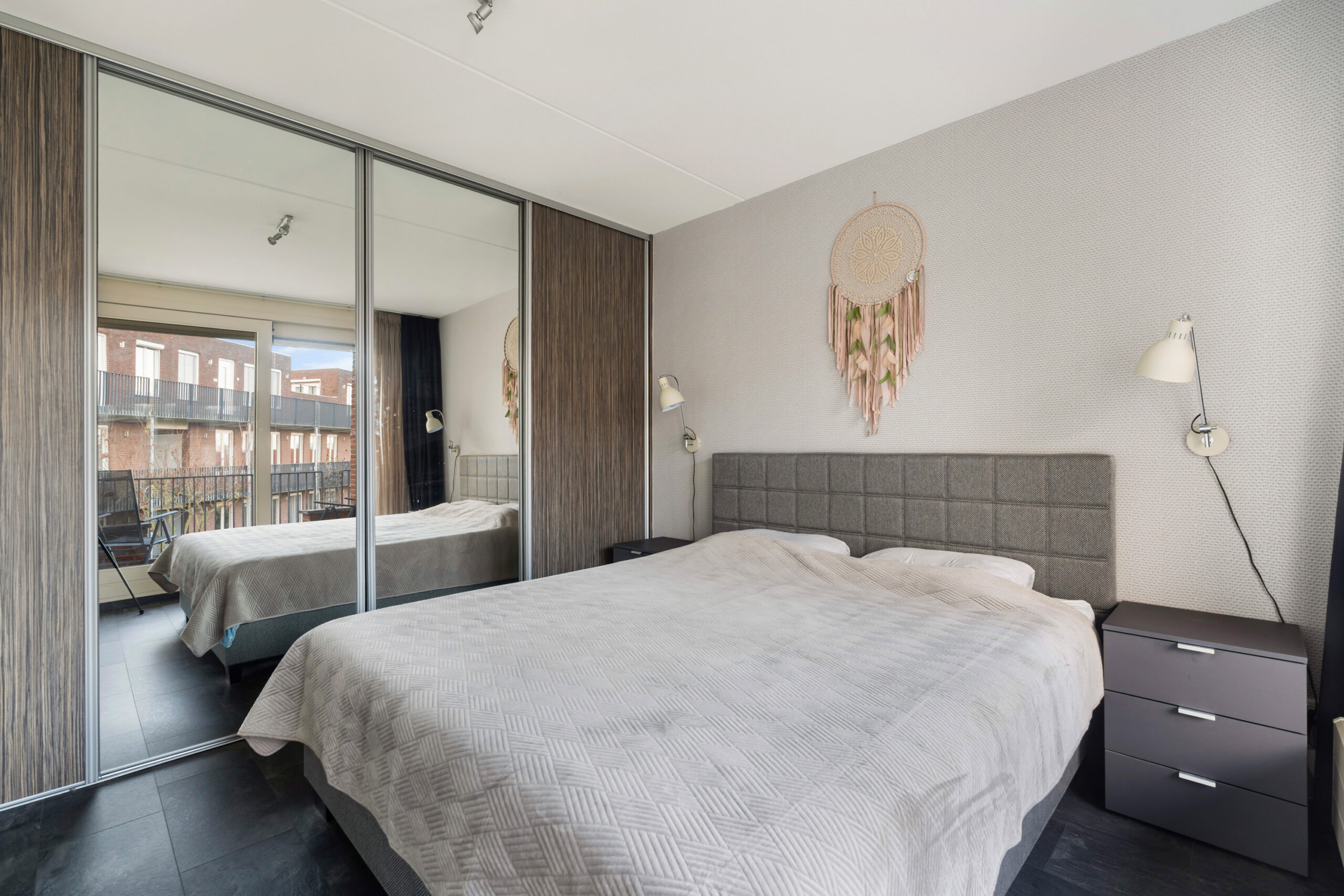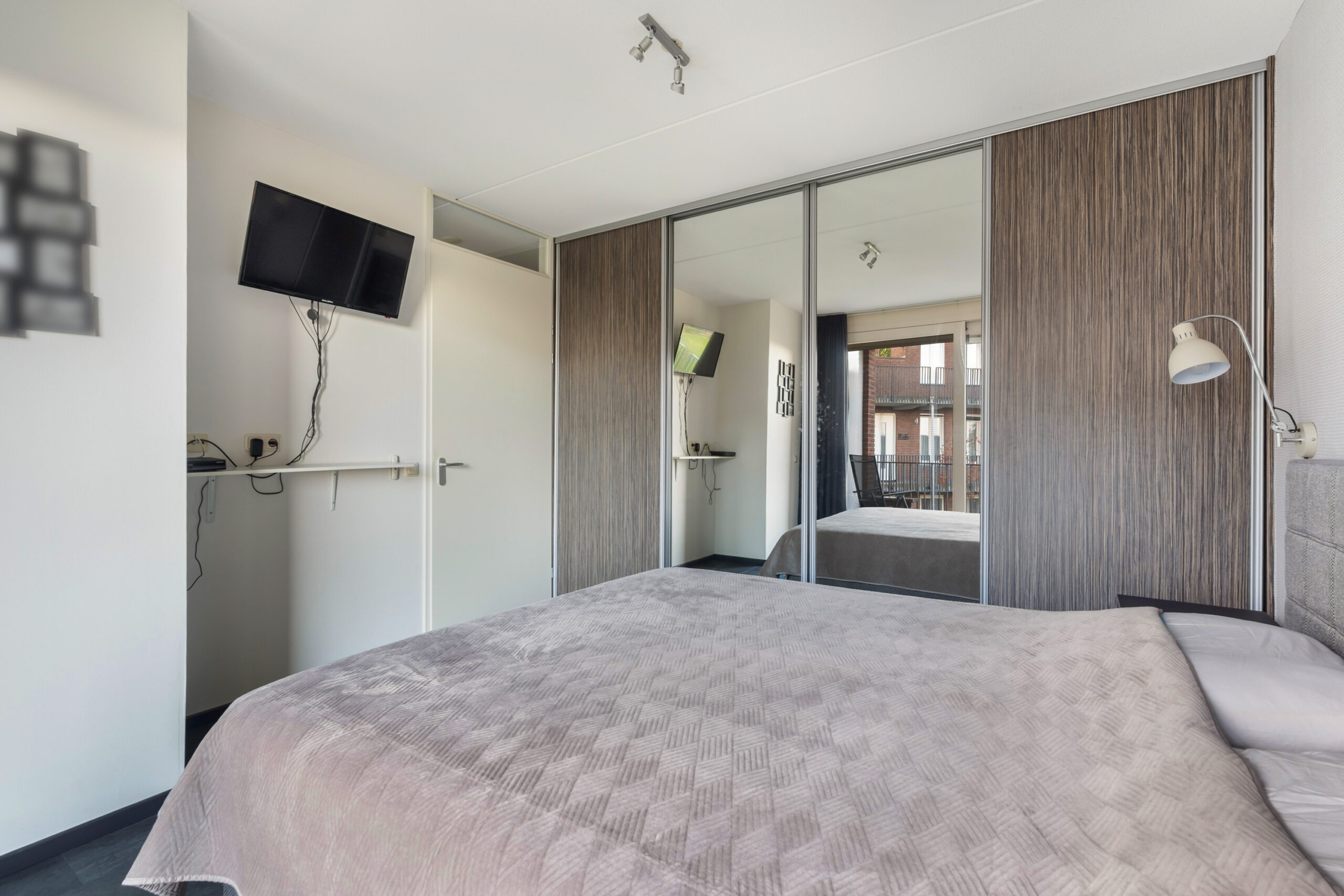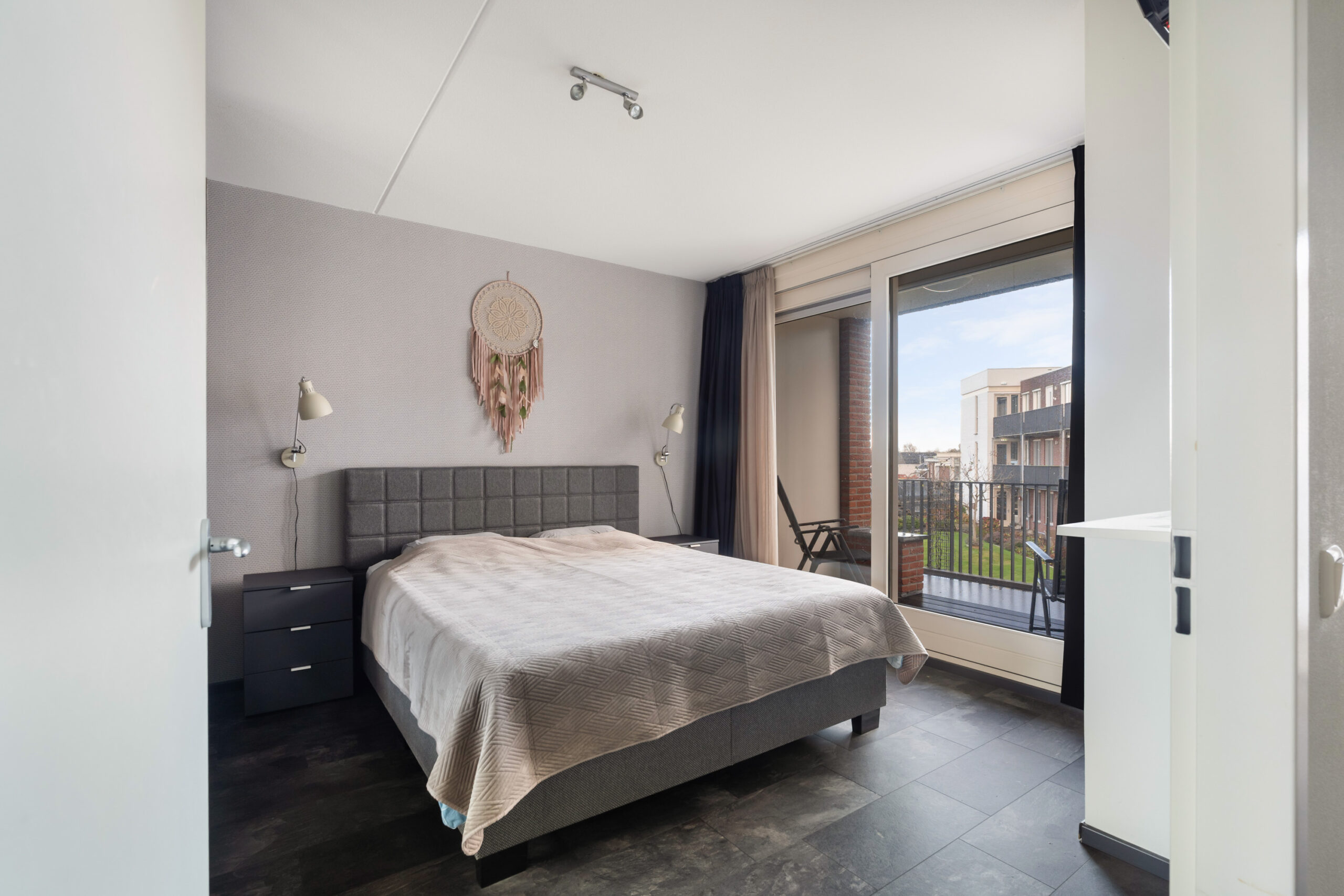 - Ruime slaapkamer gelegen aan de voorzijde voorzien van een laminaatvloer, mooie vaste schuifkast over de breedte van de kamer en een schuifpui waarmee het terras wordt bereikt;