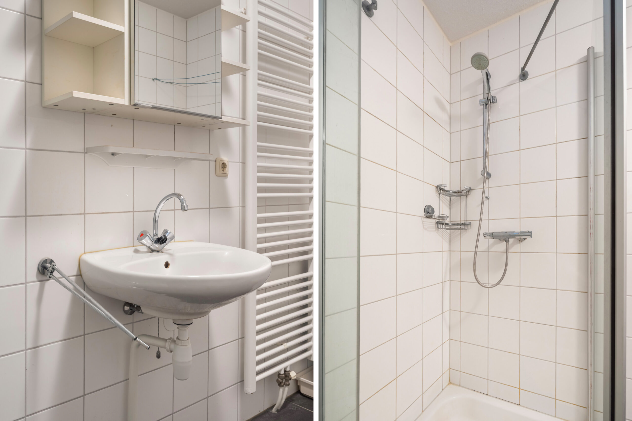 - Licht, geheel betegelde badkamer voorzien douchecabine, wastafel, designradiator en wasmachine-aansluiting;