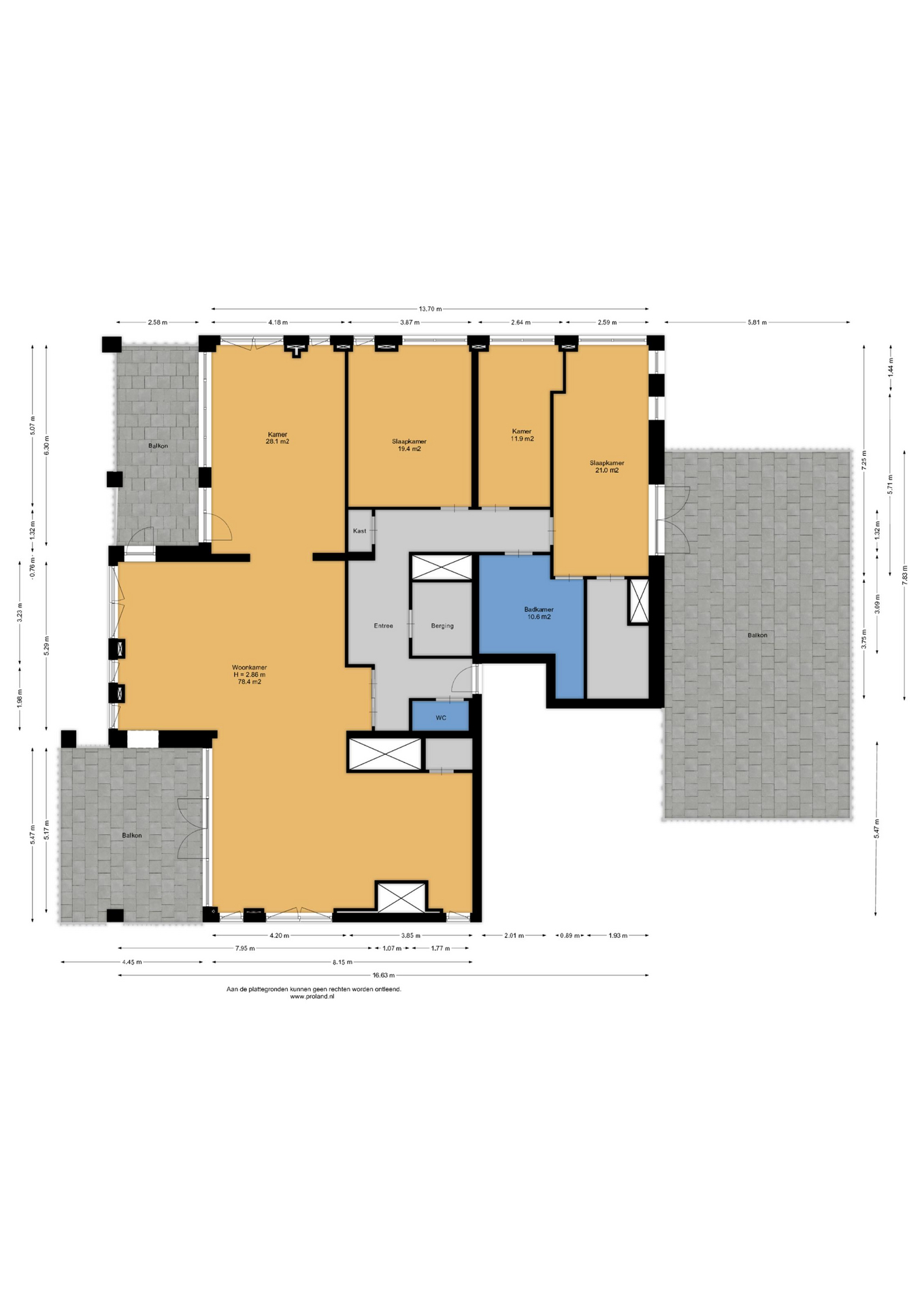 - Het appartement beschikt over drie ruime slaapkamers van ca. 21, 19 en 12 m2. De slaapkamers beschikken allen over grote raampartijen;