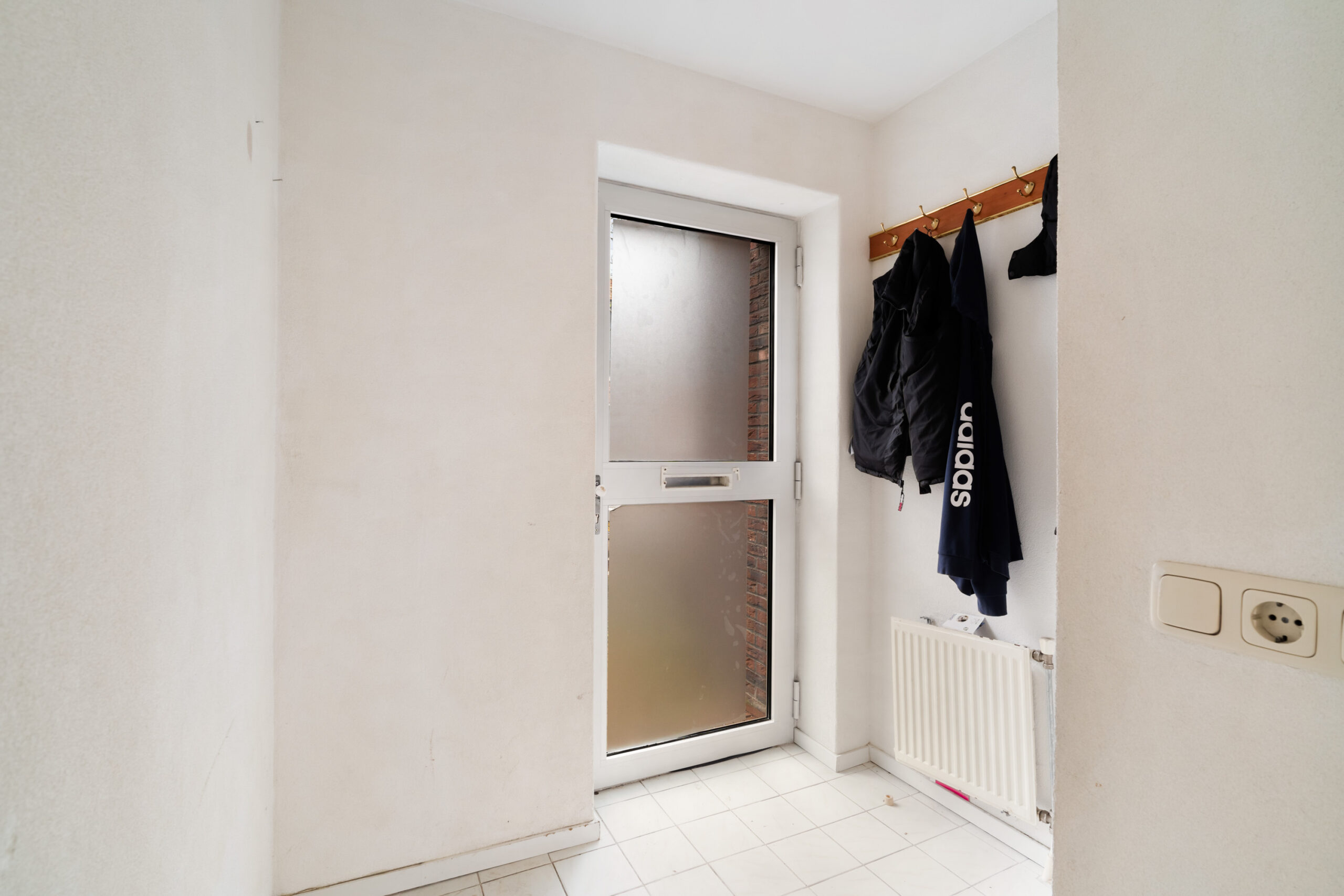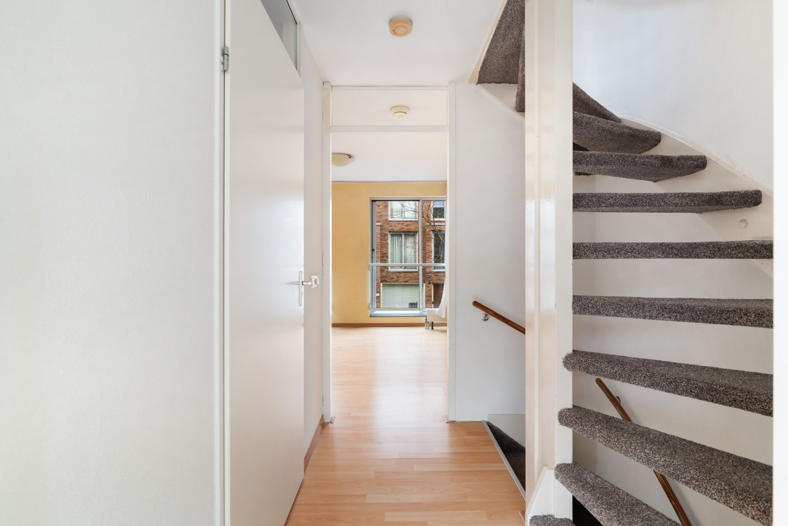 - Hal met meterkast, toilet met fonteintje, vaste kast en trap naar de 1e etage;