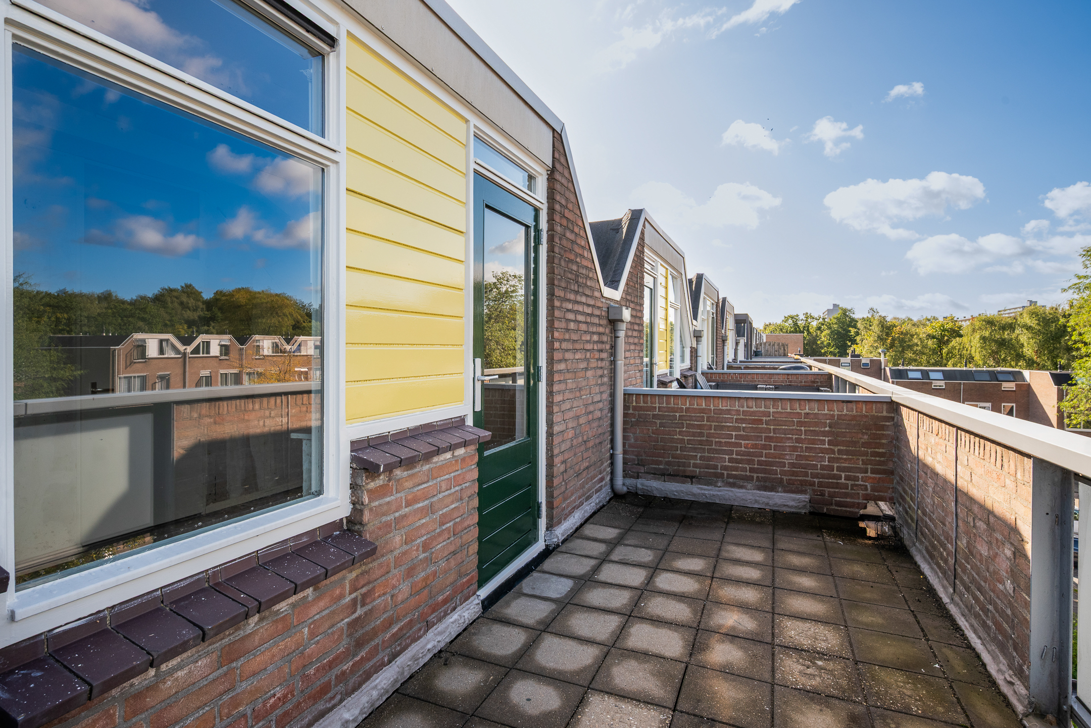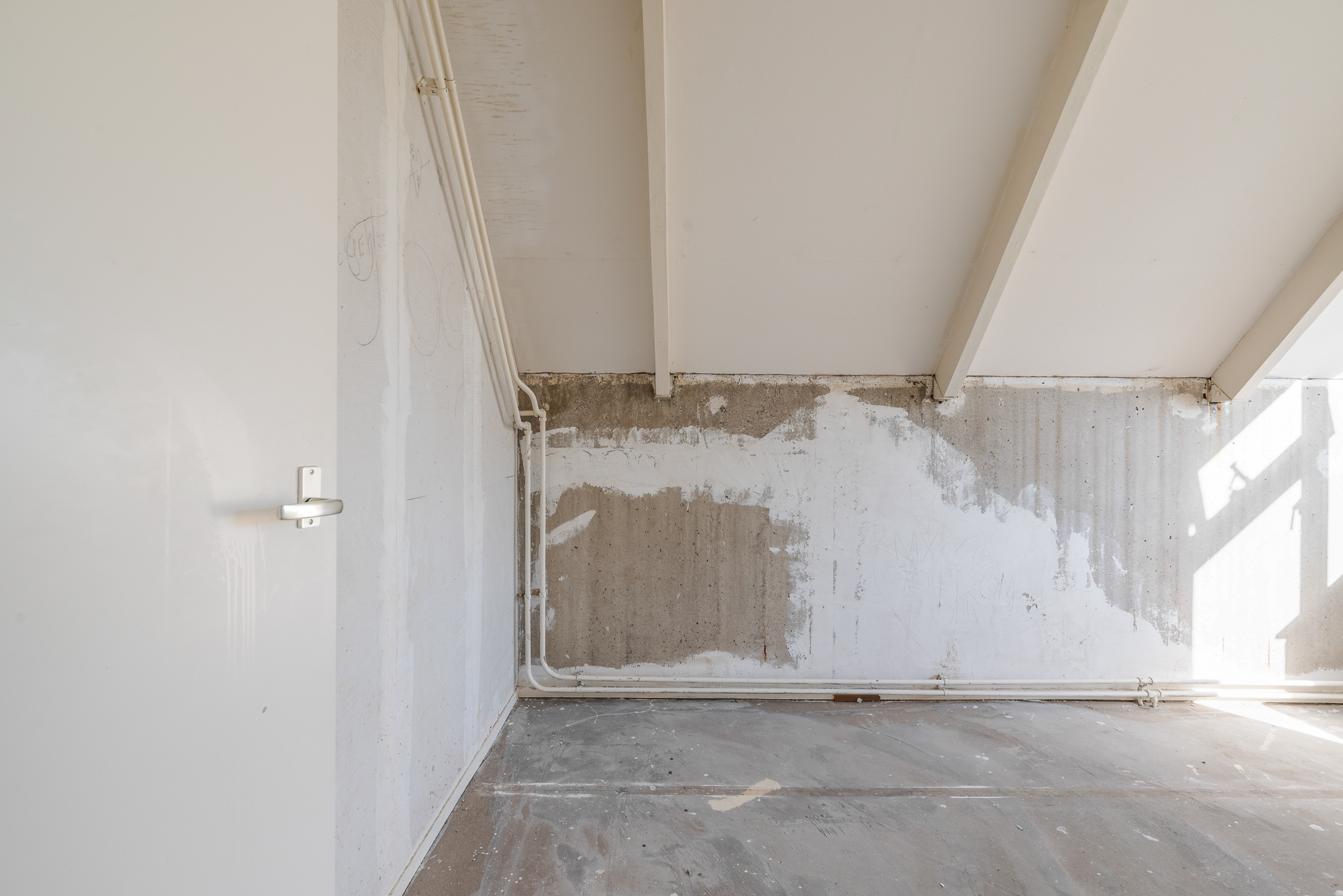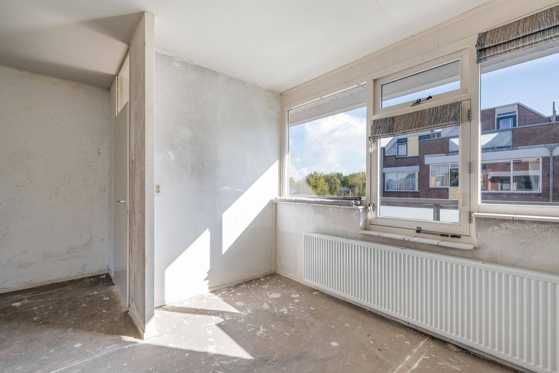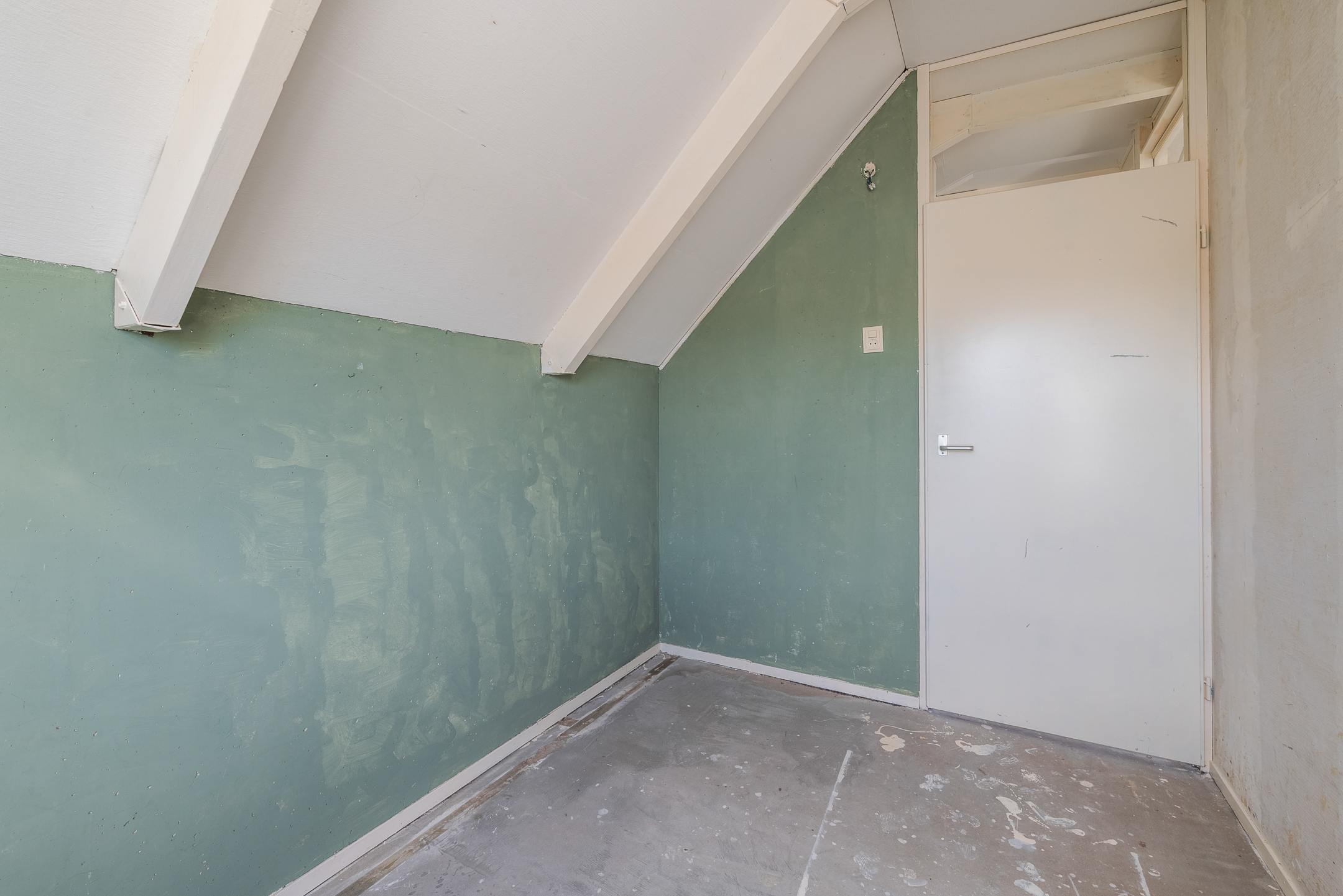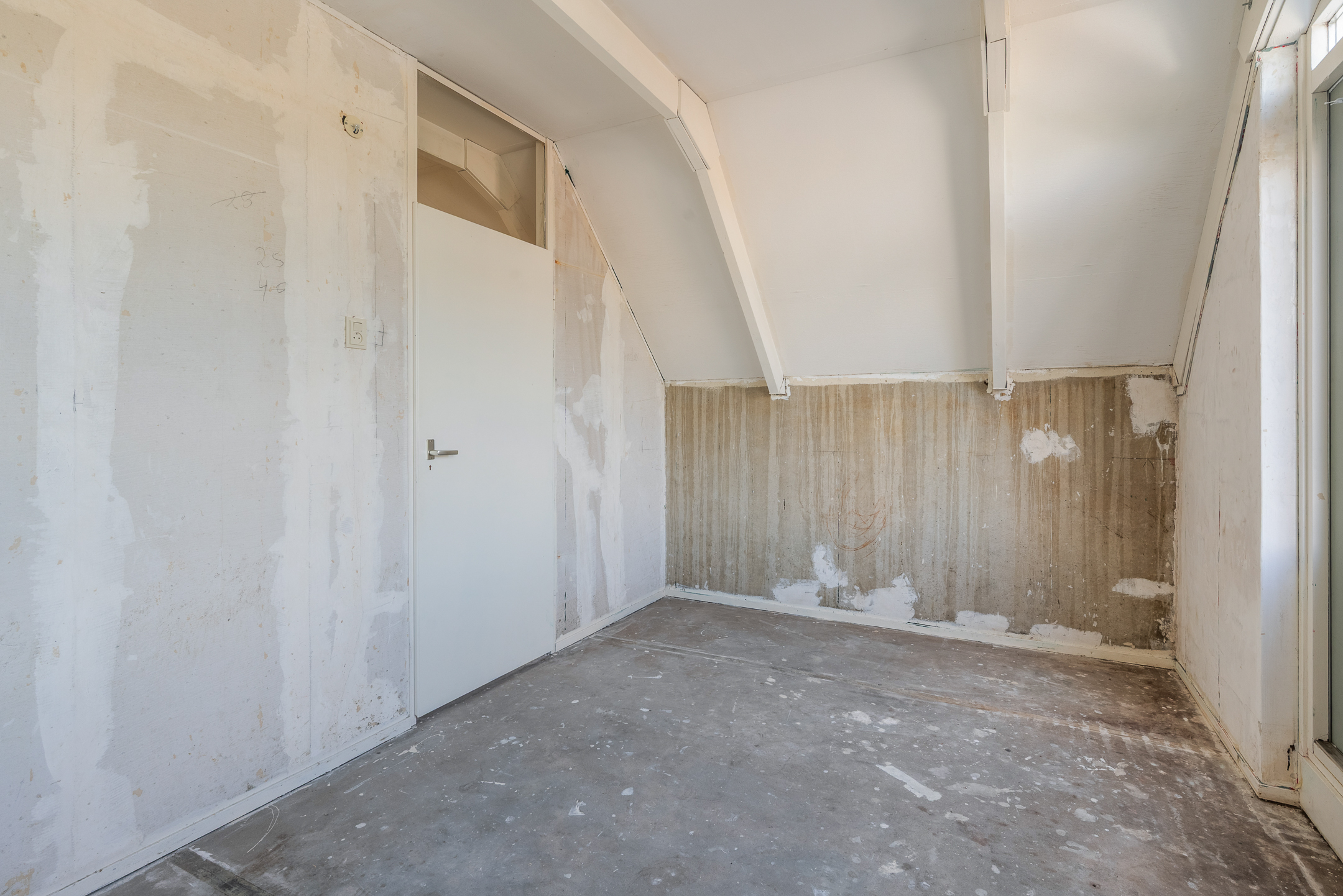 - Ruime slaapkamer van ca. 10 m2 met raampartij voorzien van enkel glas aan de achterzijde van de woning. Via deze kamer bereikt u het dakterras van circa 10 m2.